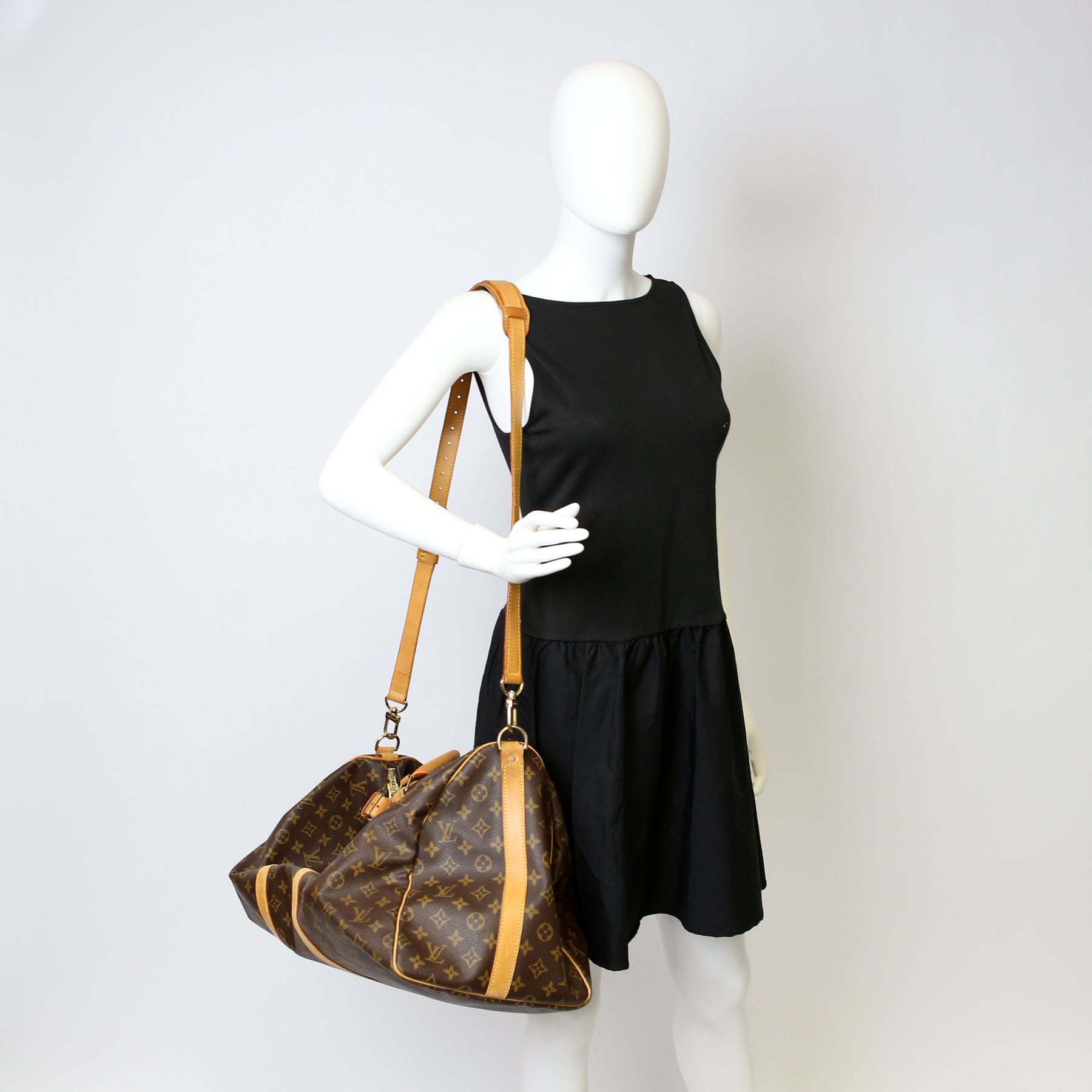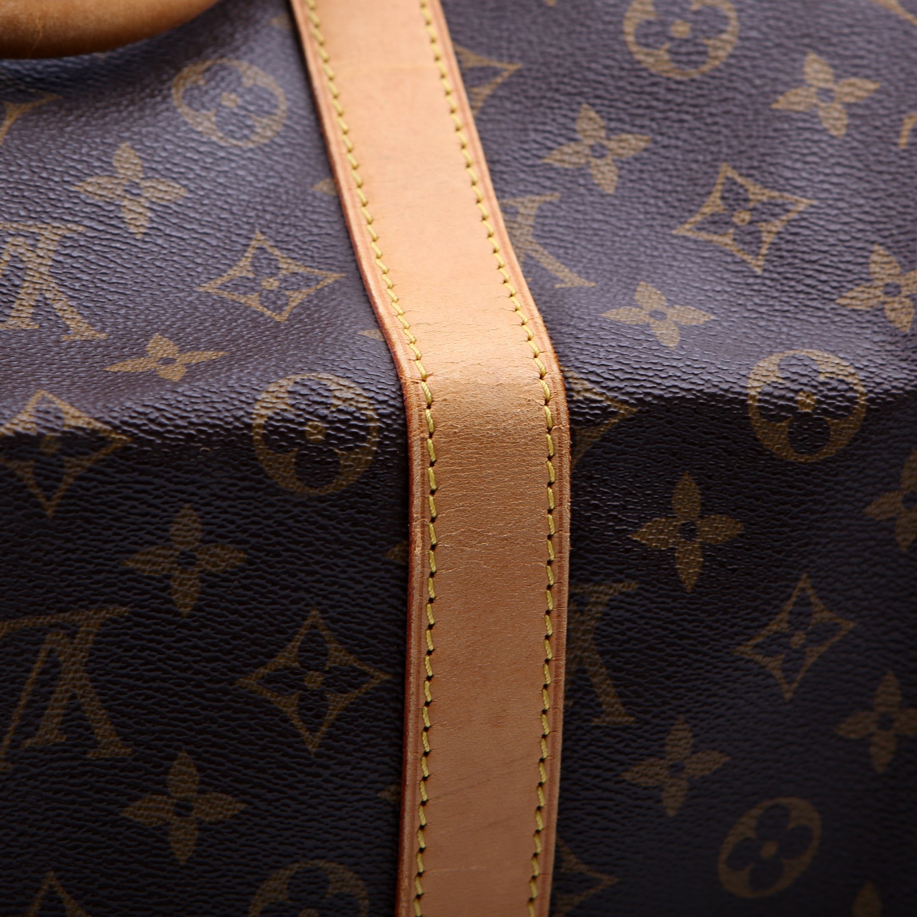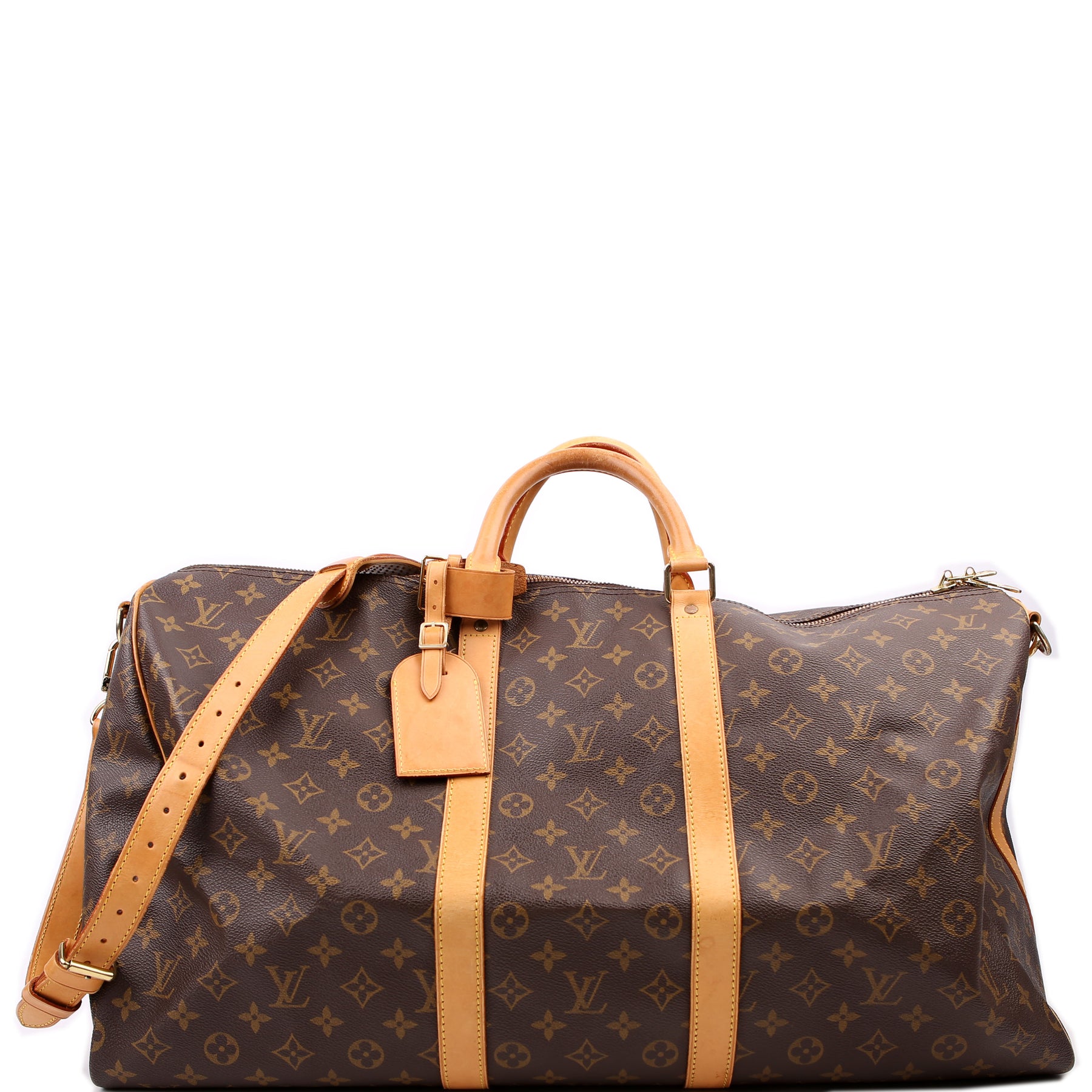 This pre-owned Louis Vuitton Keepall 55 Bandouliere is guaranteed 100% authentic. The exterior is in the classic Louis Vuitton Monogram coated canvas.