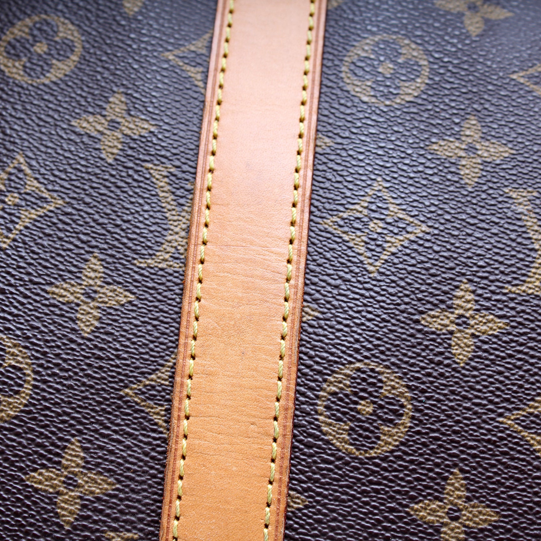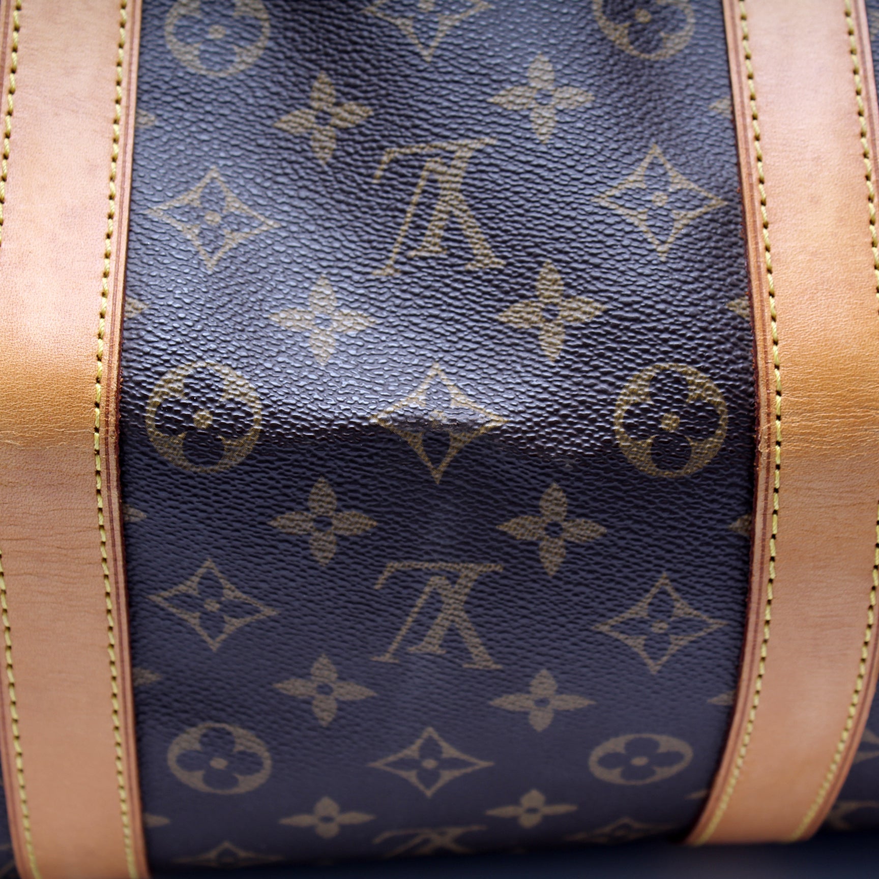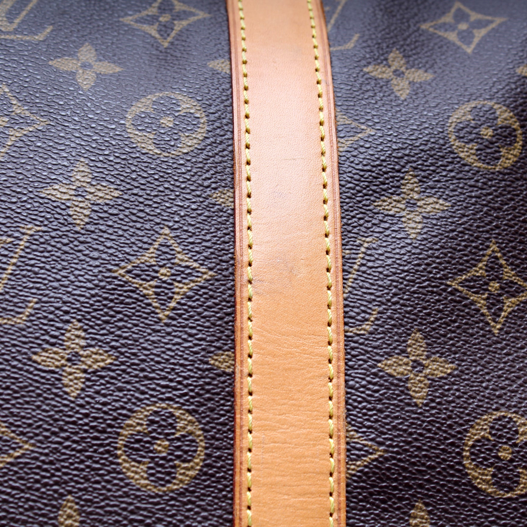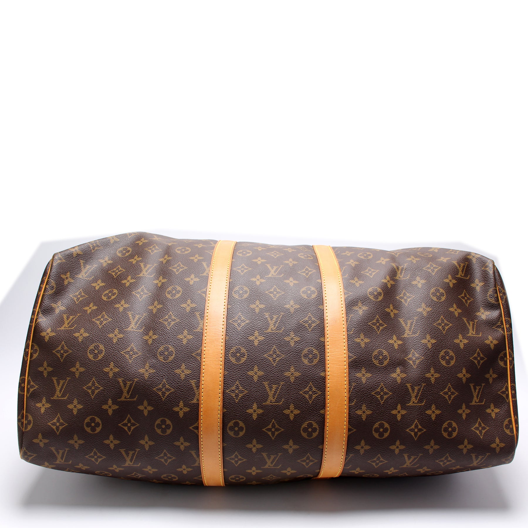 This pre-owned Louis Vuitton Keepall 55 is guaranteed 100% authentic. The exterior is in the classic Louis Vuitton Monogram coated canvas.