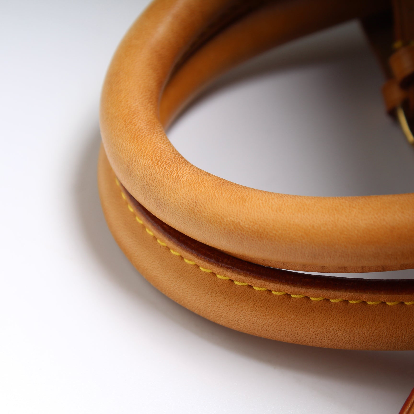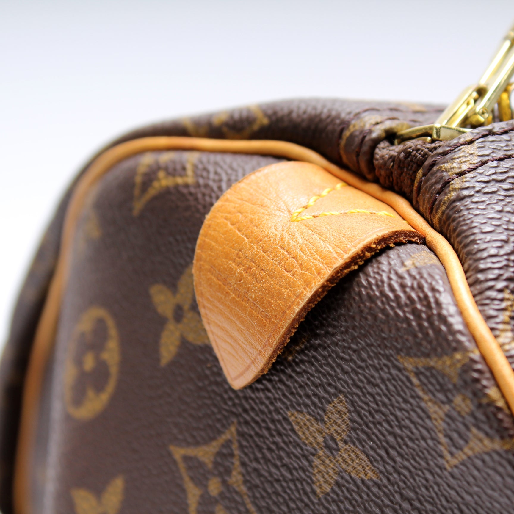 Handle: The leather handles have signs of wear.