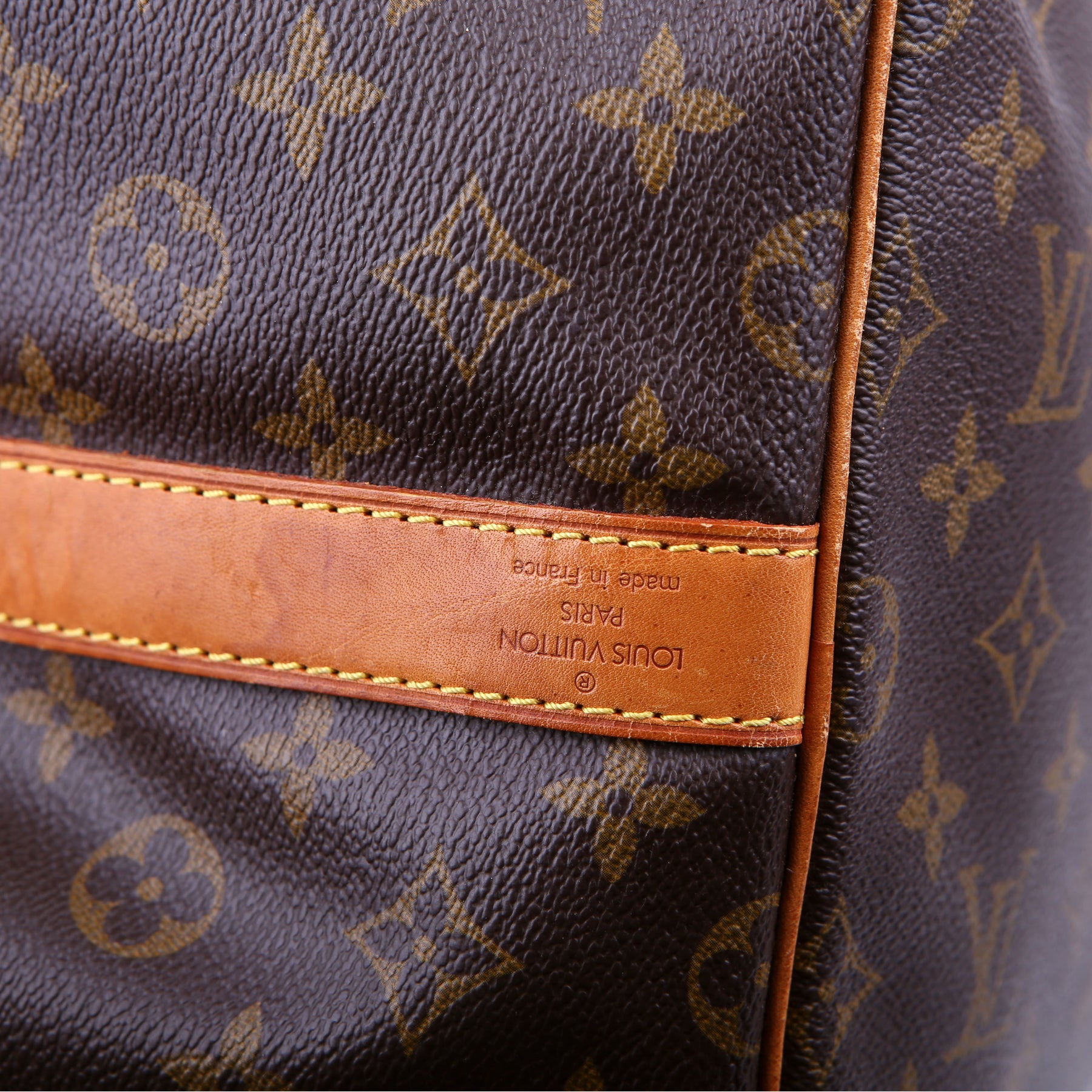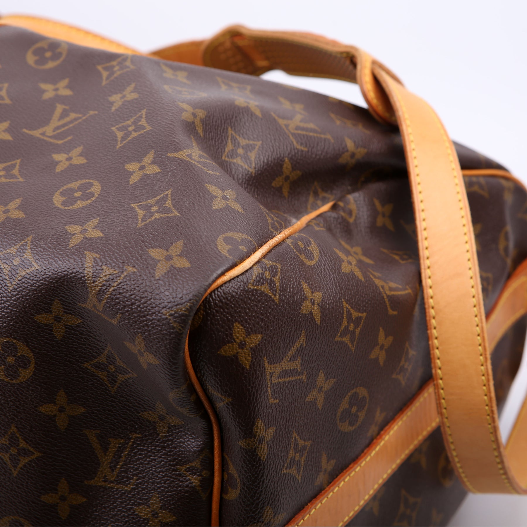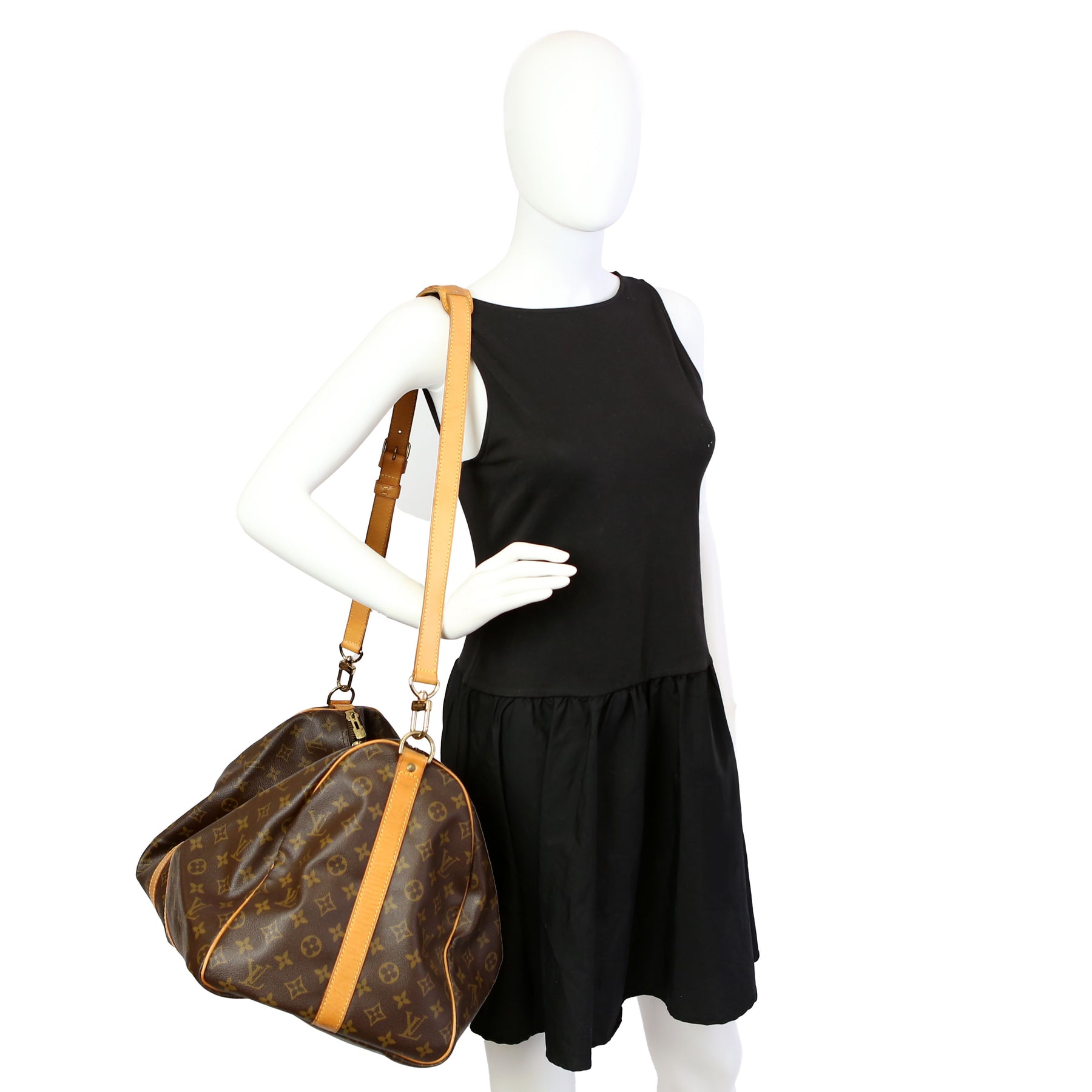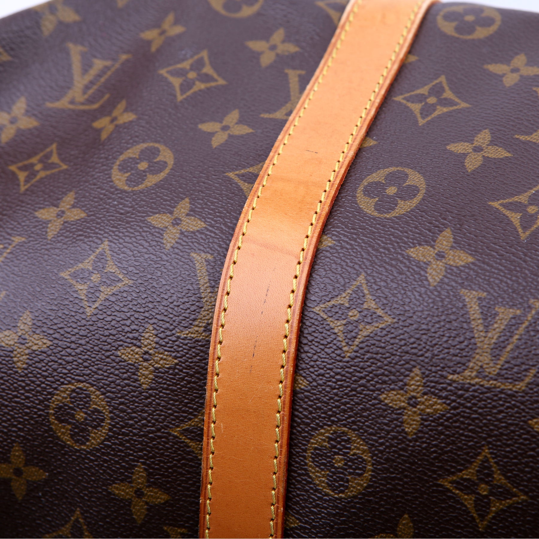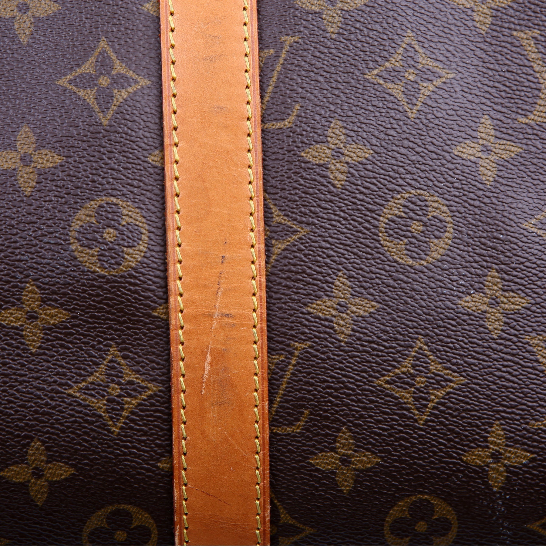 This pre-owned Louis Vuitton Keepall 55 Bandouliere is guaranteed 100% authentic. The exterior is in the classic Louis Vuitton Monogram coated canvas.