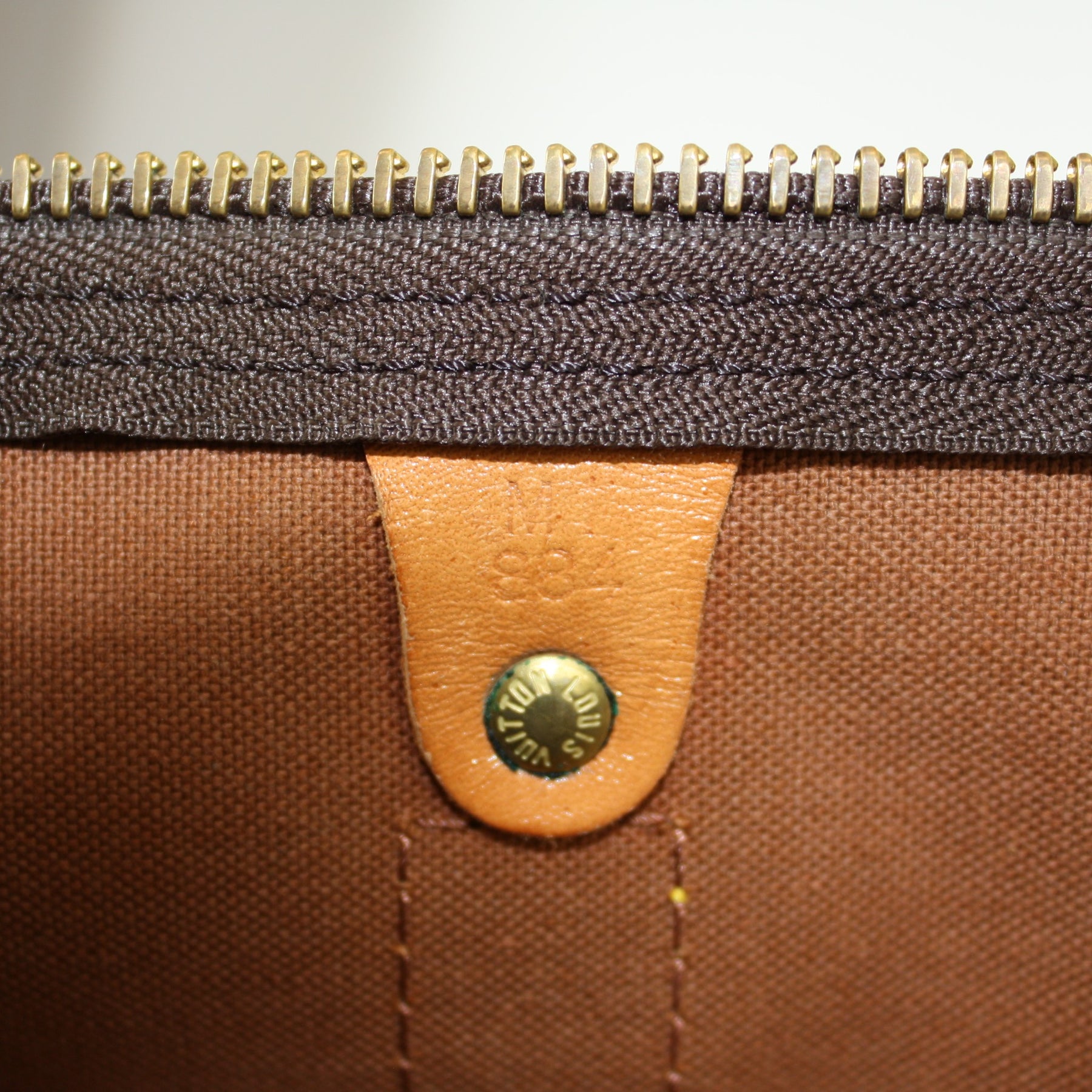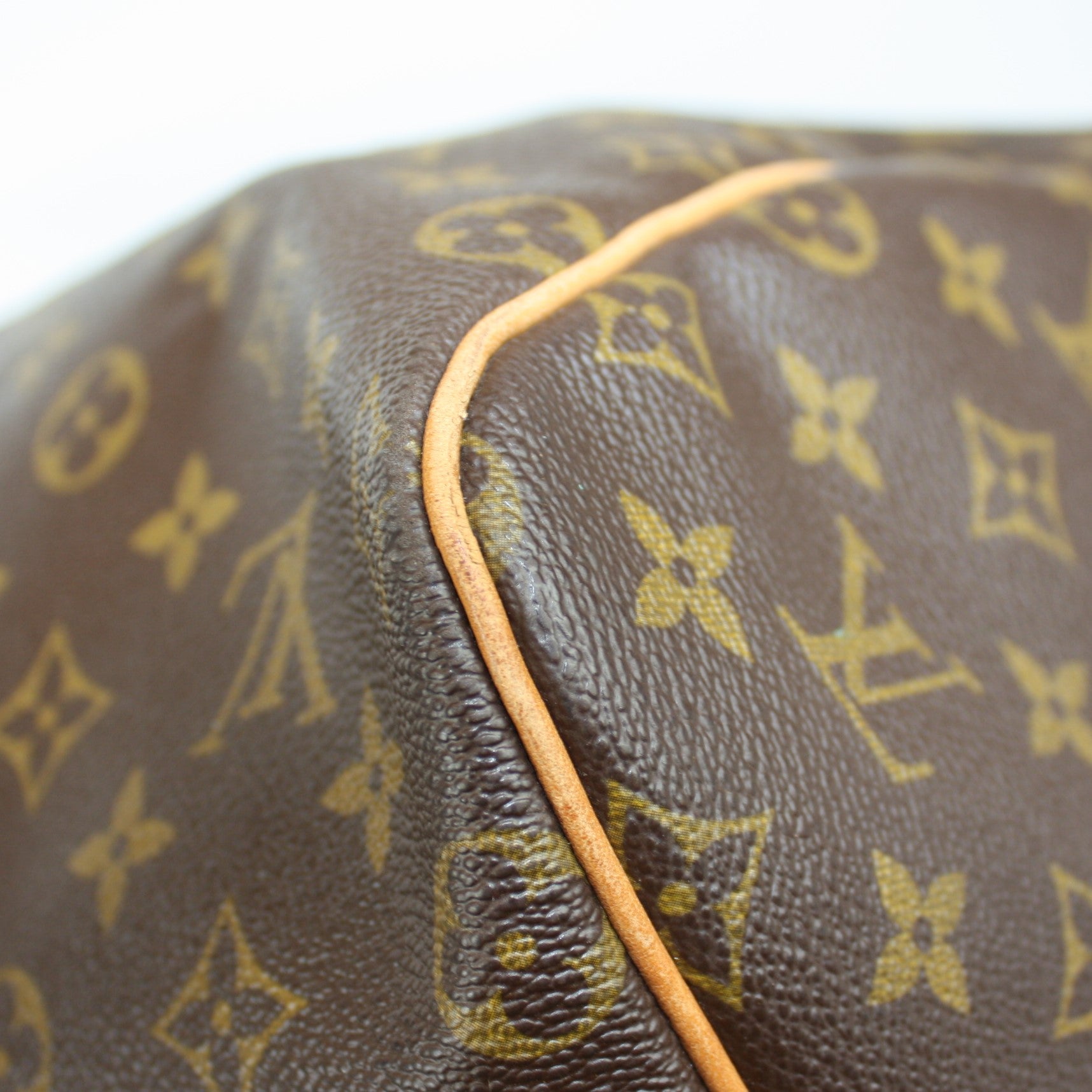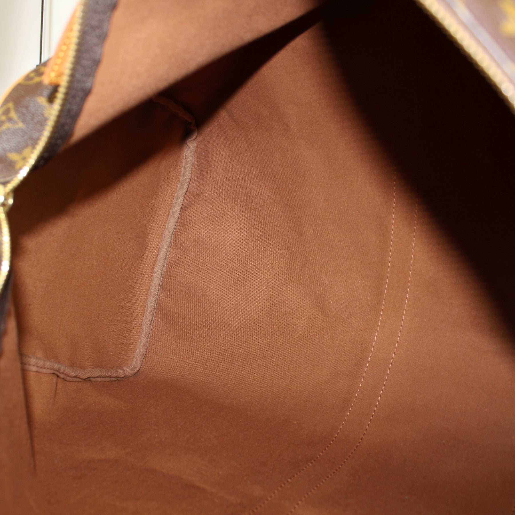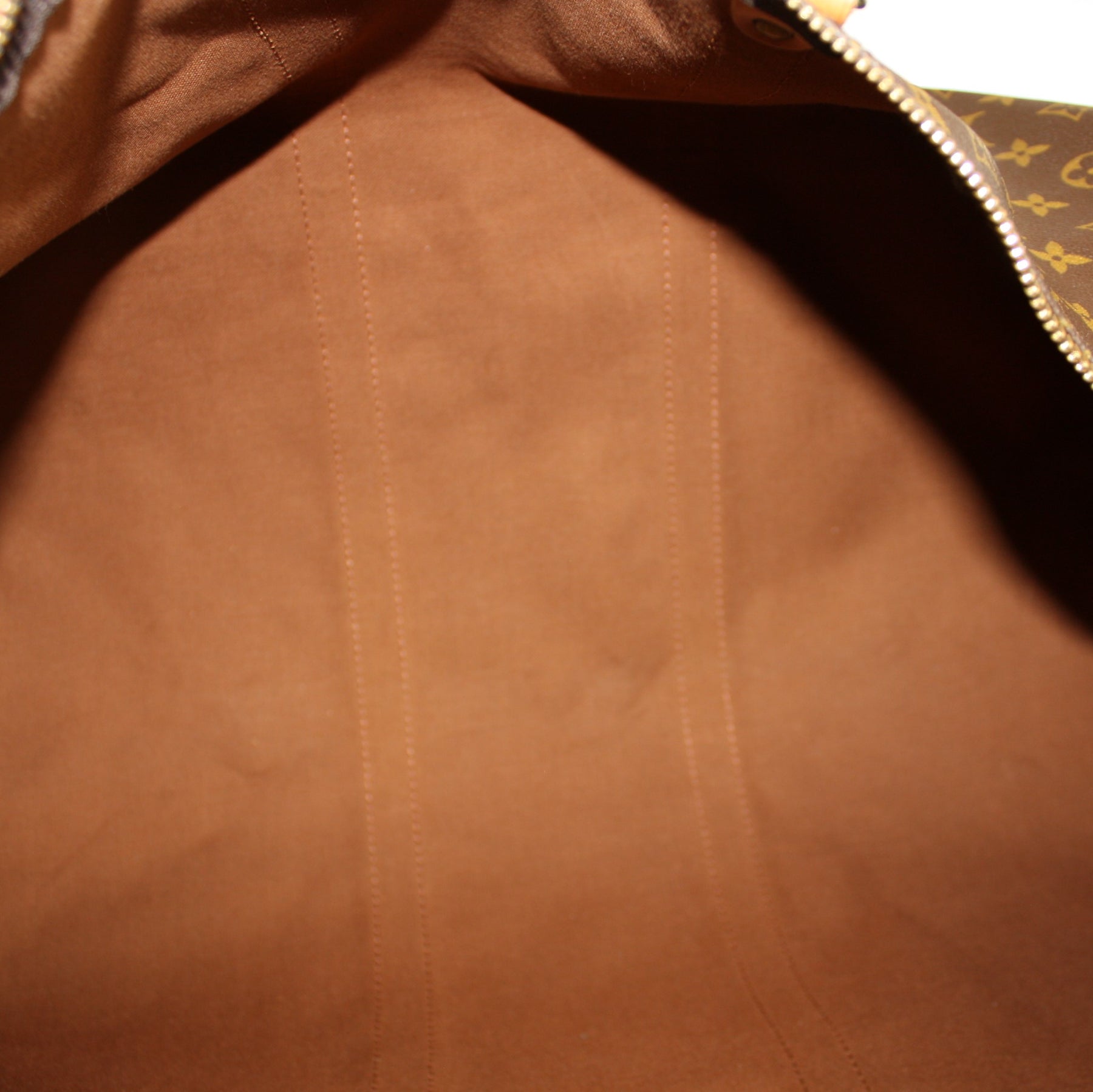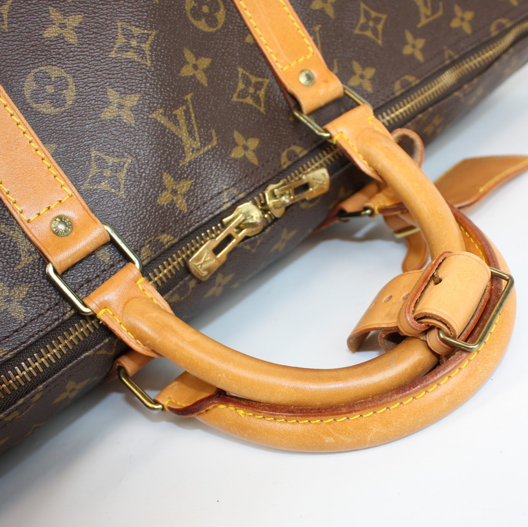 This pre-owned Louis Vuitton Keepall 55 is guaranteed 100% authentic. The exterior is in the classic Louis Vuitton Monogram coated canvas.