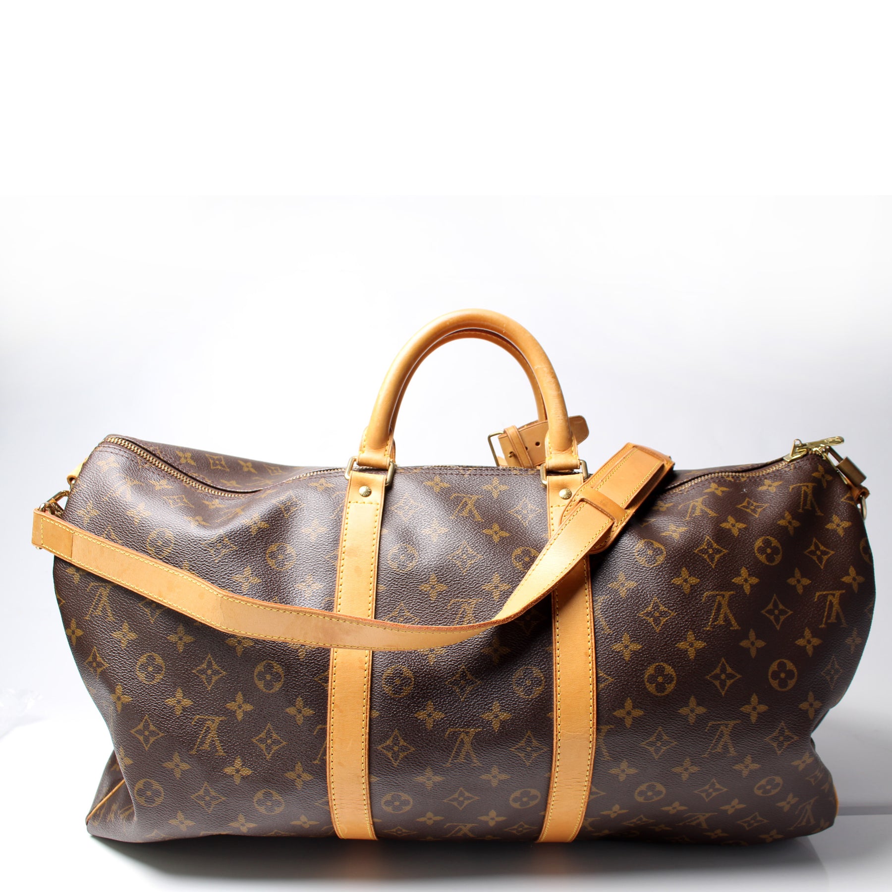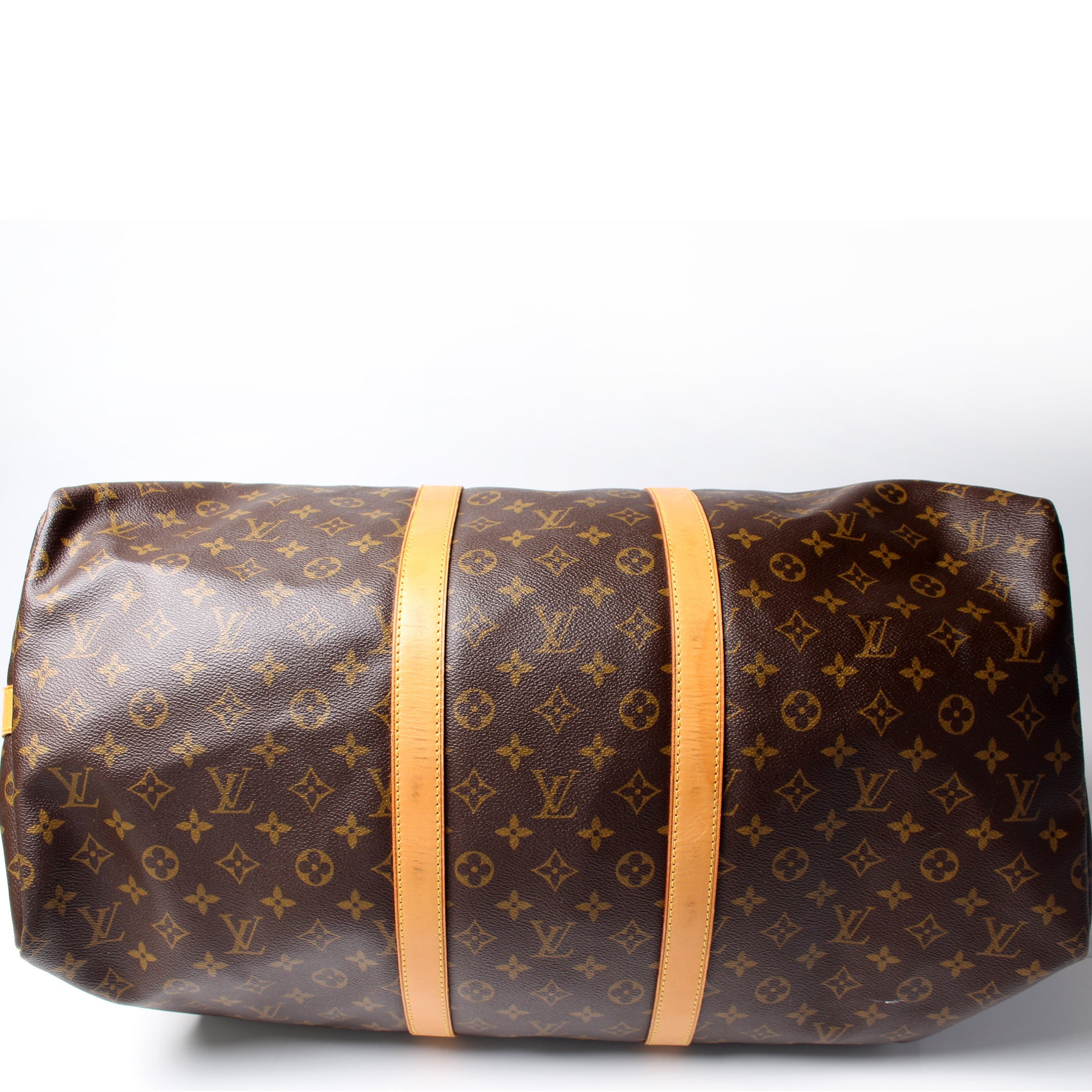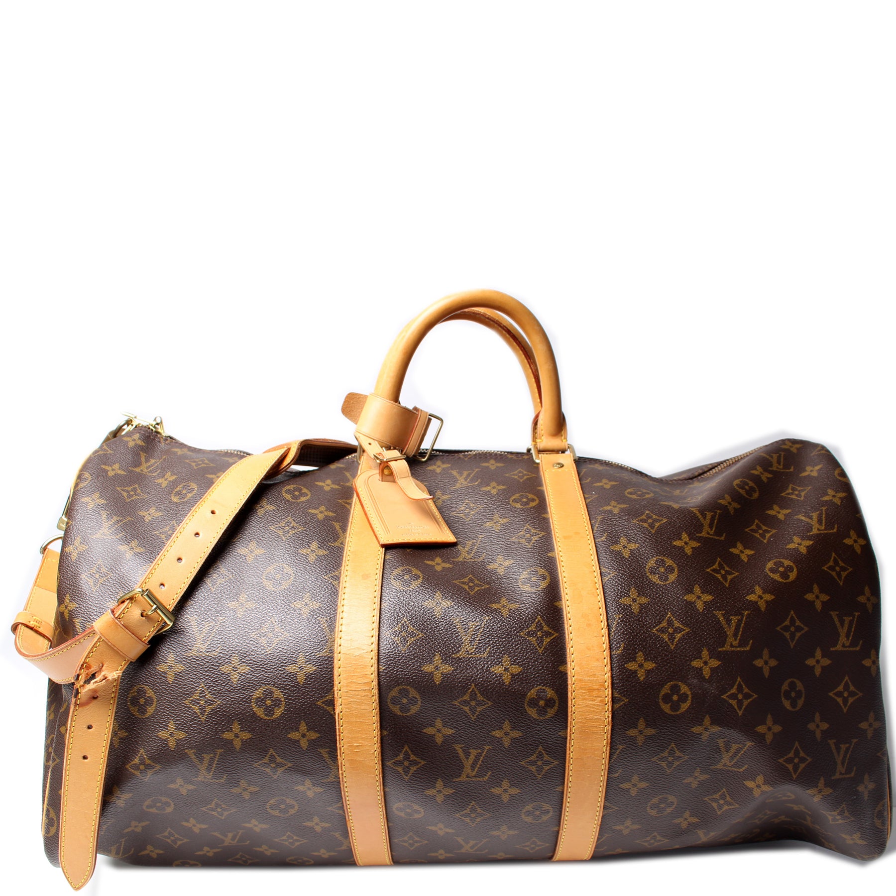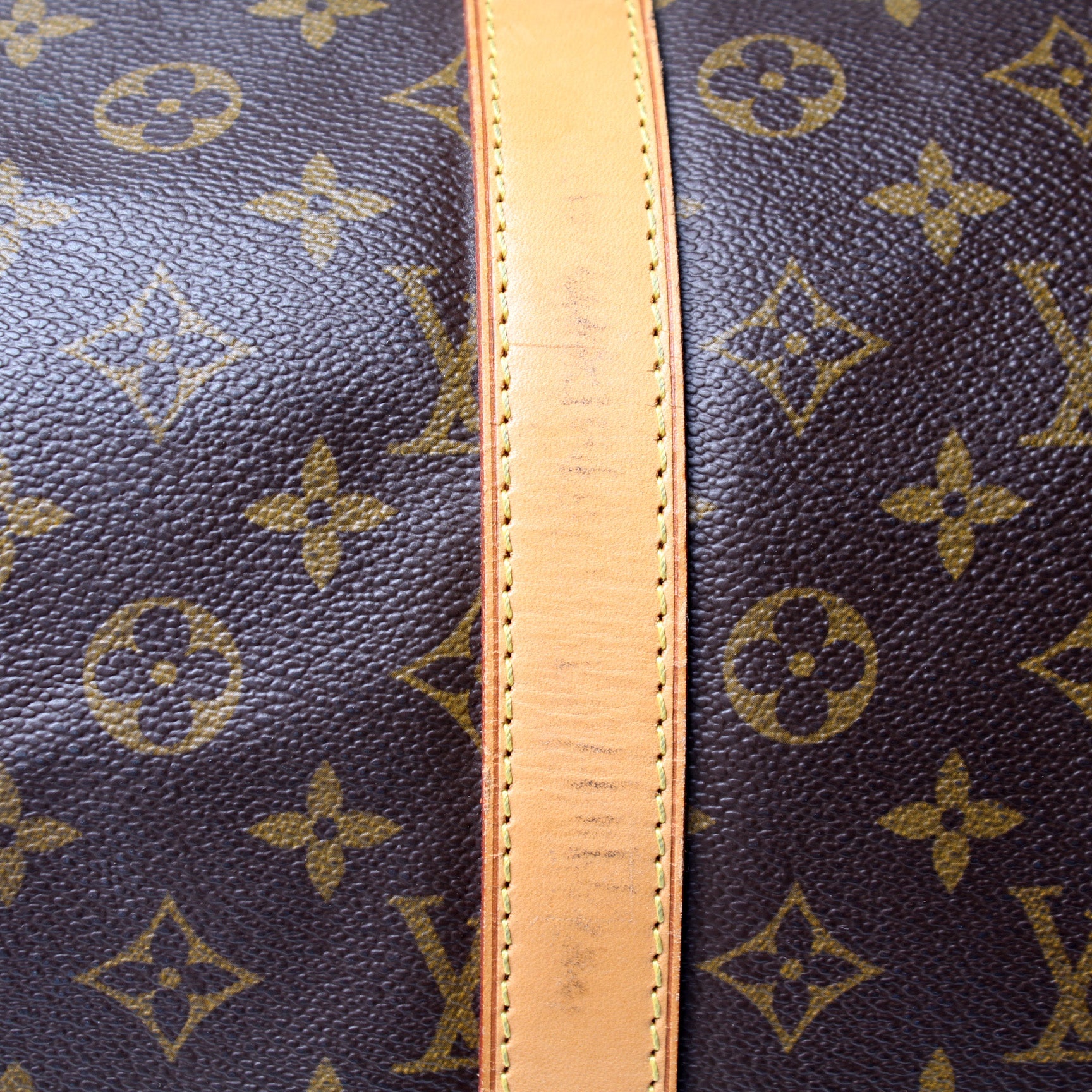 This pre-owned Louis Vuitton Keepall 55 Bandouliere is guaranteed 100% authentic. The exterior is in the classic Monogram coated canvas.