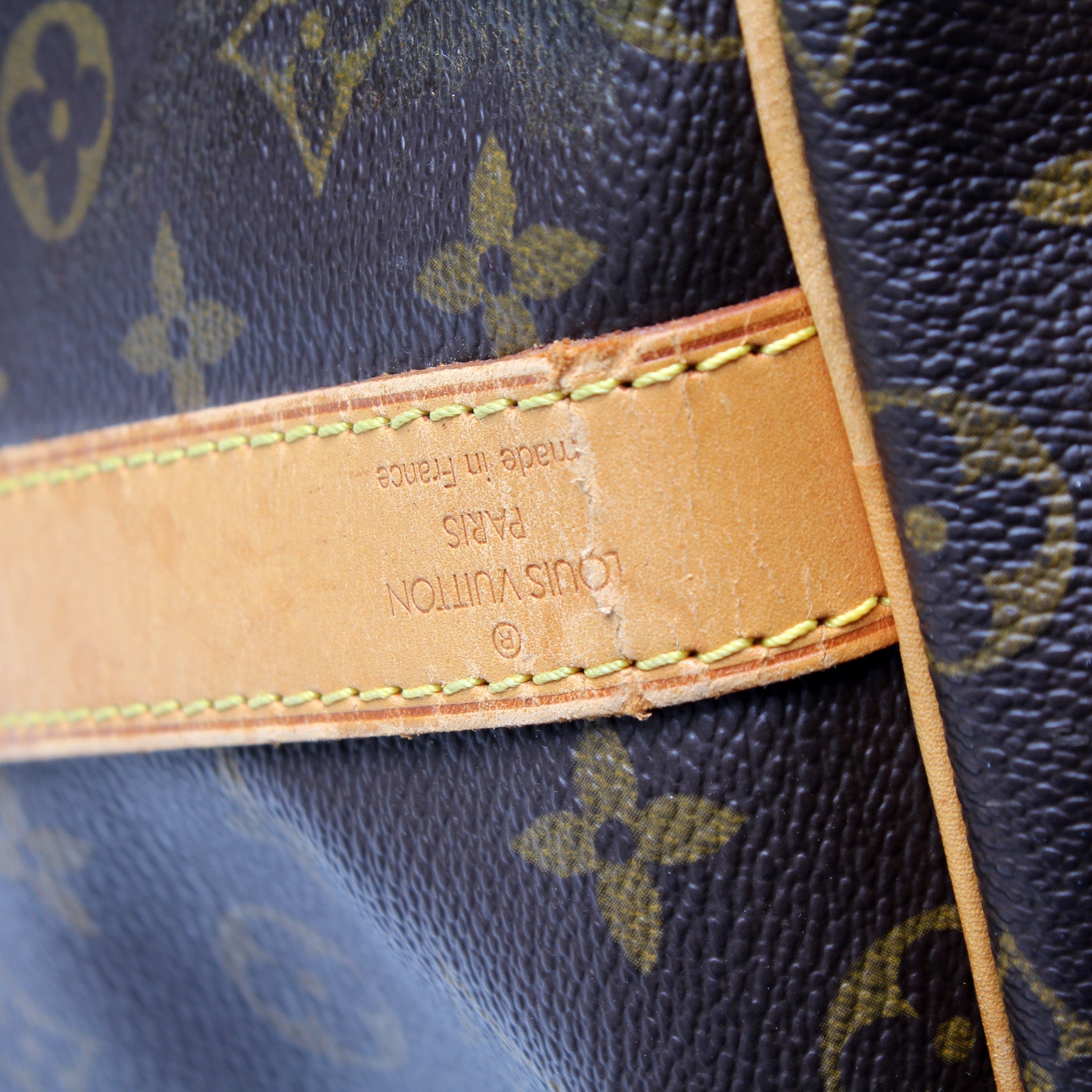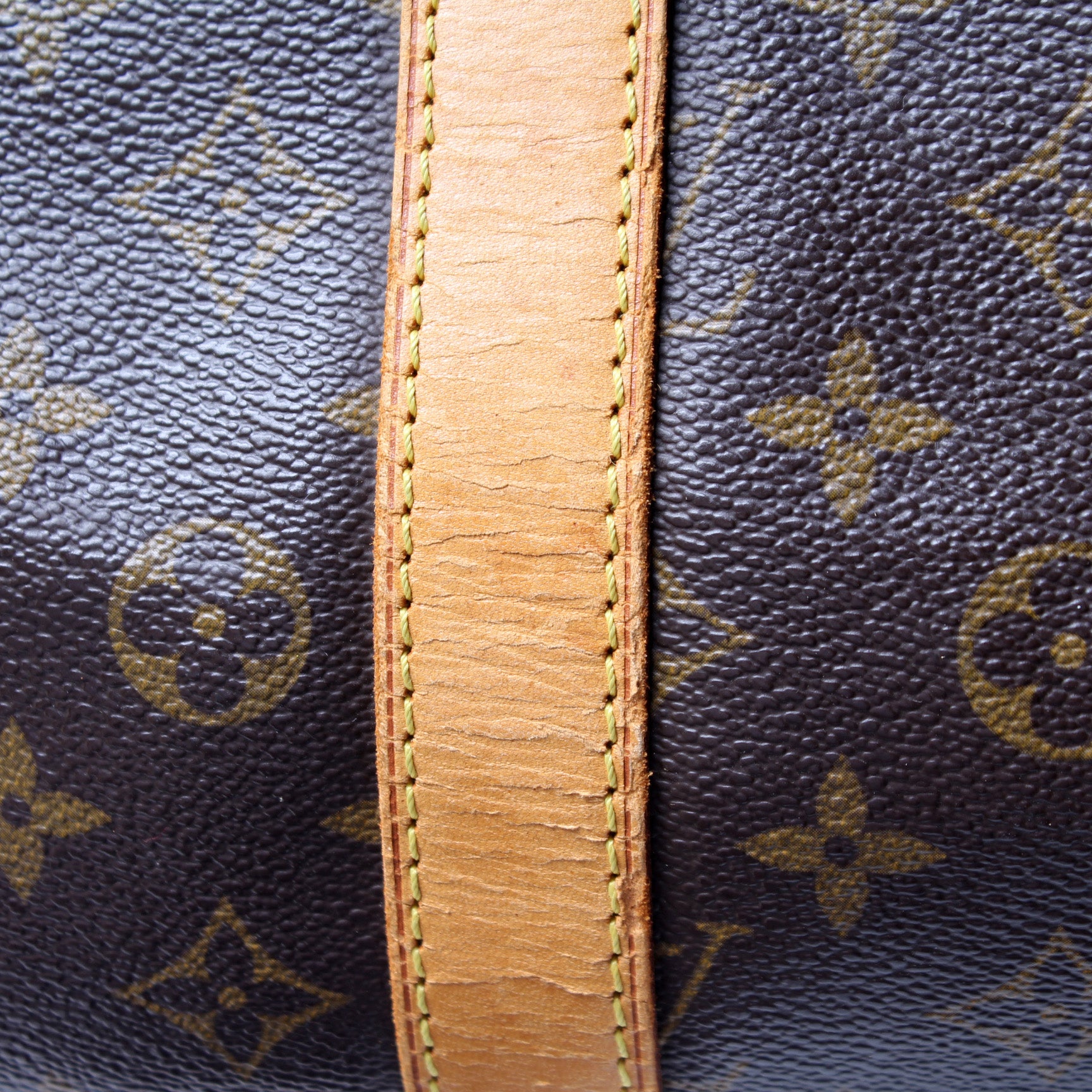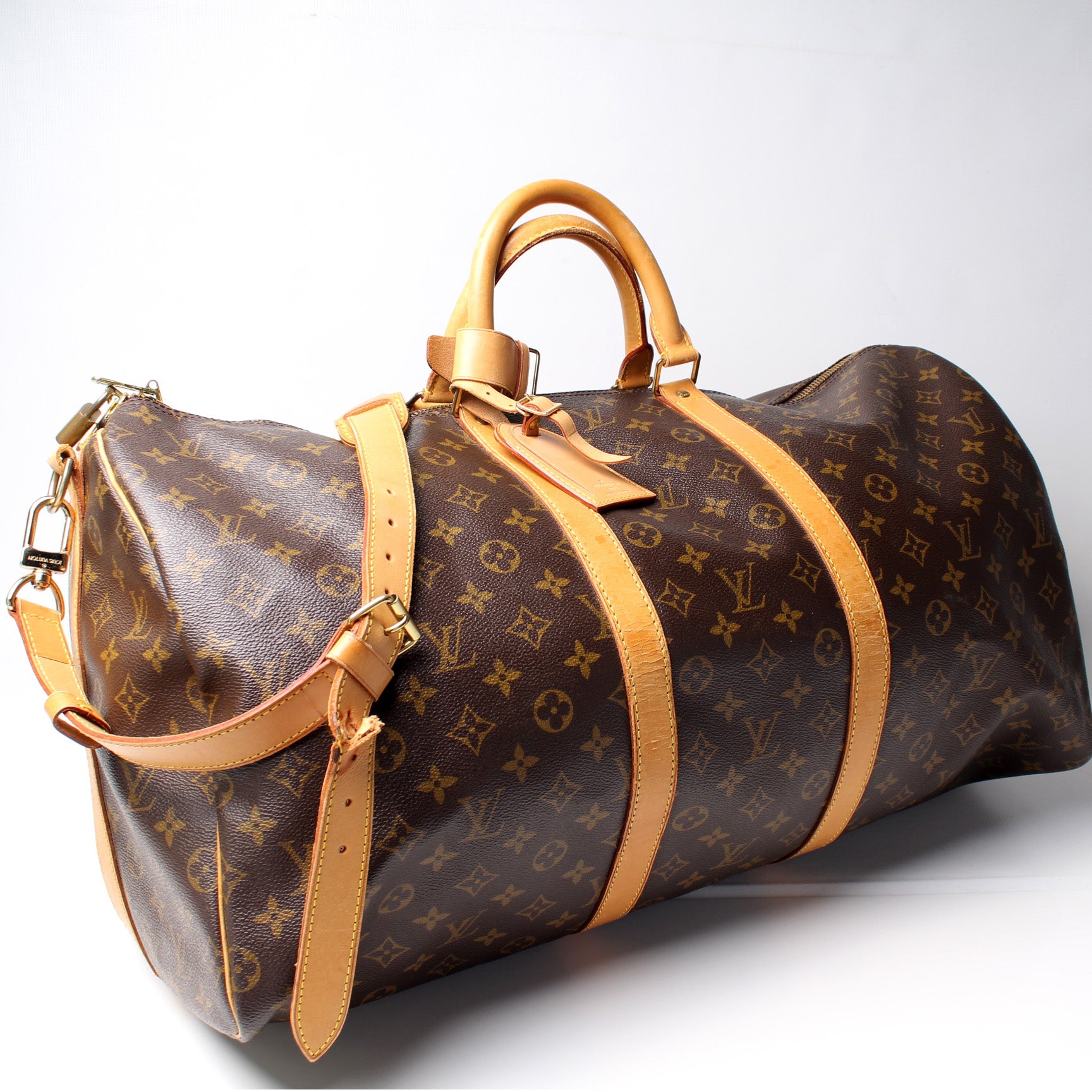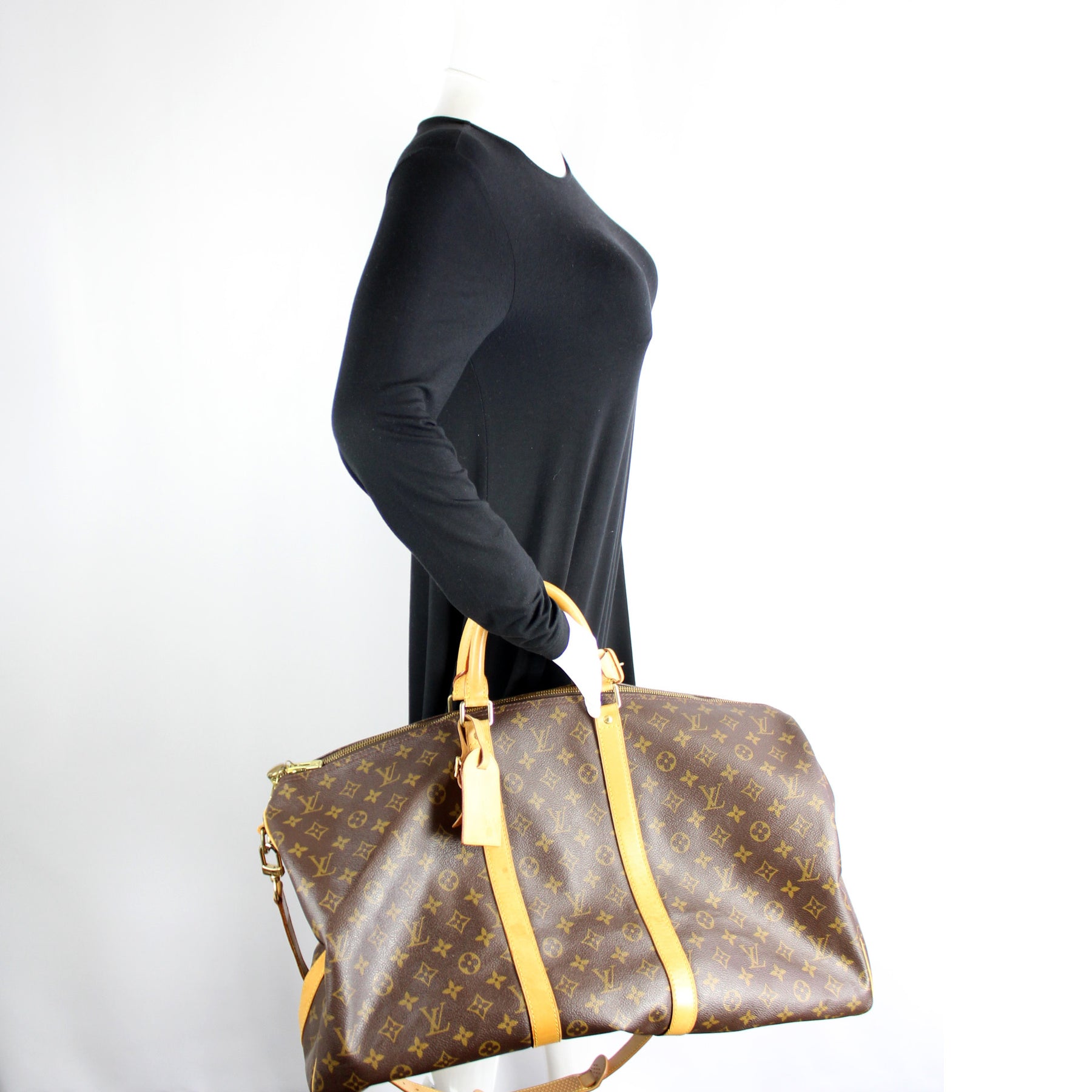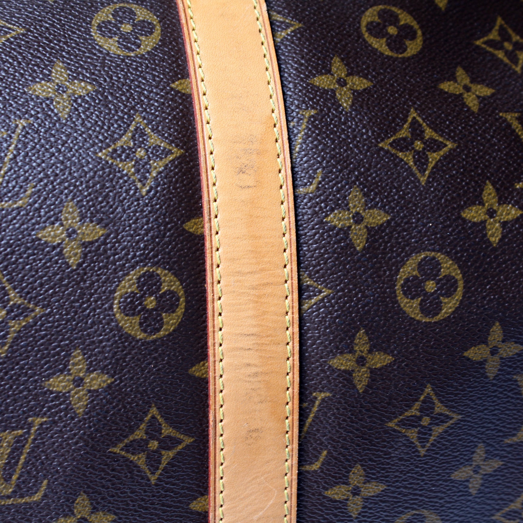 This pre-owned Louis Vuitton Keepall 55 Bandouliere is guaranteed 100% authentic. The exterior is in the classic Monogram coated canvas.