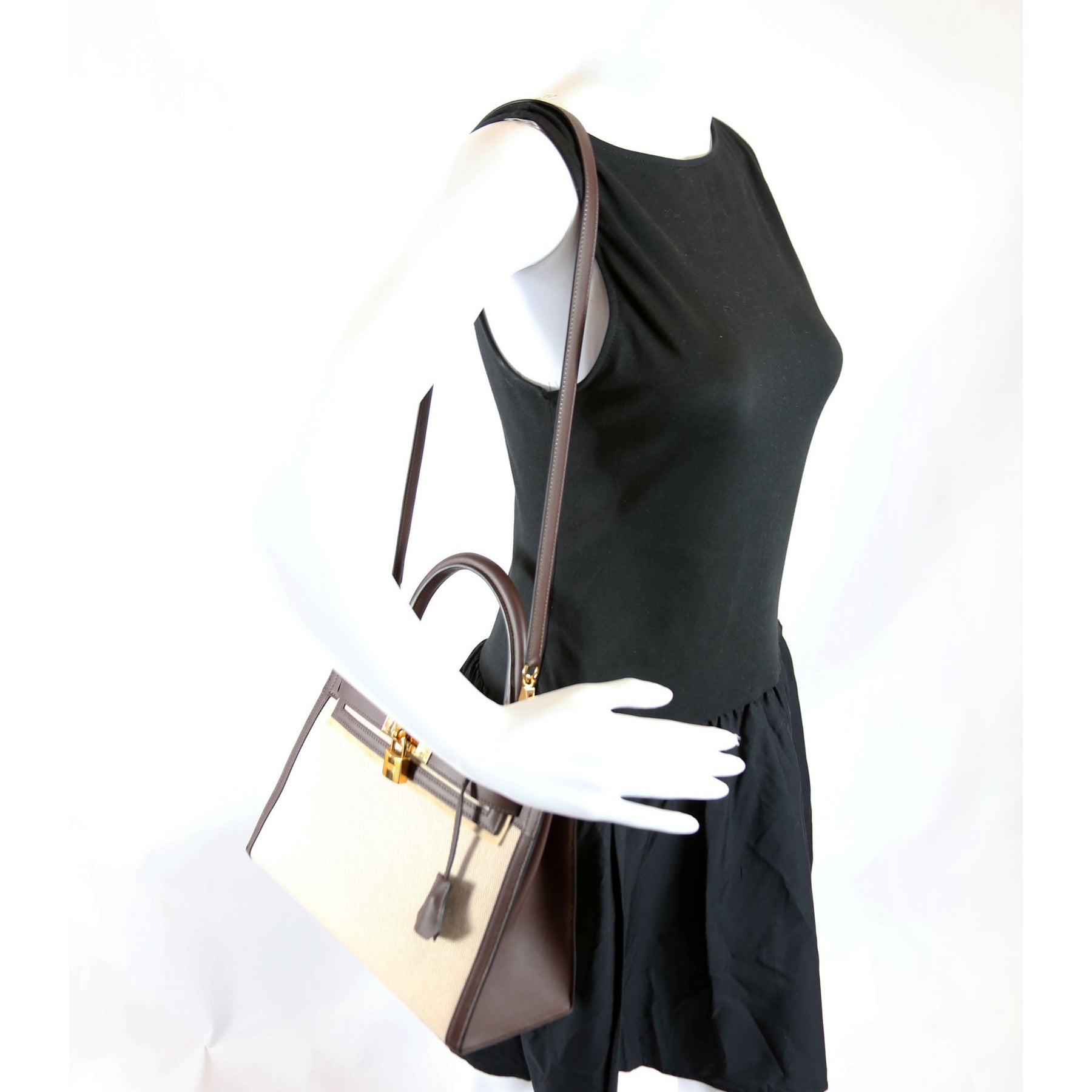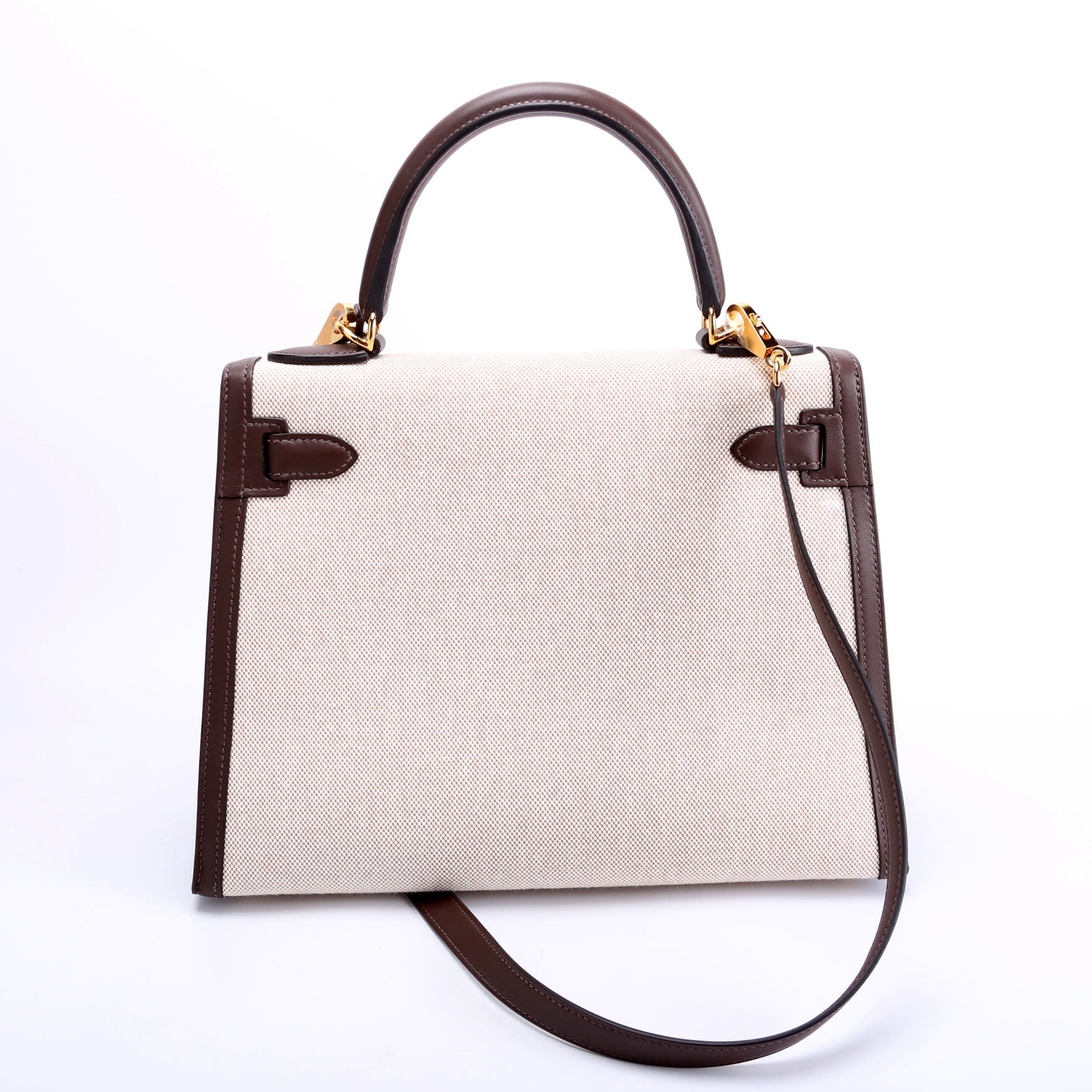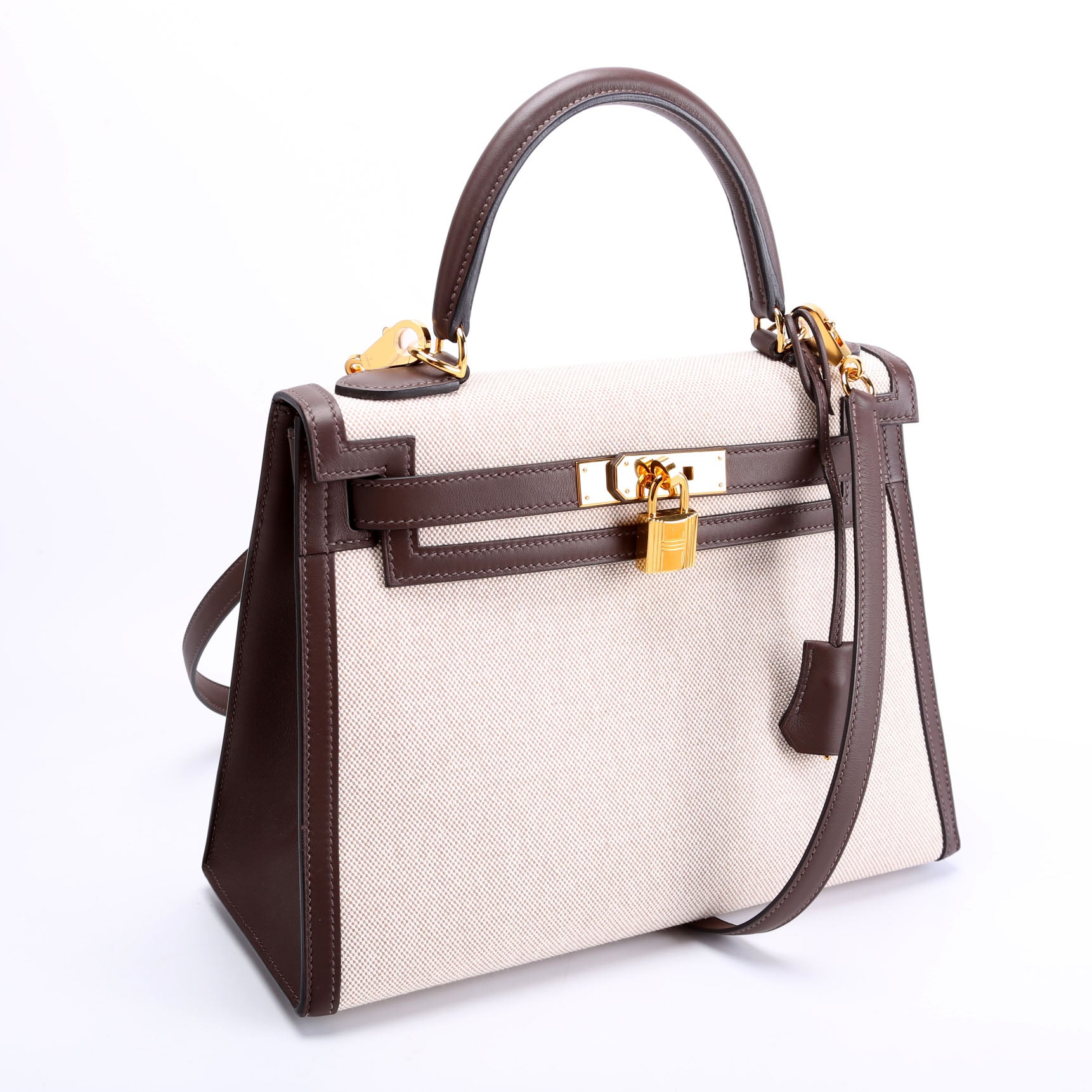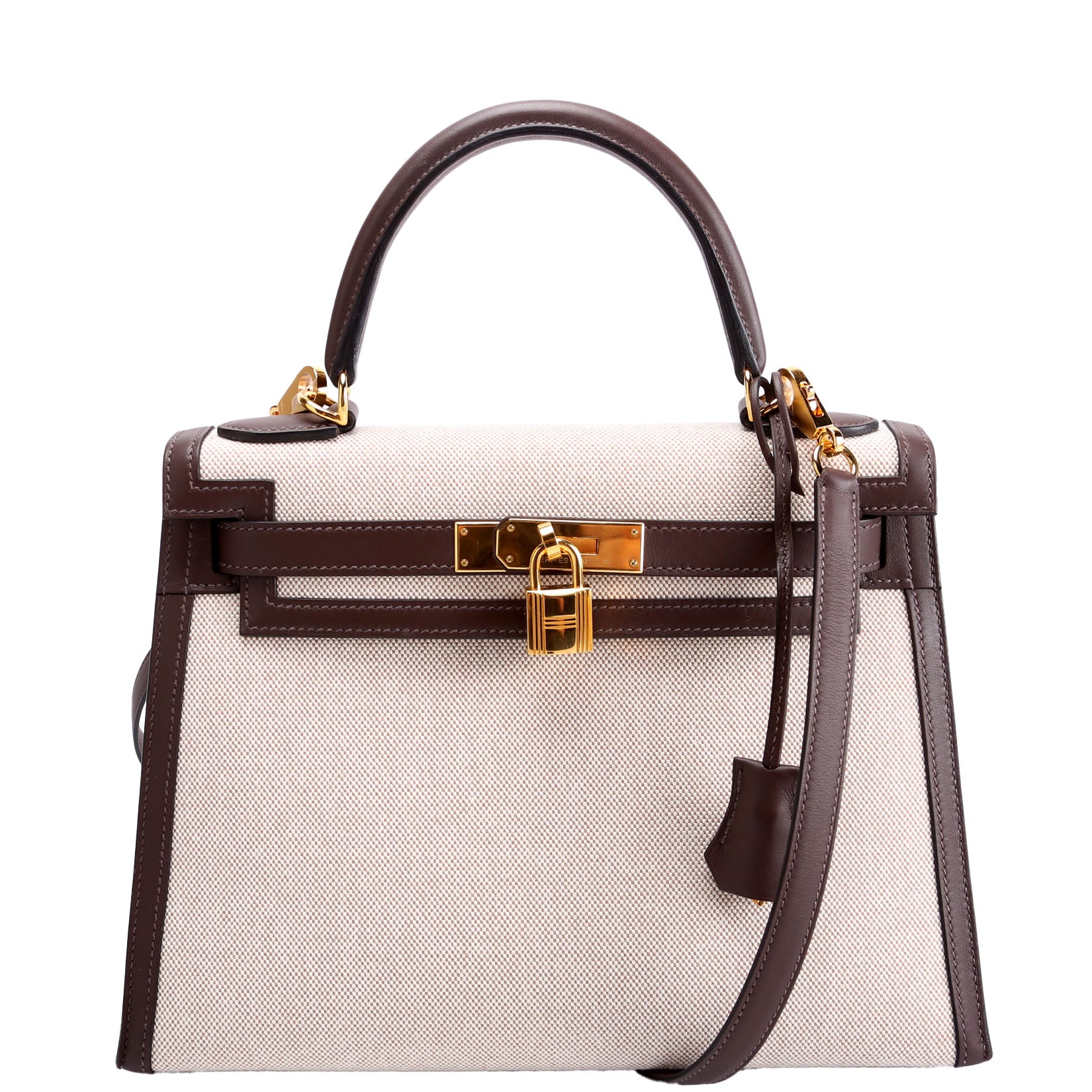 This pre-owned Hermes Kelly II Sellier 28 Toile Swift is guaranteed 100% authentic. The exterior is in the classic Hermes canvas/leather.