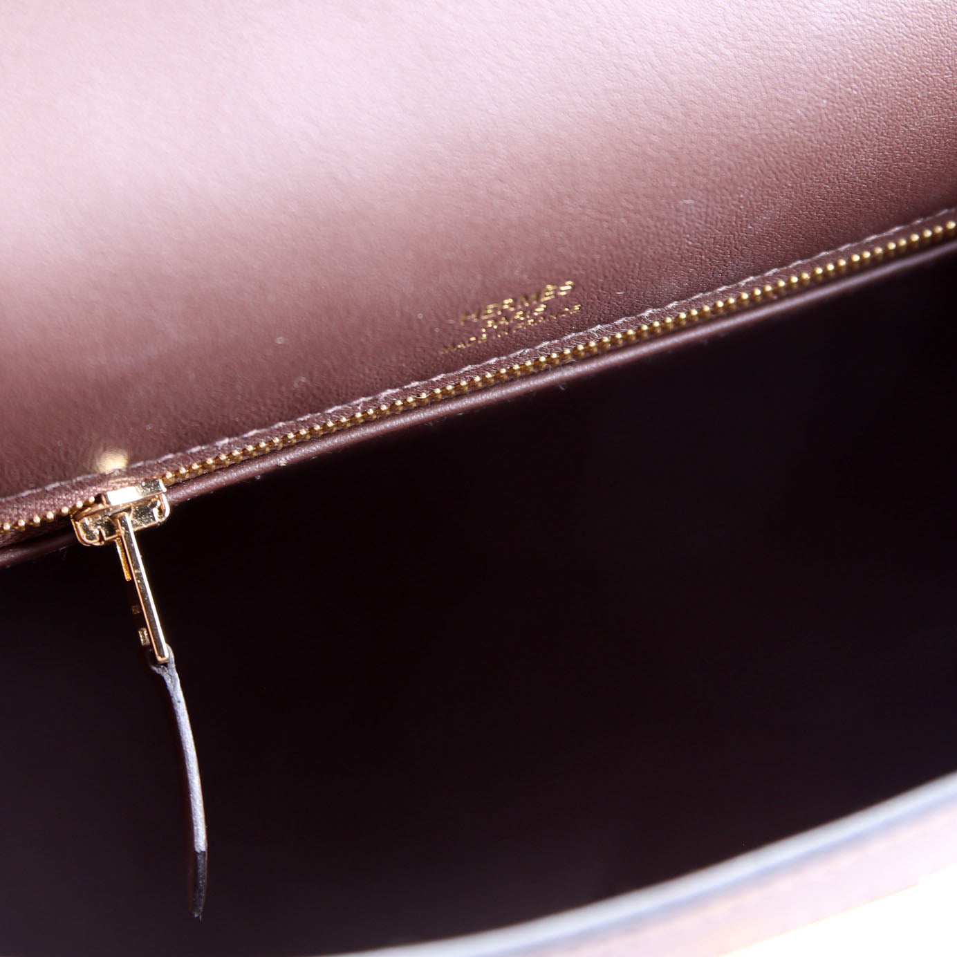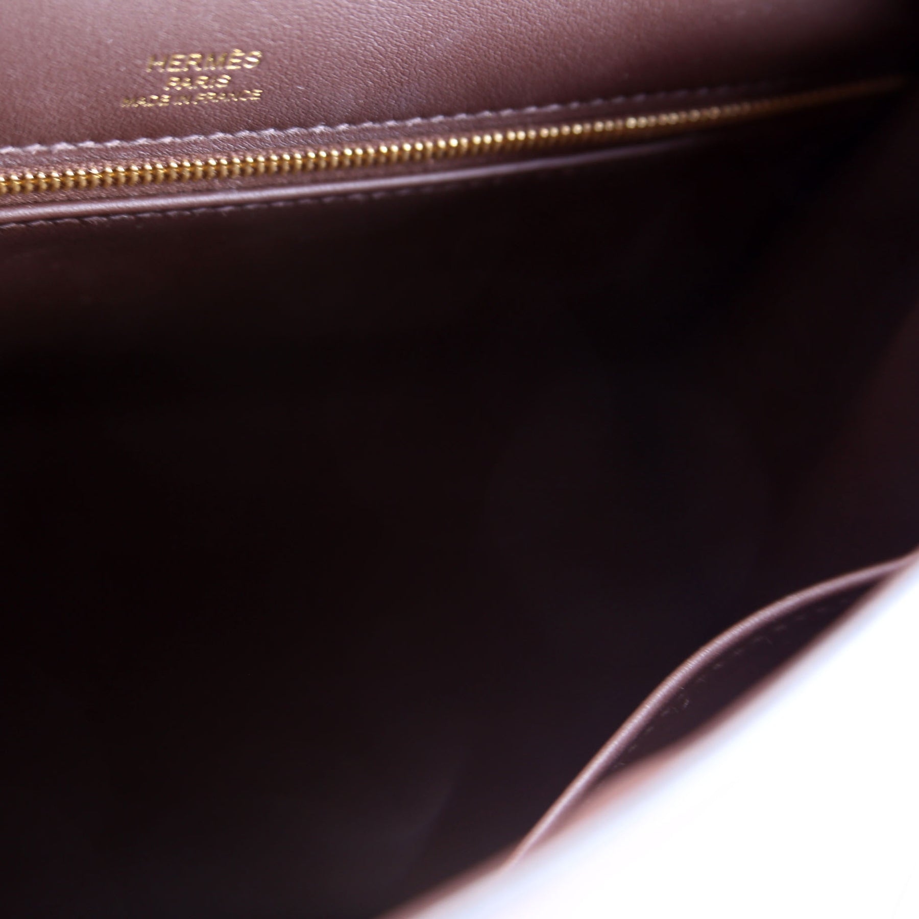 Interior: Free of wear. Features one zip pocket.