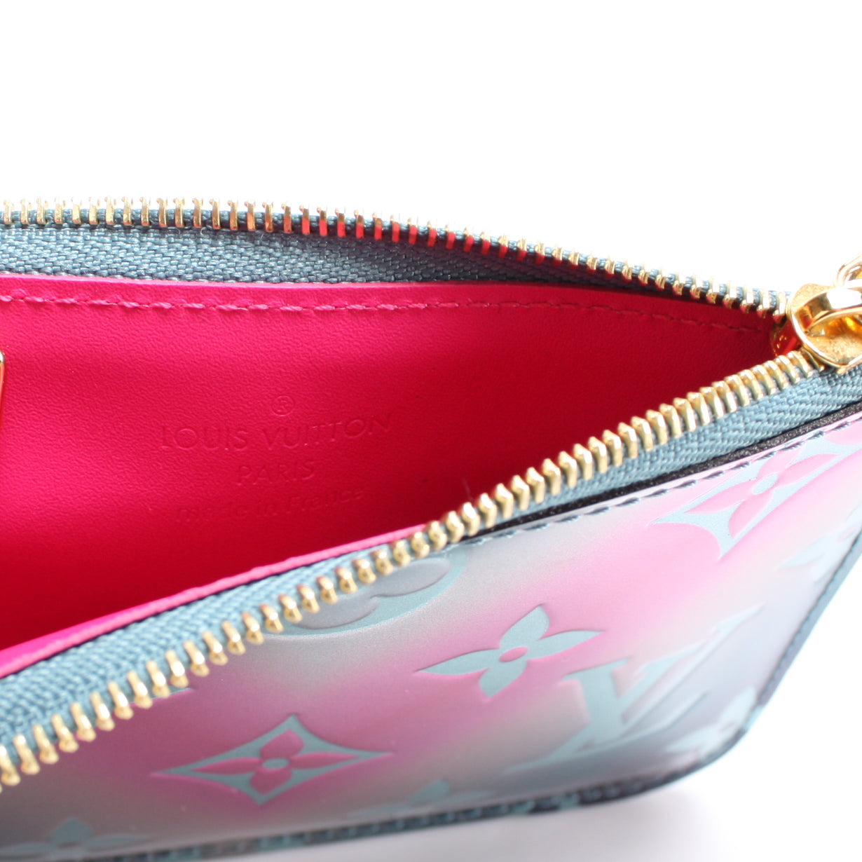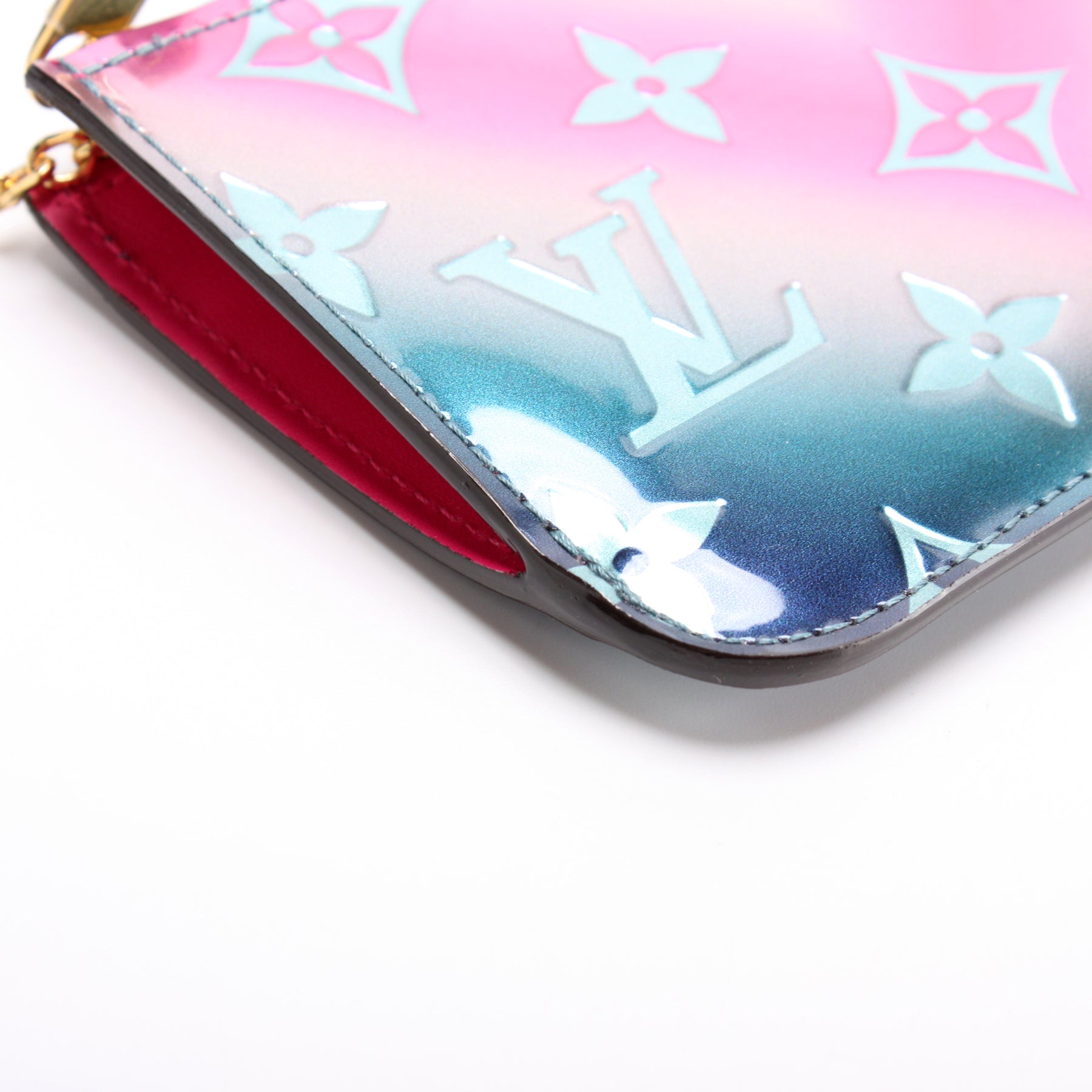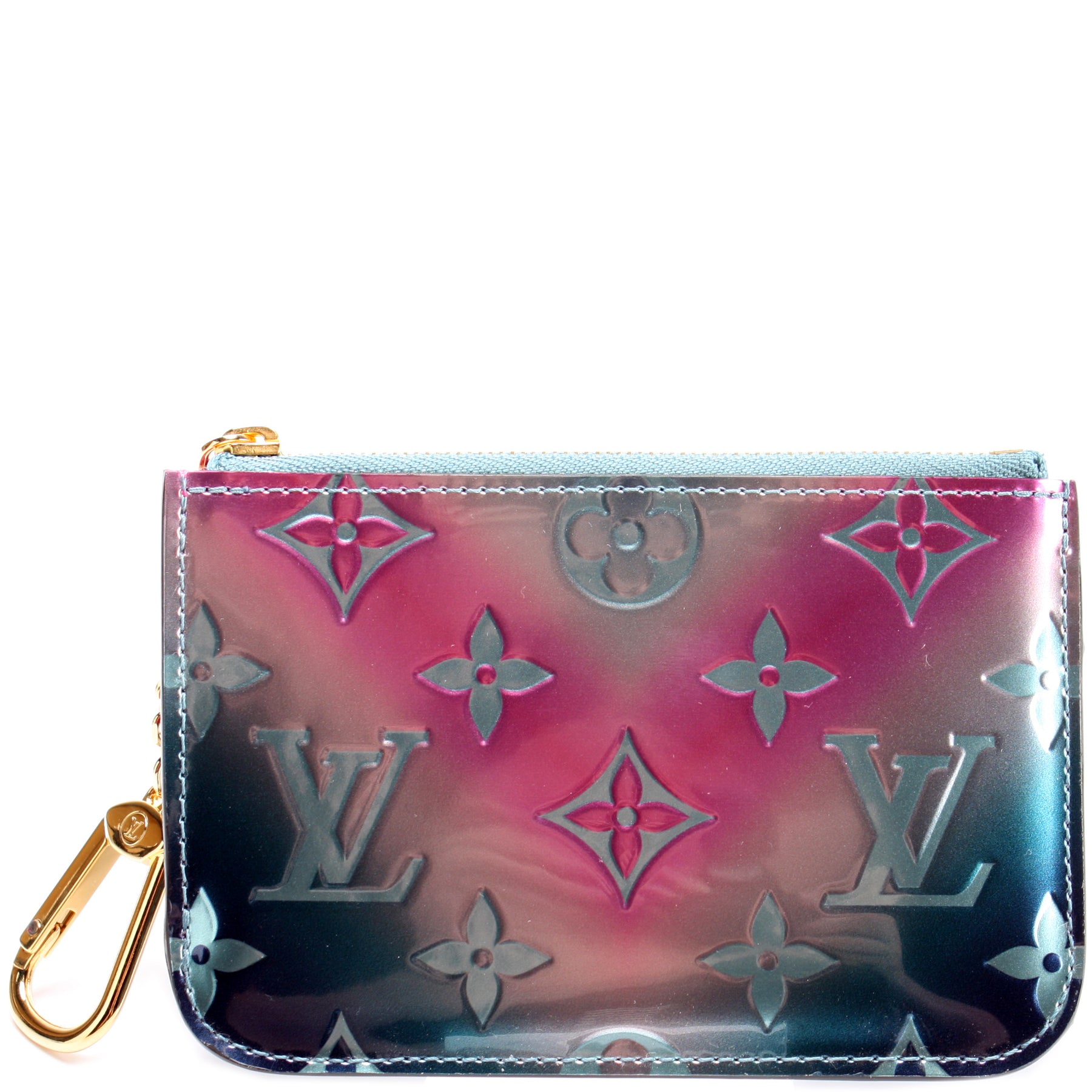 This pre-owned Louis Vuitton Key Pouch is guaranteed 100% authentic. The exterior is in the classic Louis Vuitton Degrade Metallic Vernis leather.