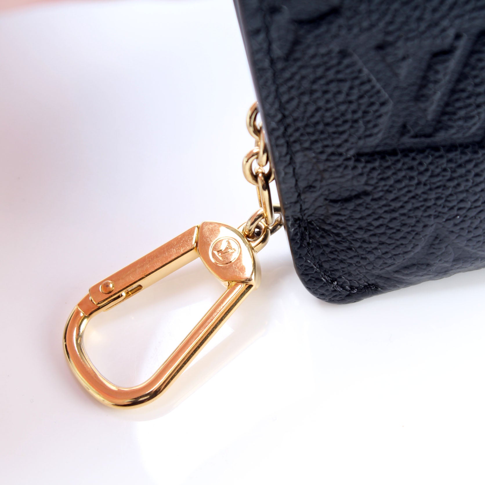 This pre-owned Louis Vuitton Key pouch is guaranteed 100% authentic. The exterior is in the classic Louis Vuitton Empriente leather.
