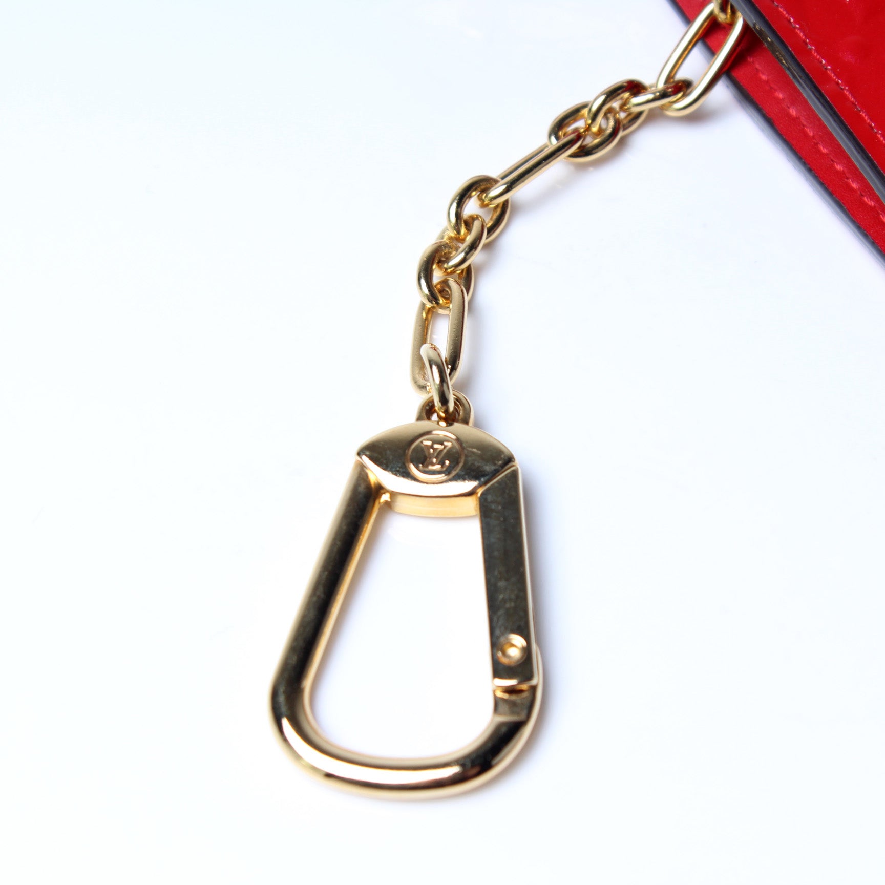 This pre-owned Louis Vuitton Key Pouch is guaranteed 100% authentic. The exterior is in the classic Louis Vuitton Vernis leather.