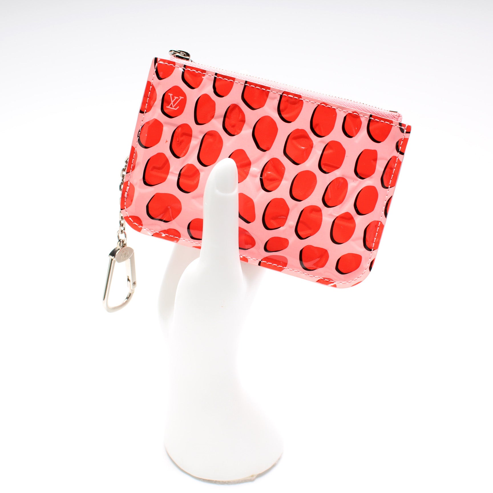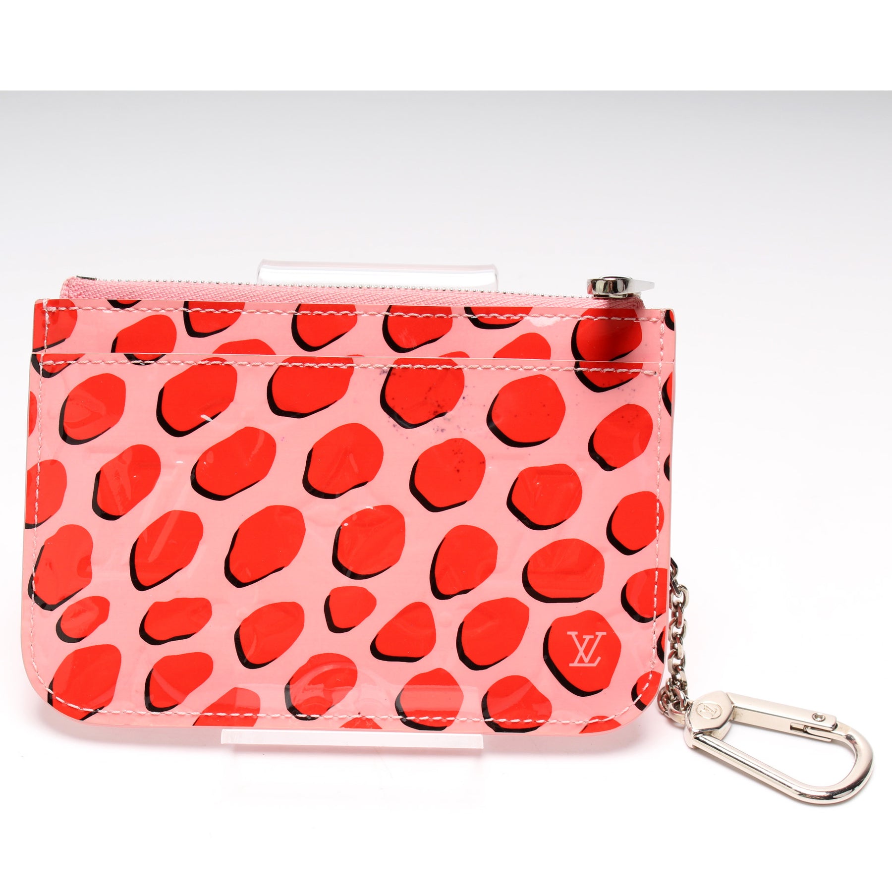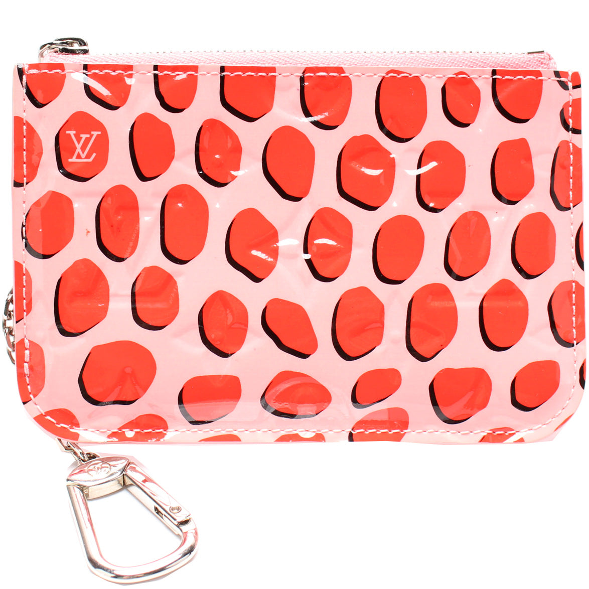 This pre-owned Louis Vuitton Key Pouch is guaranteed 100% authentic. The exterior is in the classic Louis Vuitton Vernis Jungle Dots leather.