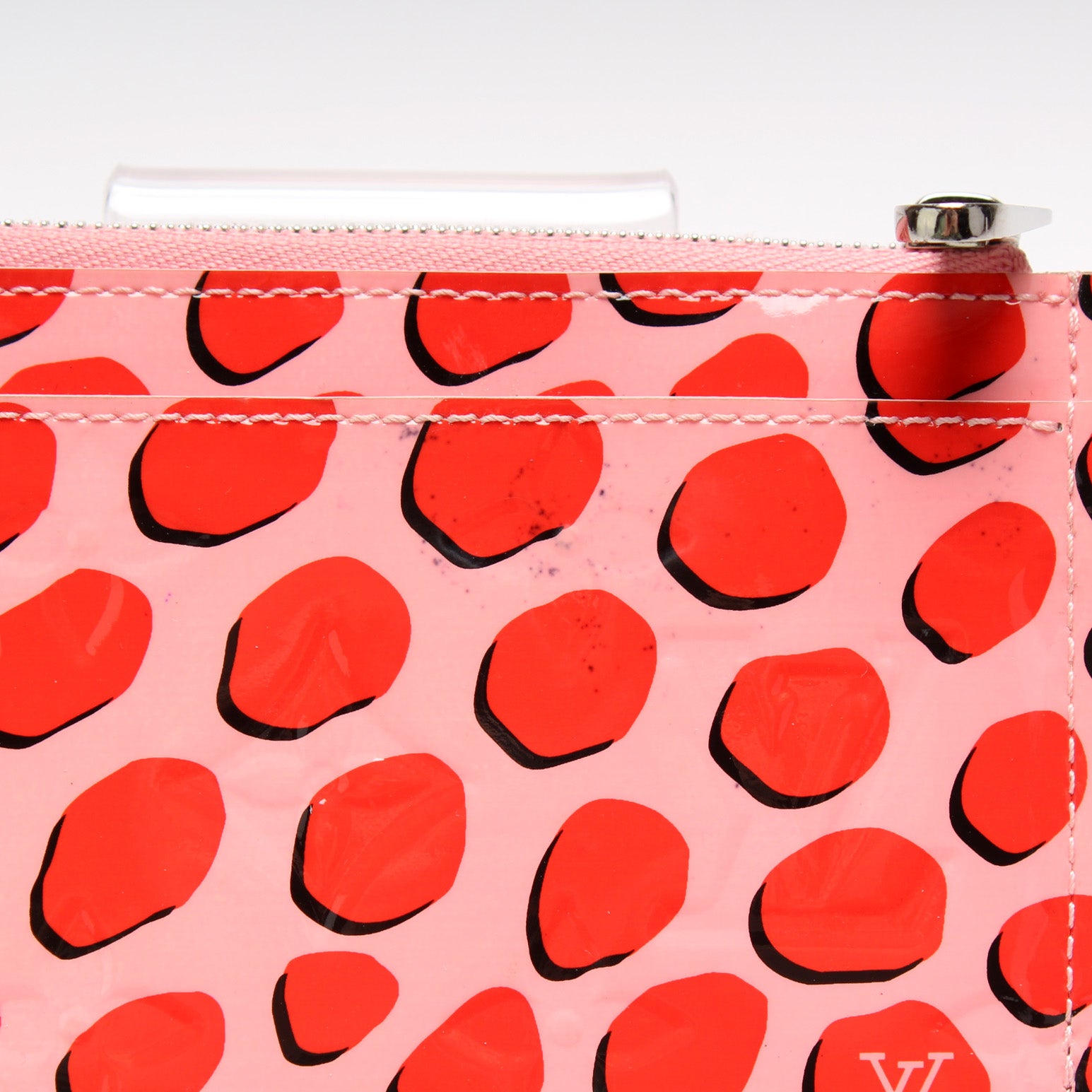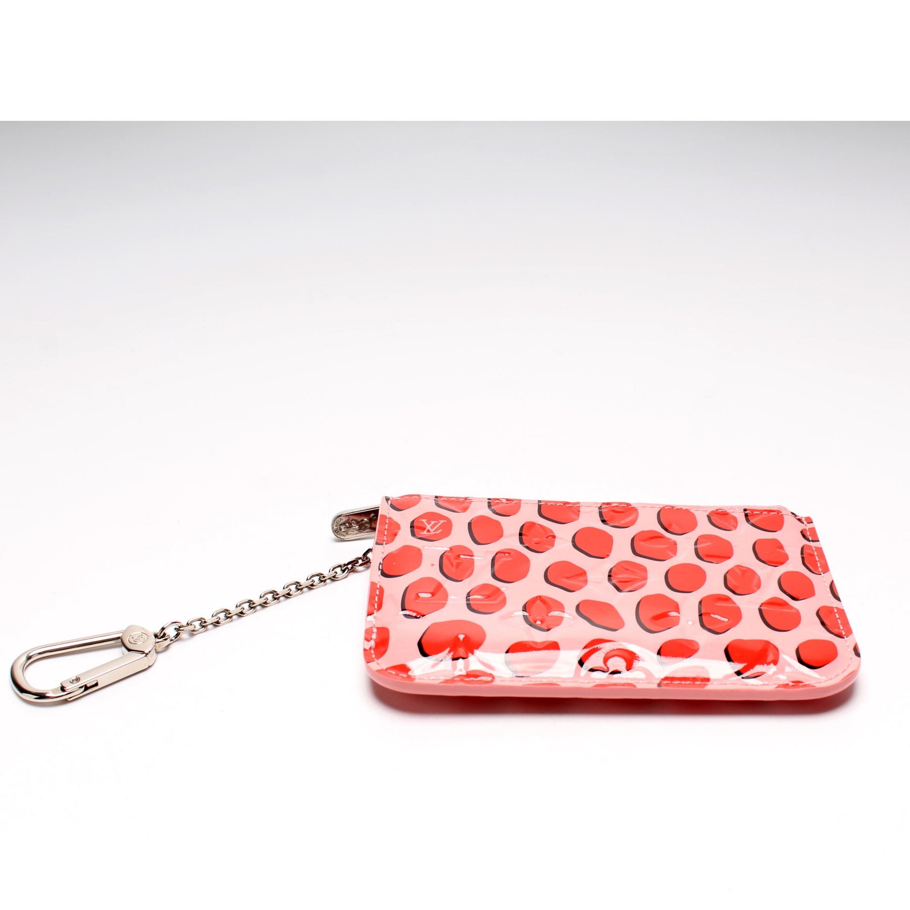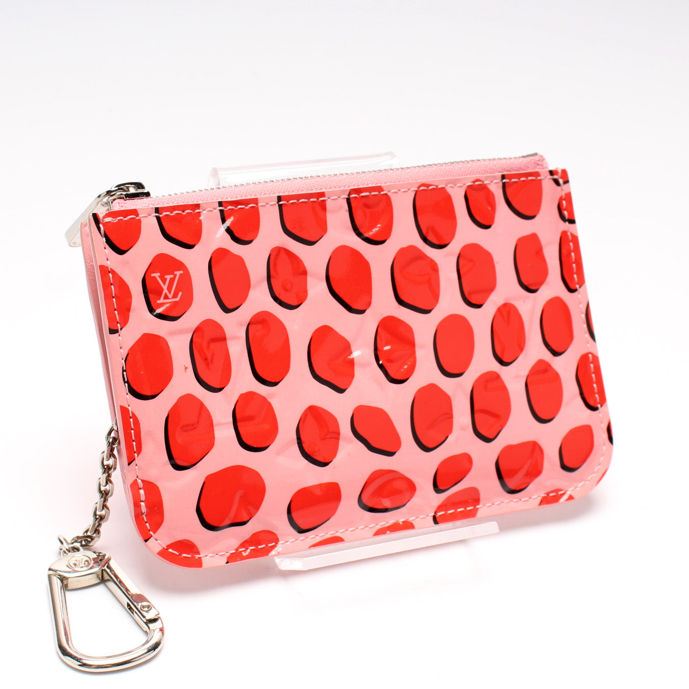 This pre-owned Louis Vuitton Key Pouch is guaranteed 100% authentic. The exterior is in the classic Louis Vuitton Vernis Jungle Dots leather.