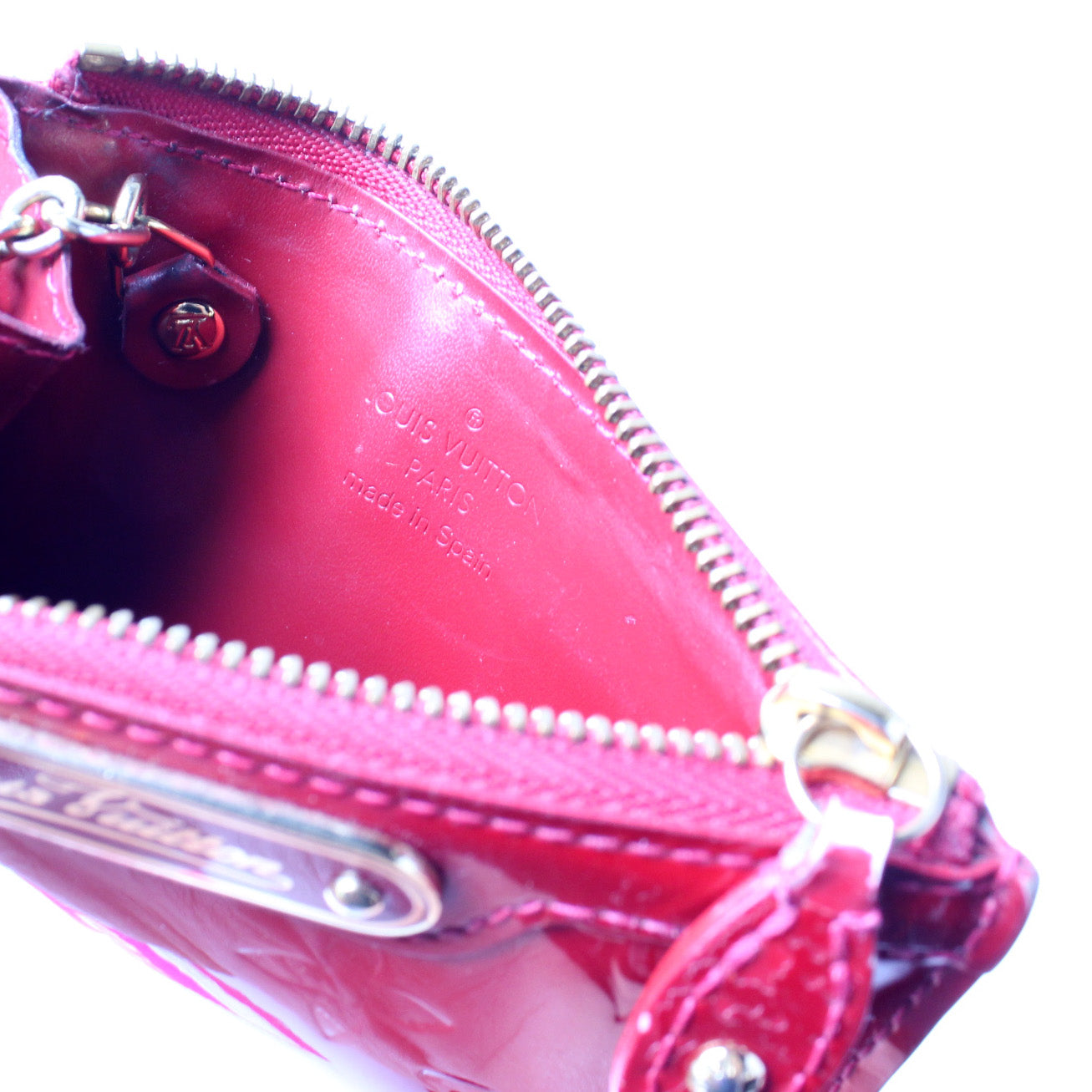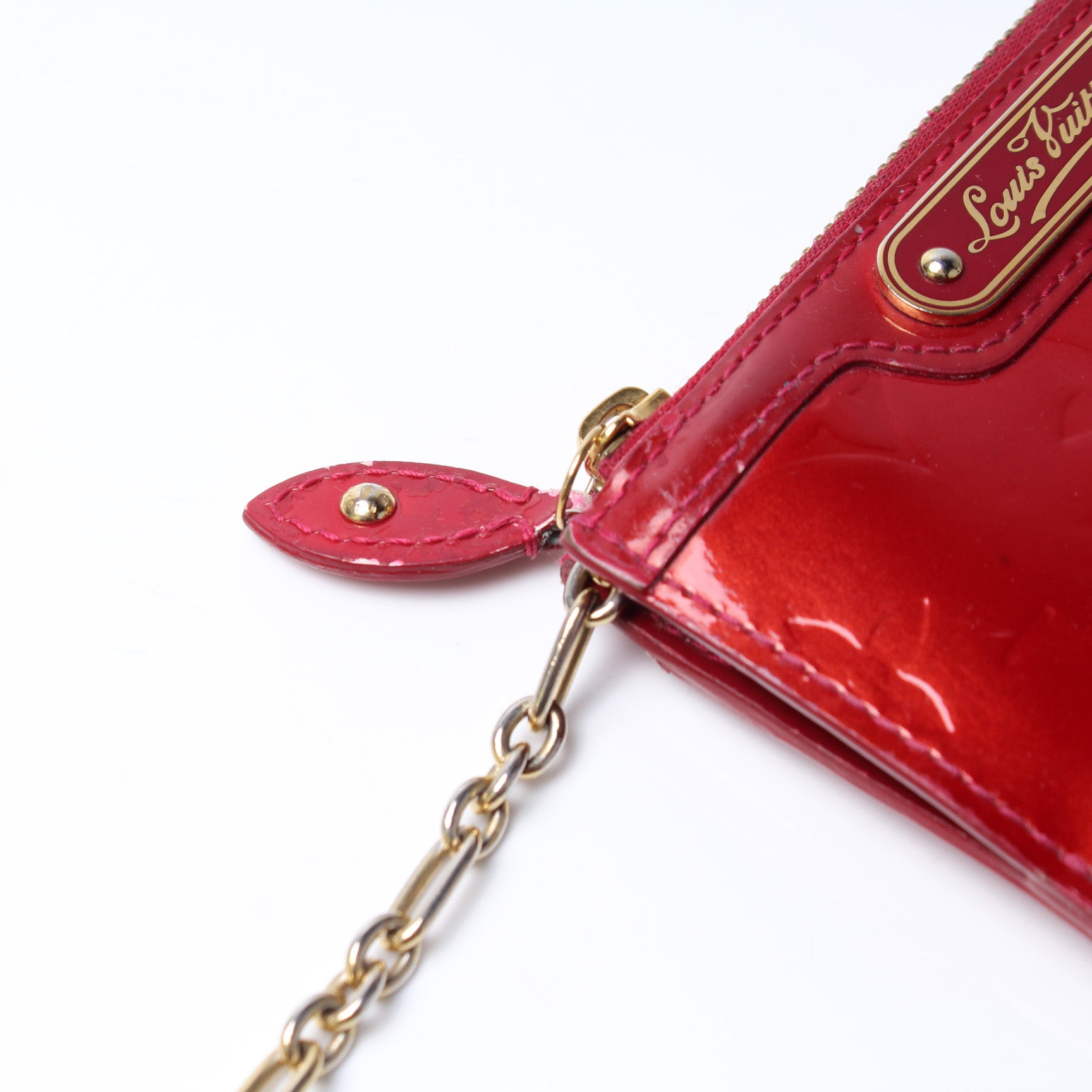 This pre-owned Louis Vuitton Key Pouch is guaranteed 100% authentic. The exterior is in the classic Louis Vuitton Vernis leather.