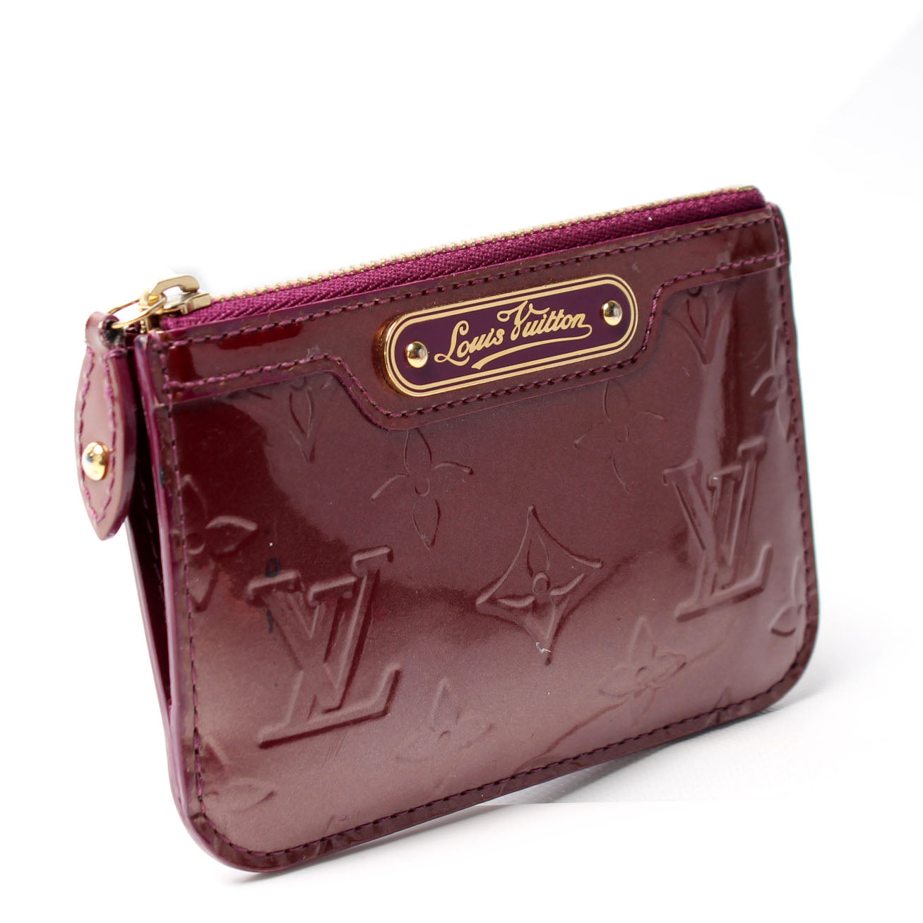 This pre-owned Louis Vuitton Key Pouch is guaranteed 100% authentic. The exterior is in the classic Louis Vuitton Vernis leather.
