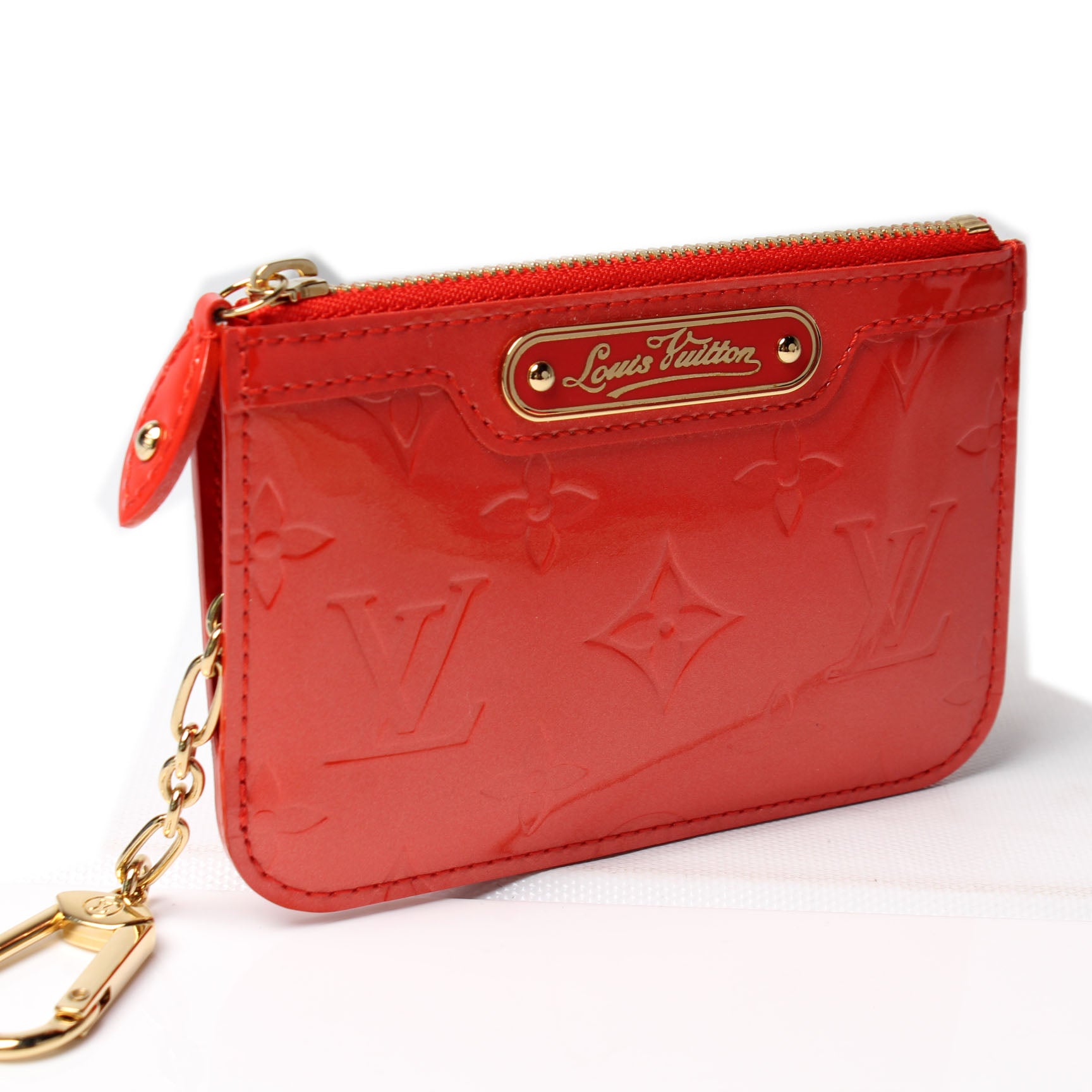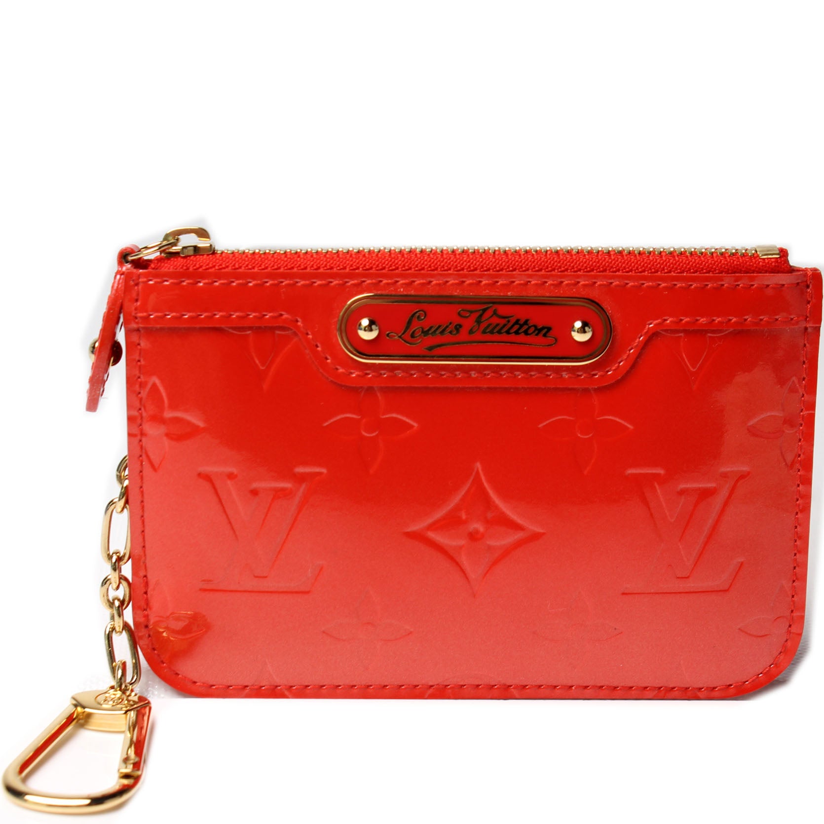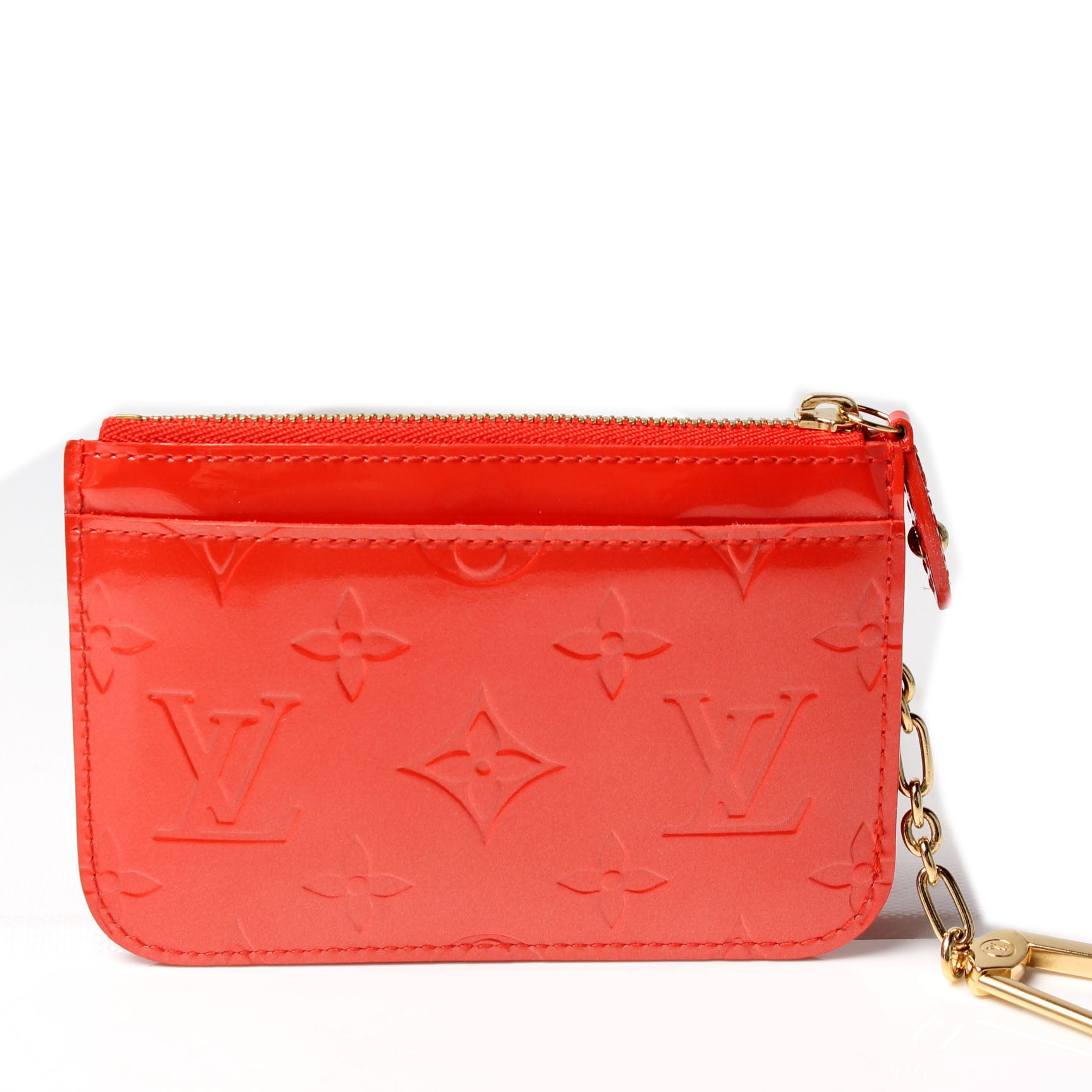 This pre-owned Louis Vuitton Key Pouch is guaranteed 100% authentic. The exterior is in the classic Louis Vuitton Vernis leather.