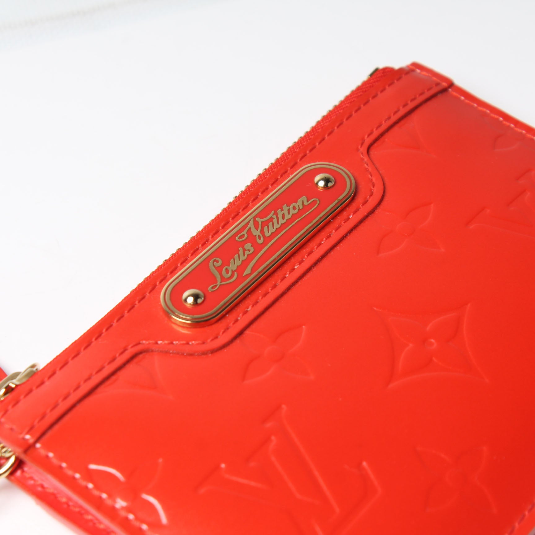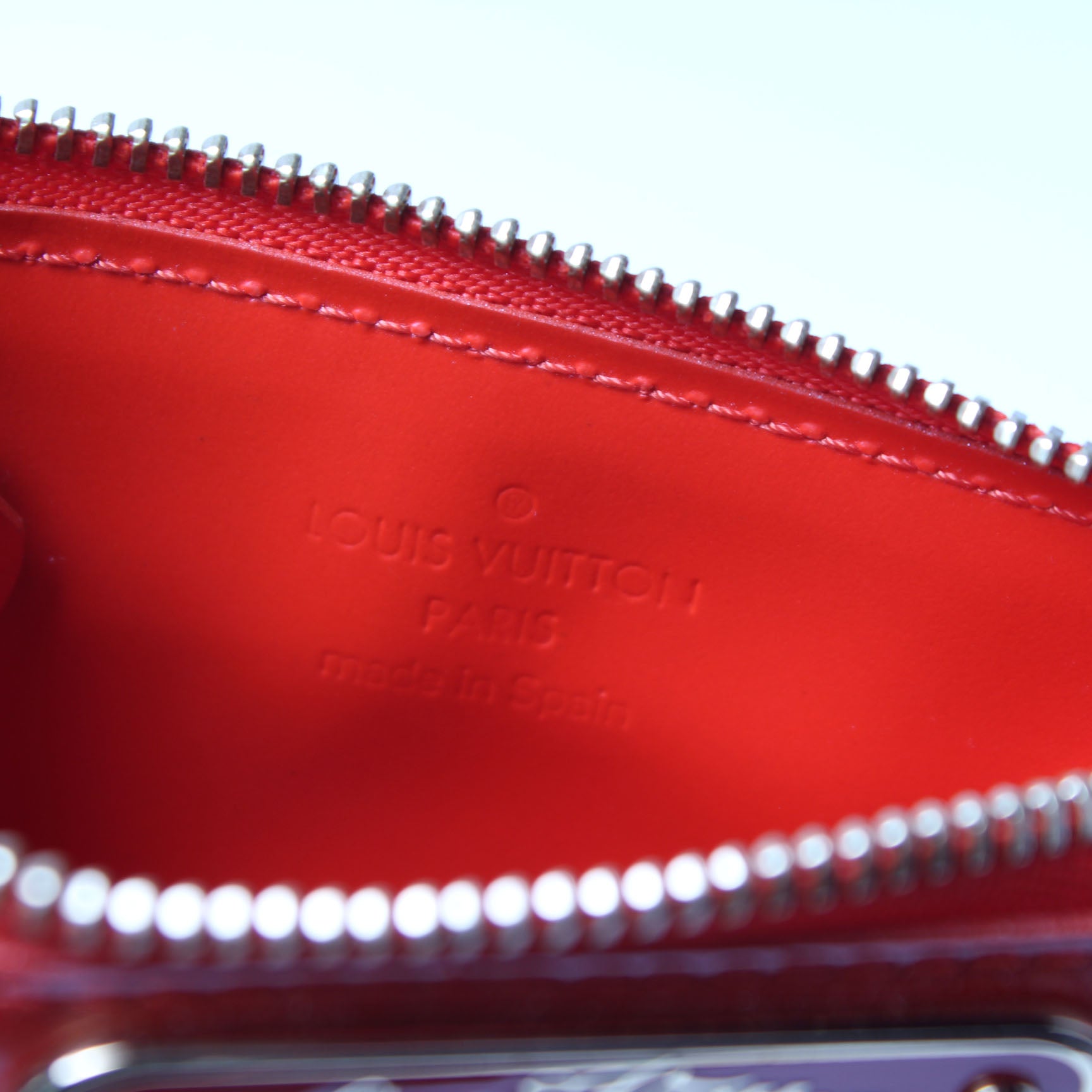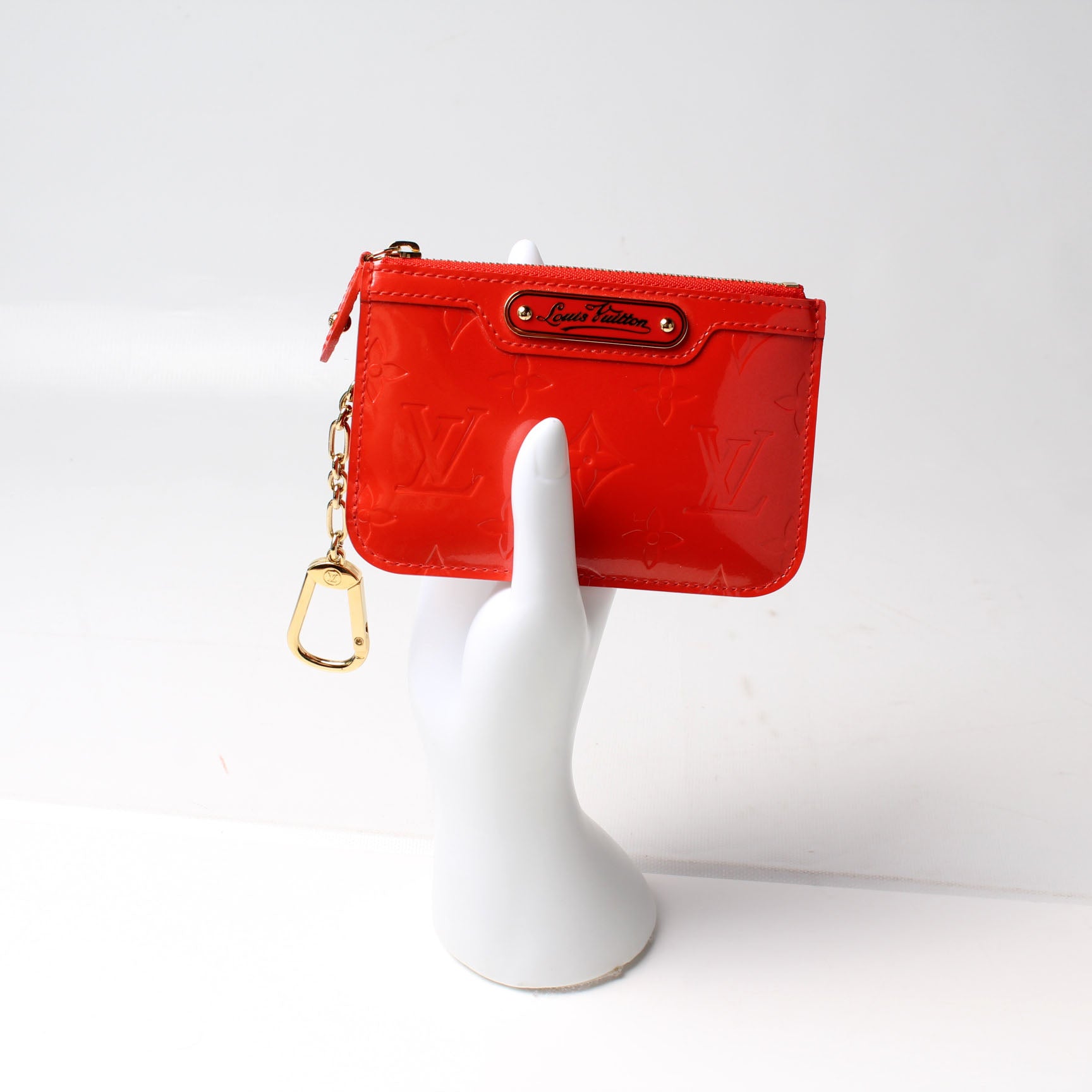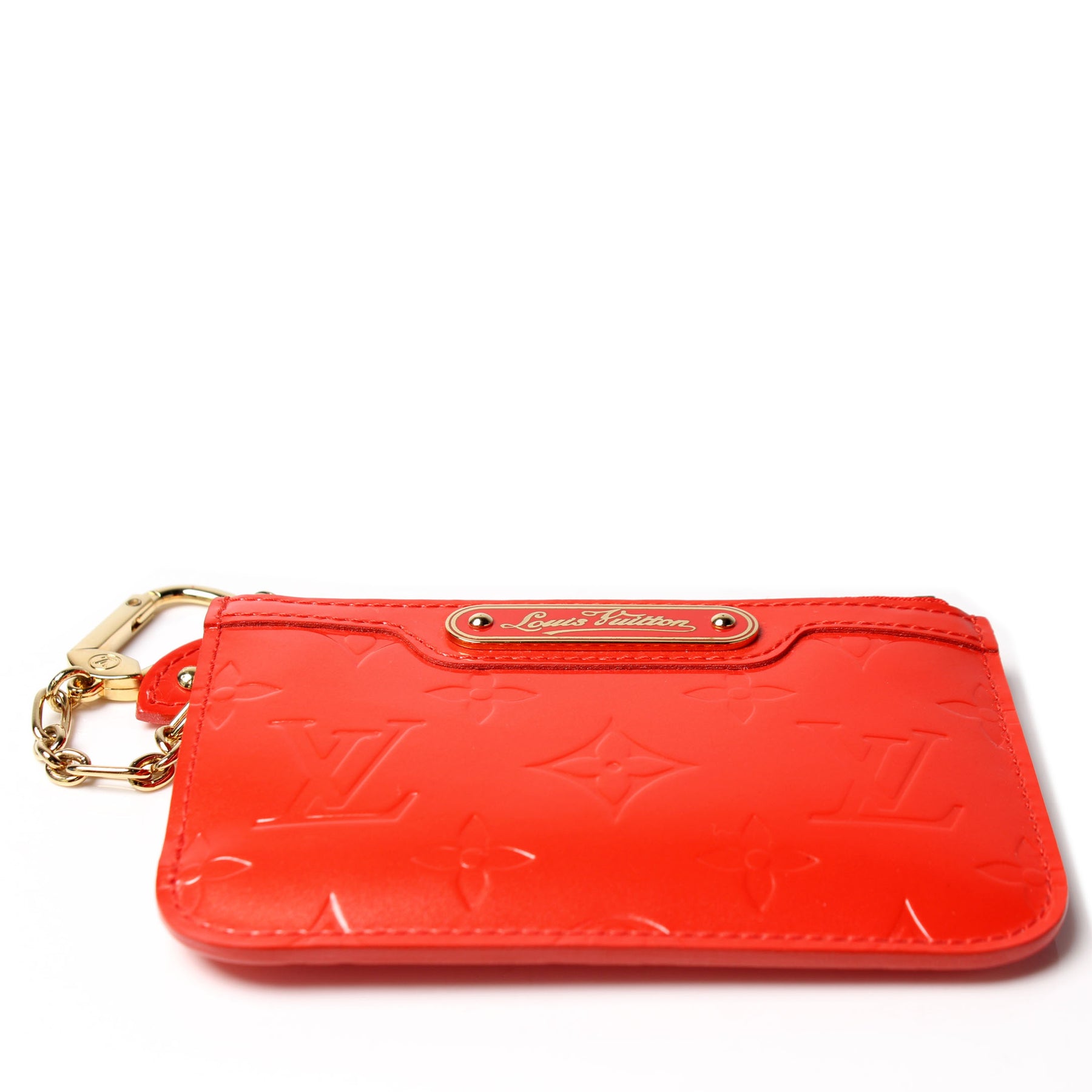 This pre-owned Louis Vuitton Key Pouch is guaranteed 100% authentic. The exterior is in the classic Louis Vuitton Vernis leather.
