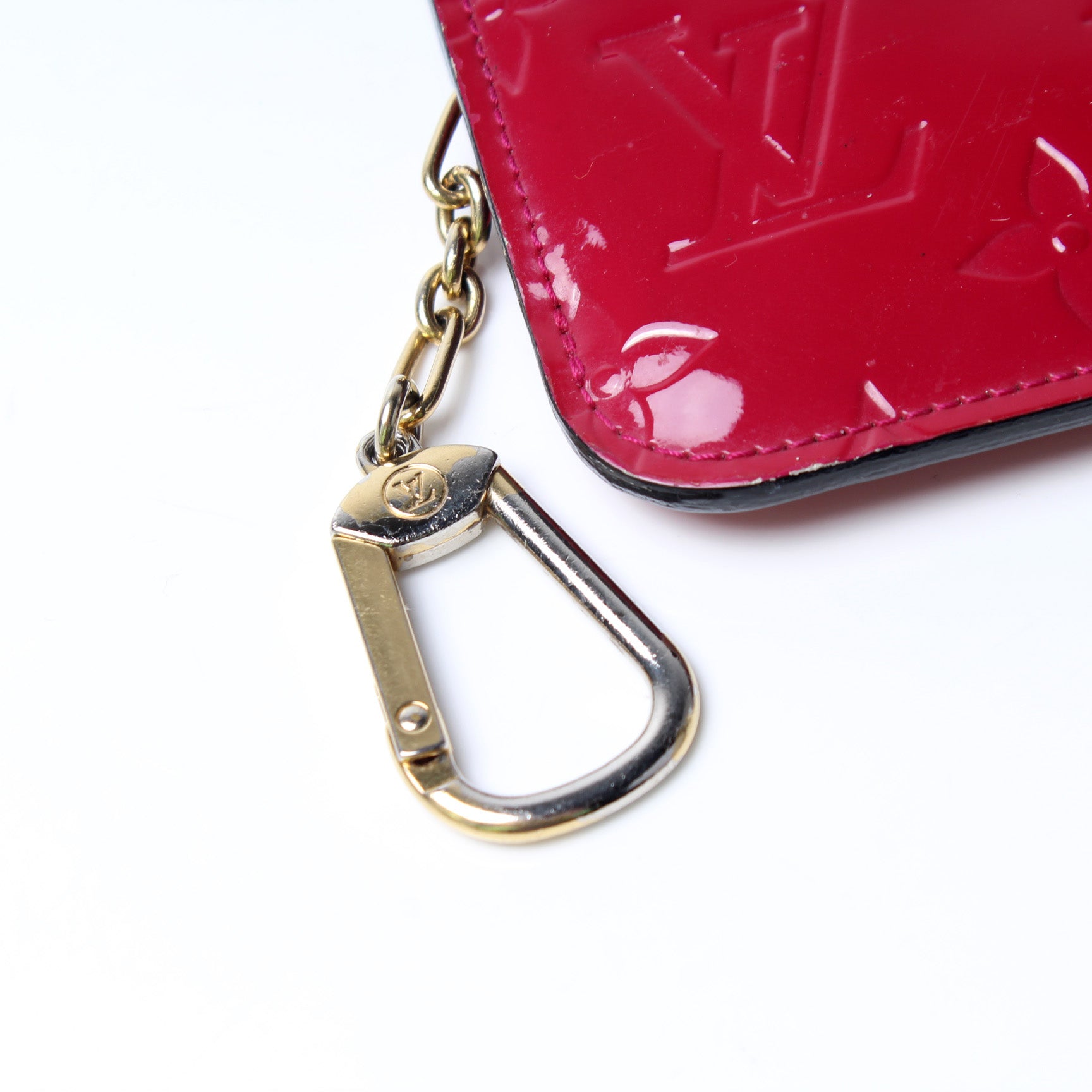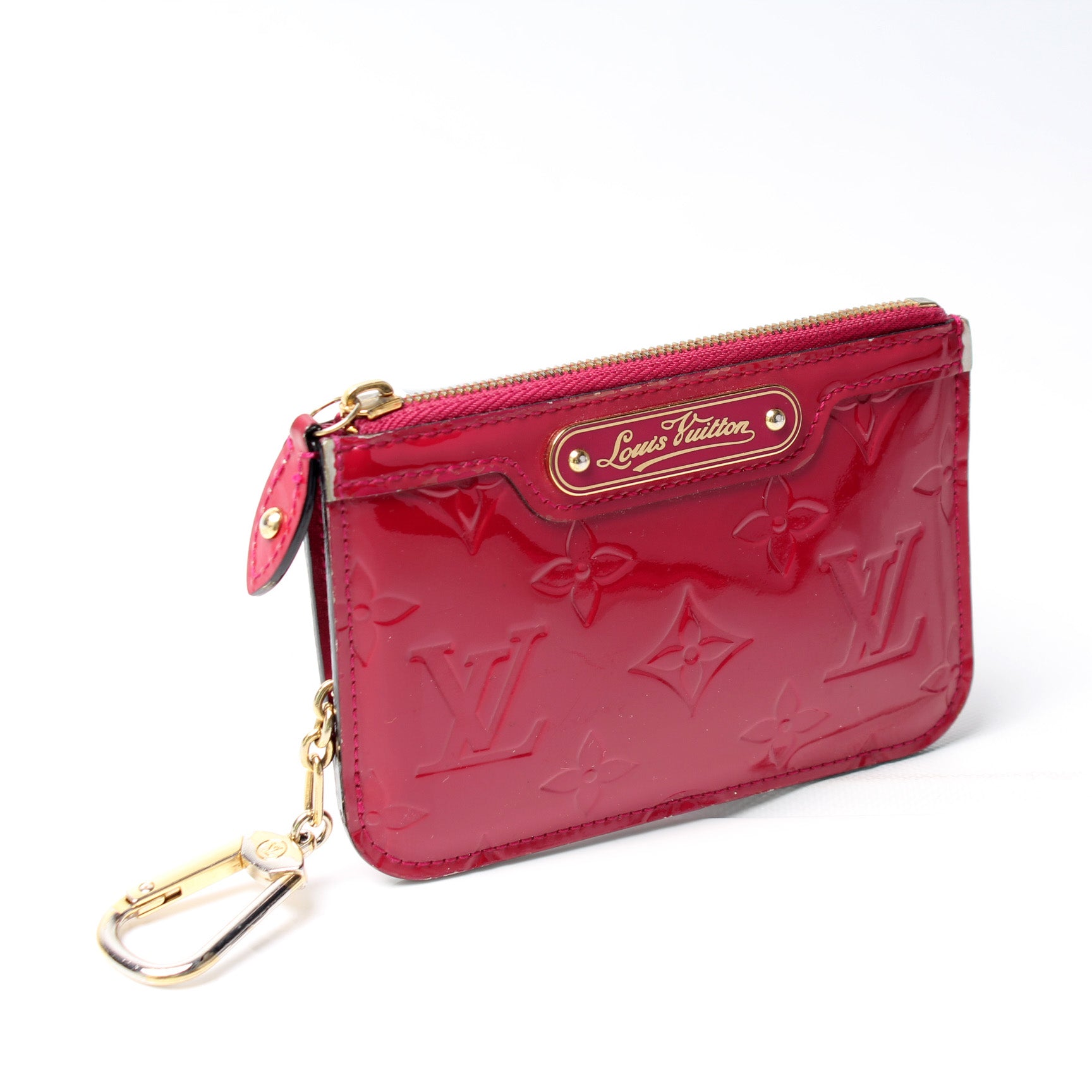 This pre-owned Louis Vuitton Key Pouch is guaranteed 100% authentic. The exterior is in the classic Louis Vuitton Vernis leather.
