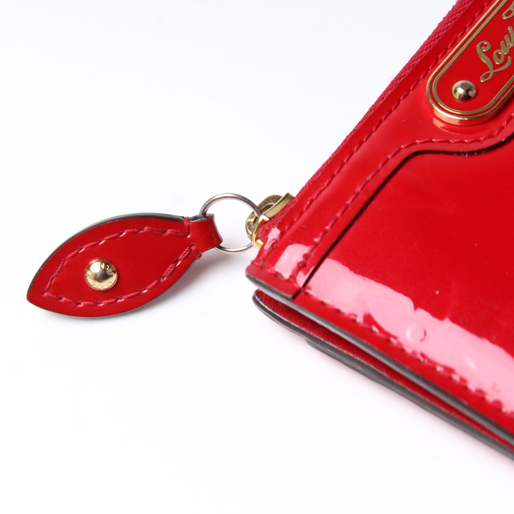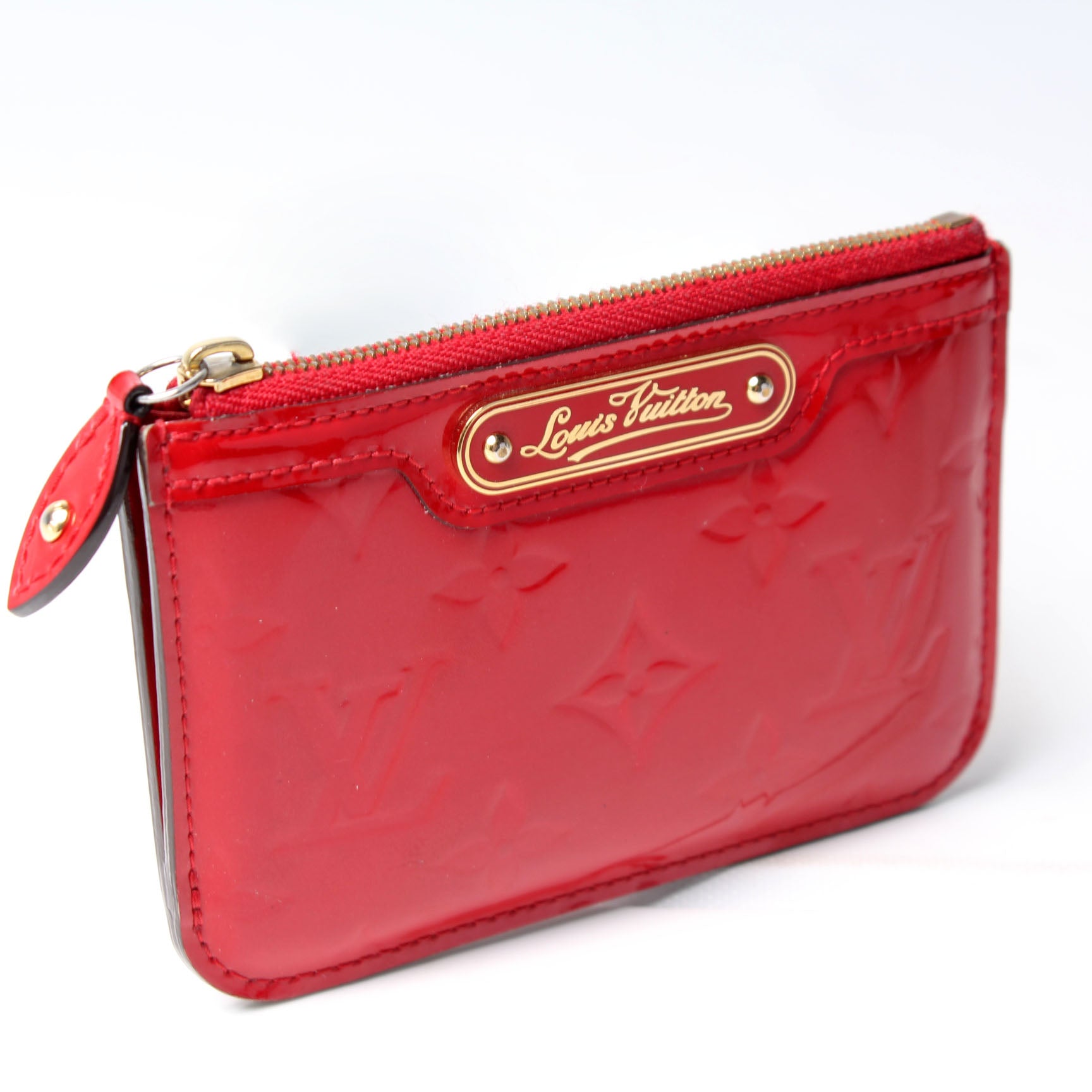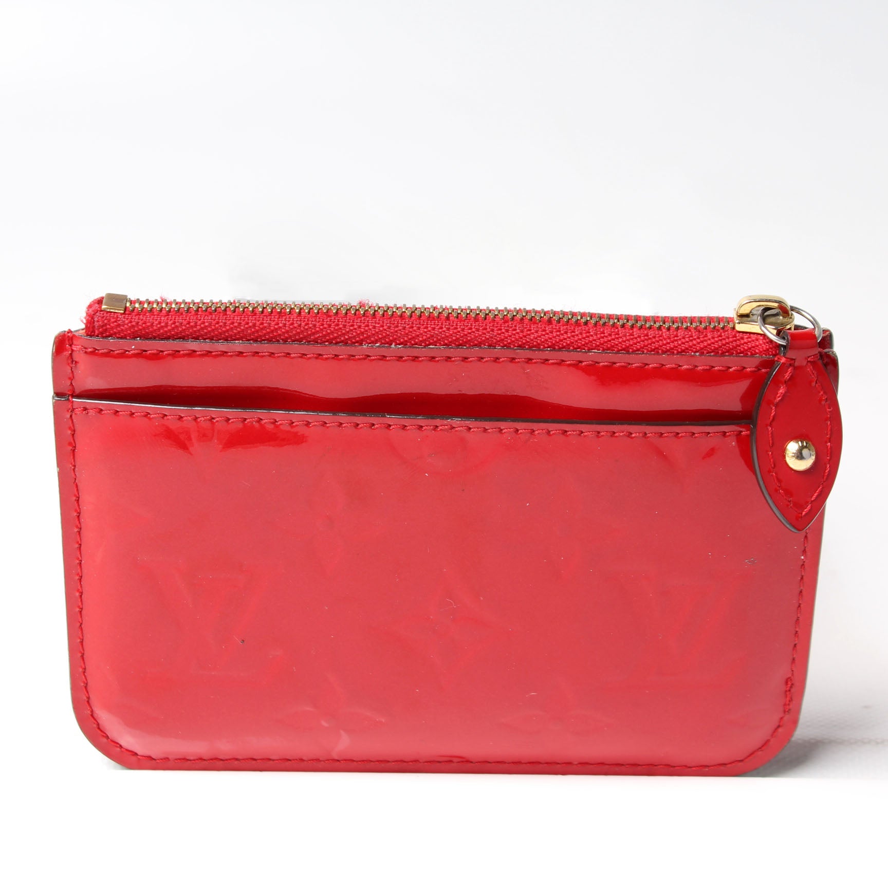 This pre-owned Louis Vuitton Key Pouch is guaranteed 100% authentic. The exterior is in the classic Louis Vuitton Vernis leather.