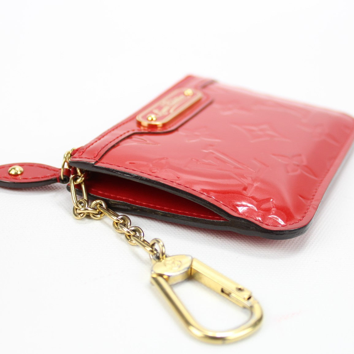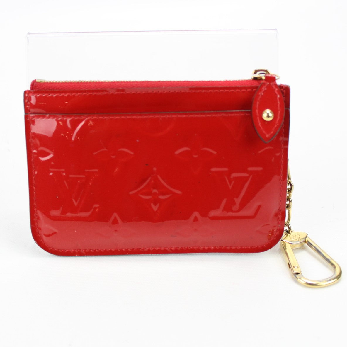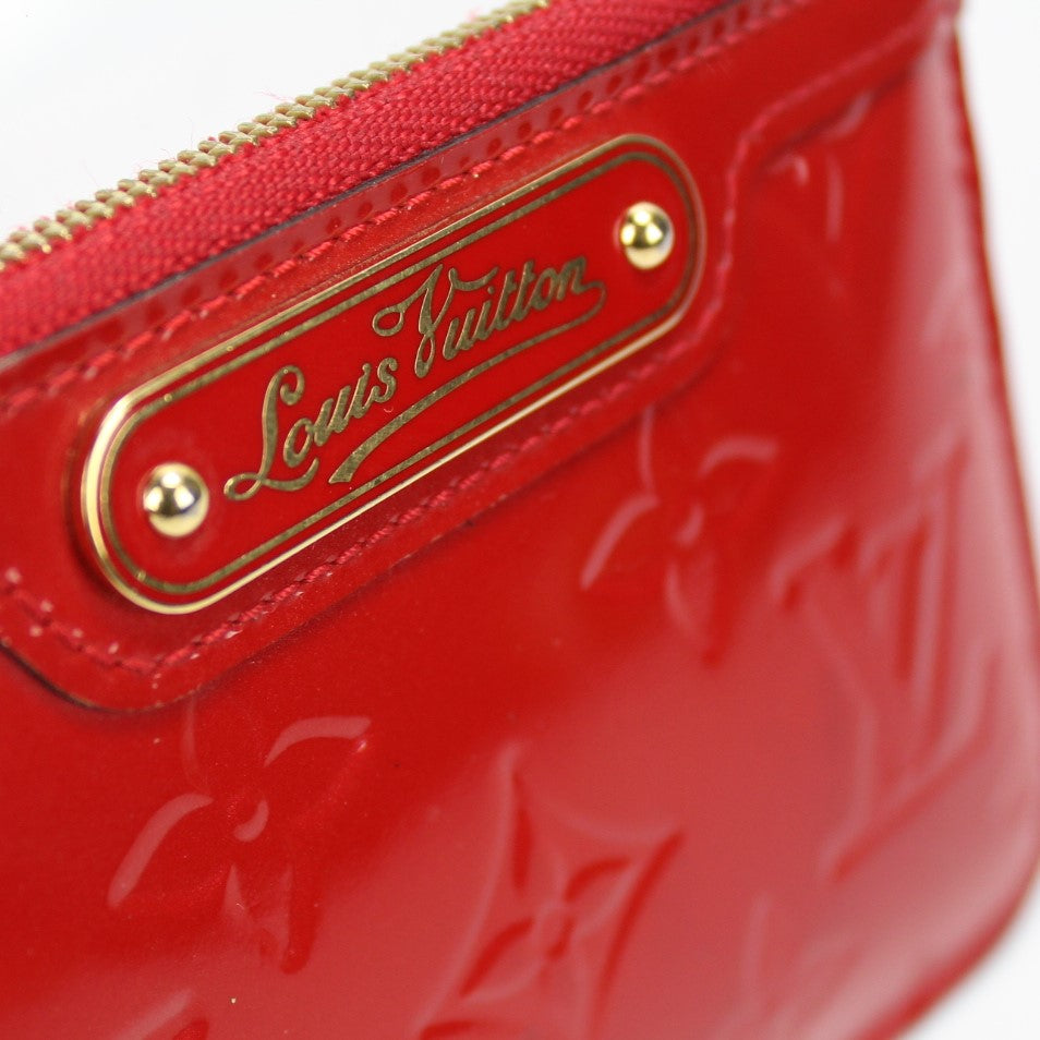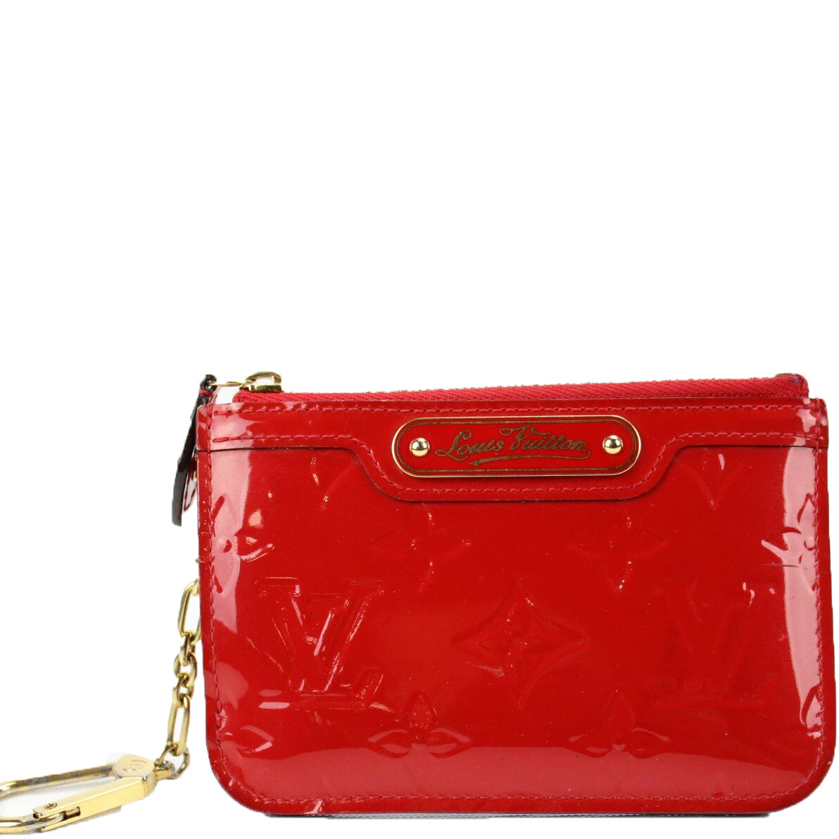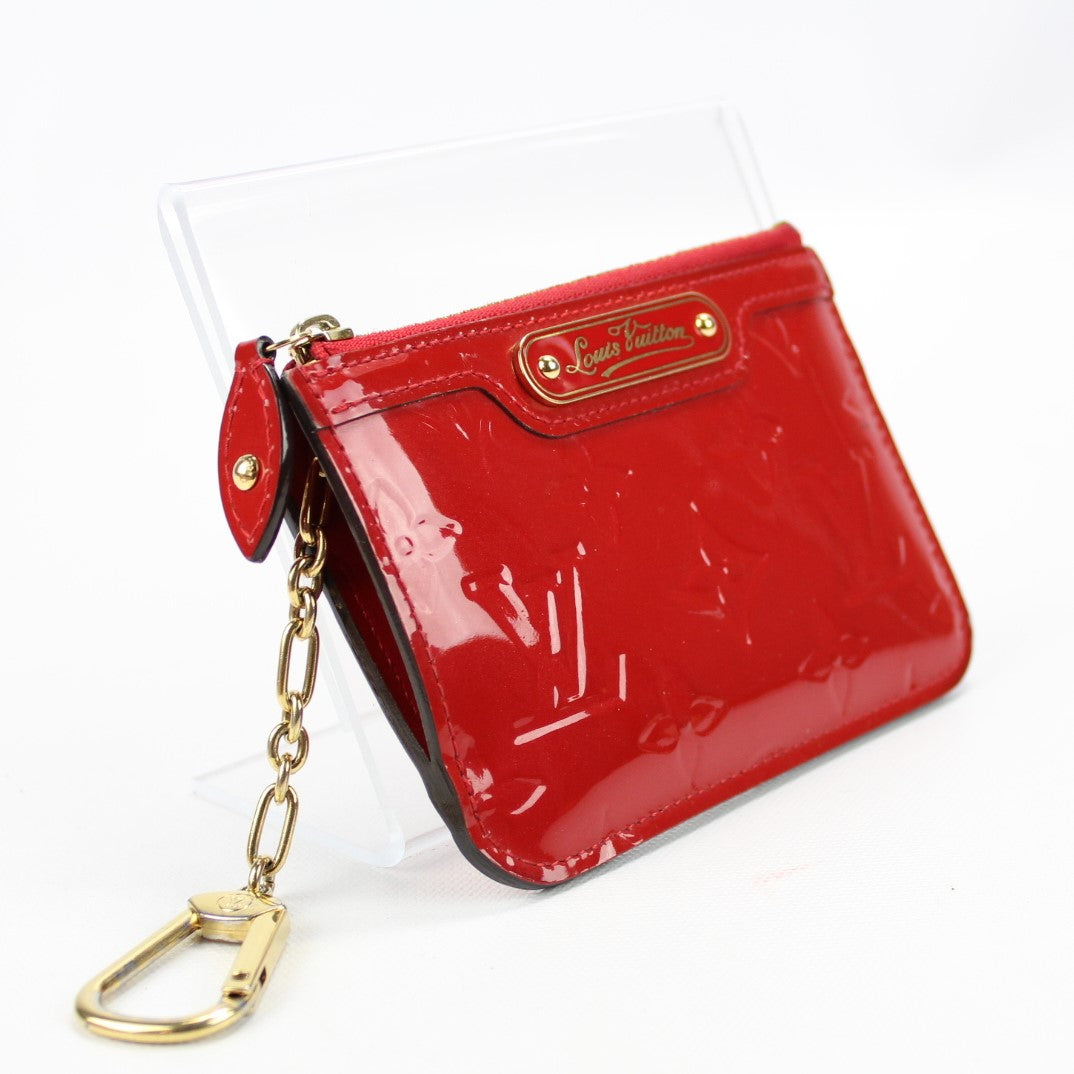 This pre-owned Louis Vuitton Key Pouch is guaranteed 100% authentic. The exterior is in the classic Vernis Patent Leather.