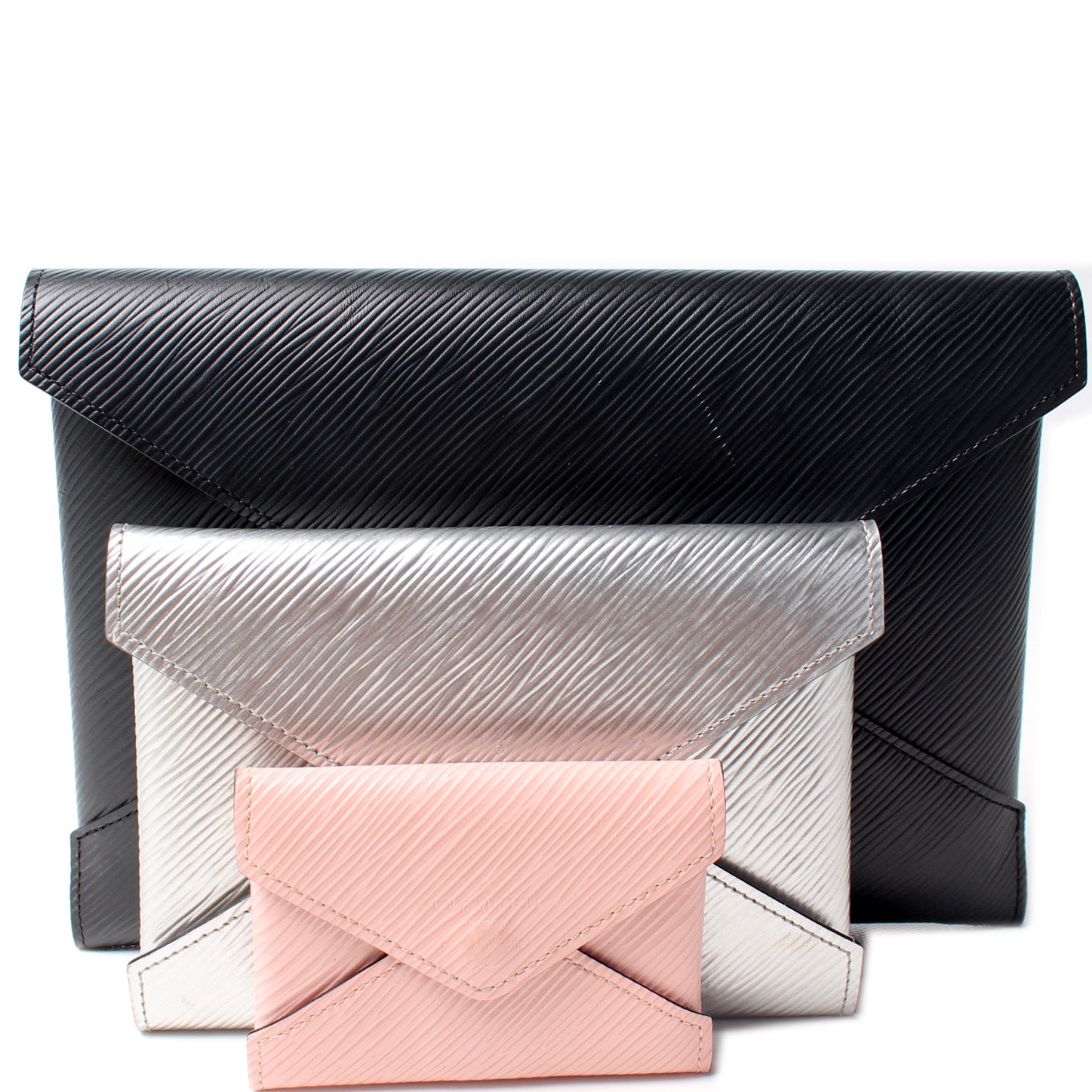 This pre-owned Louis Vuitton Pochette Kirigami 3 Piece is guaranteed 100% authentic. The exterior is in the classic Louis Vuitton Epi leather.