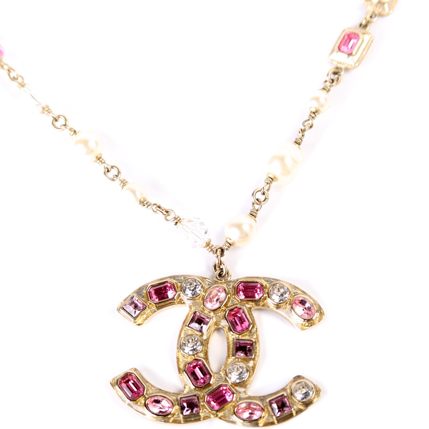 This pre-owned Chanel Large Rhinestone CC Necklace is guaranteed 100% authentic.