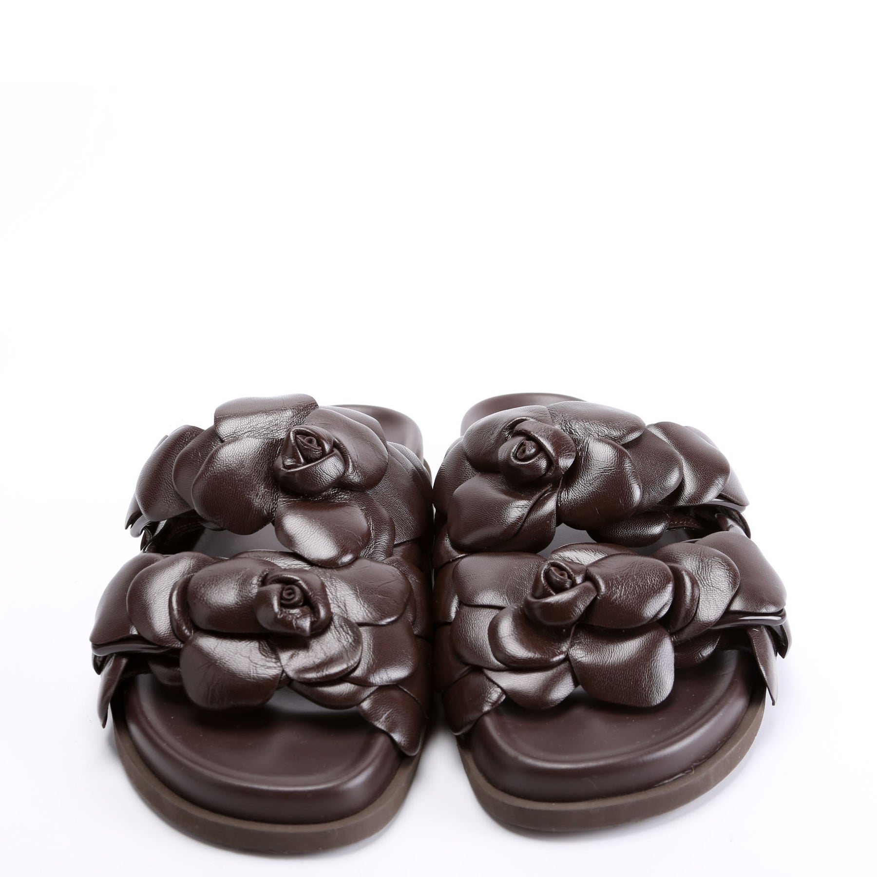 Leather Rose Edition Mule Sandals Size 36.5 Brown
