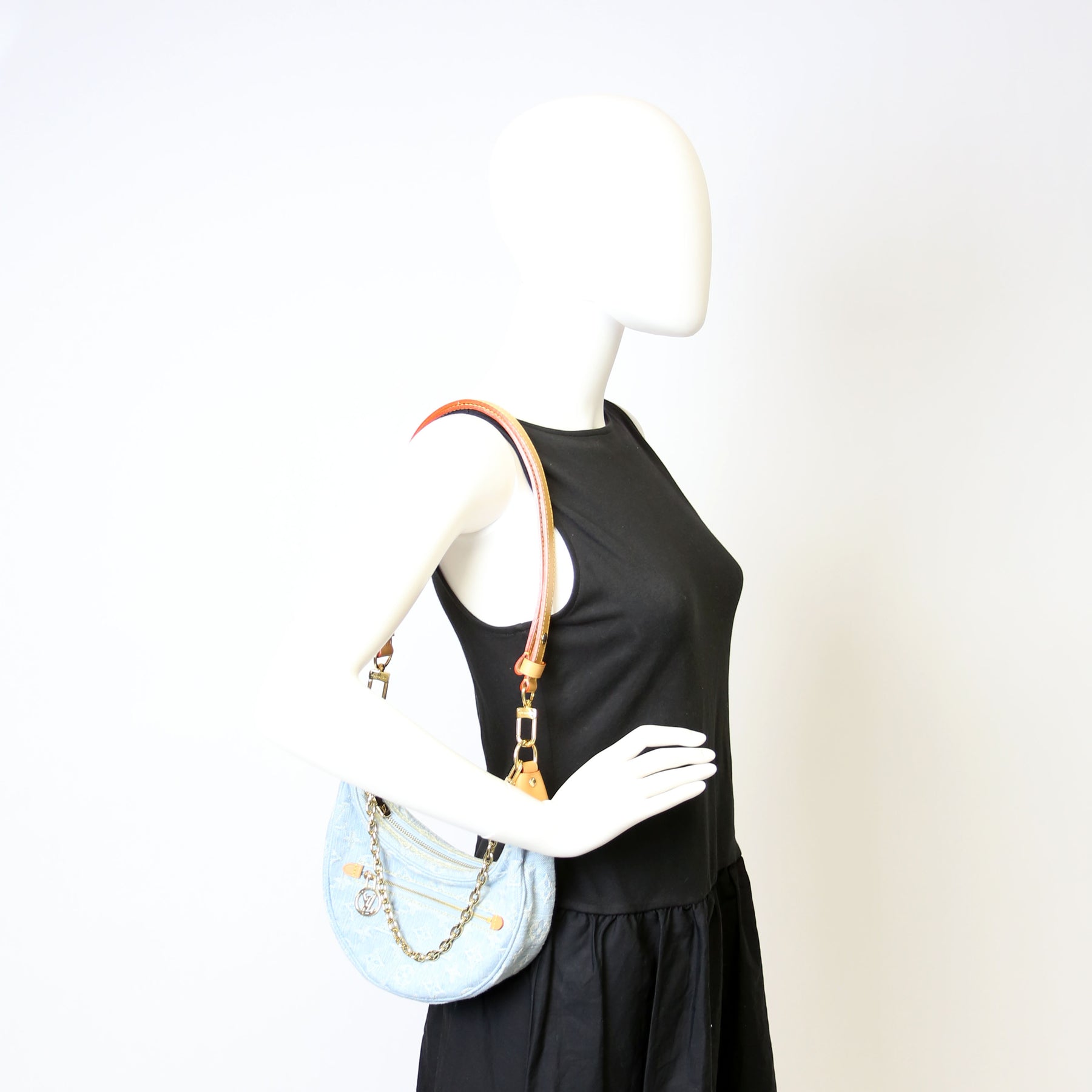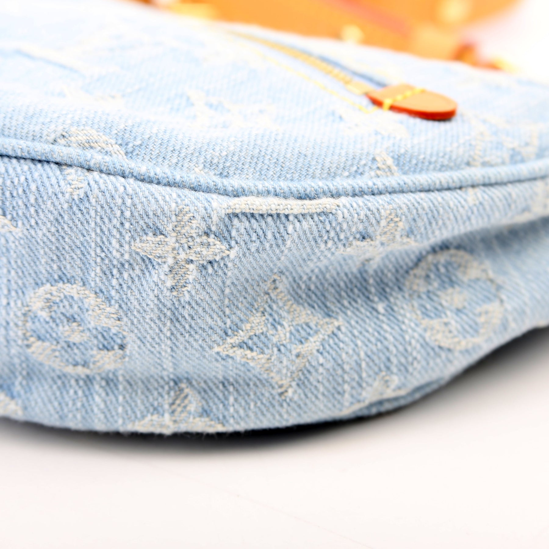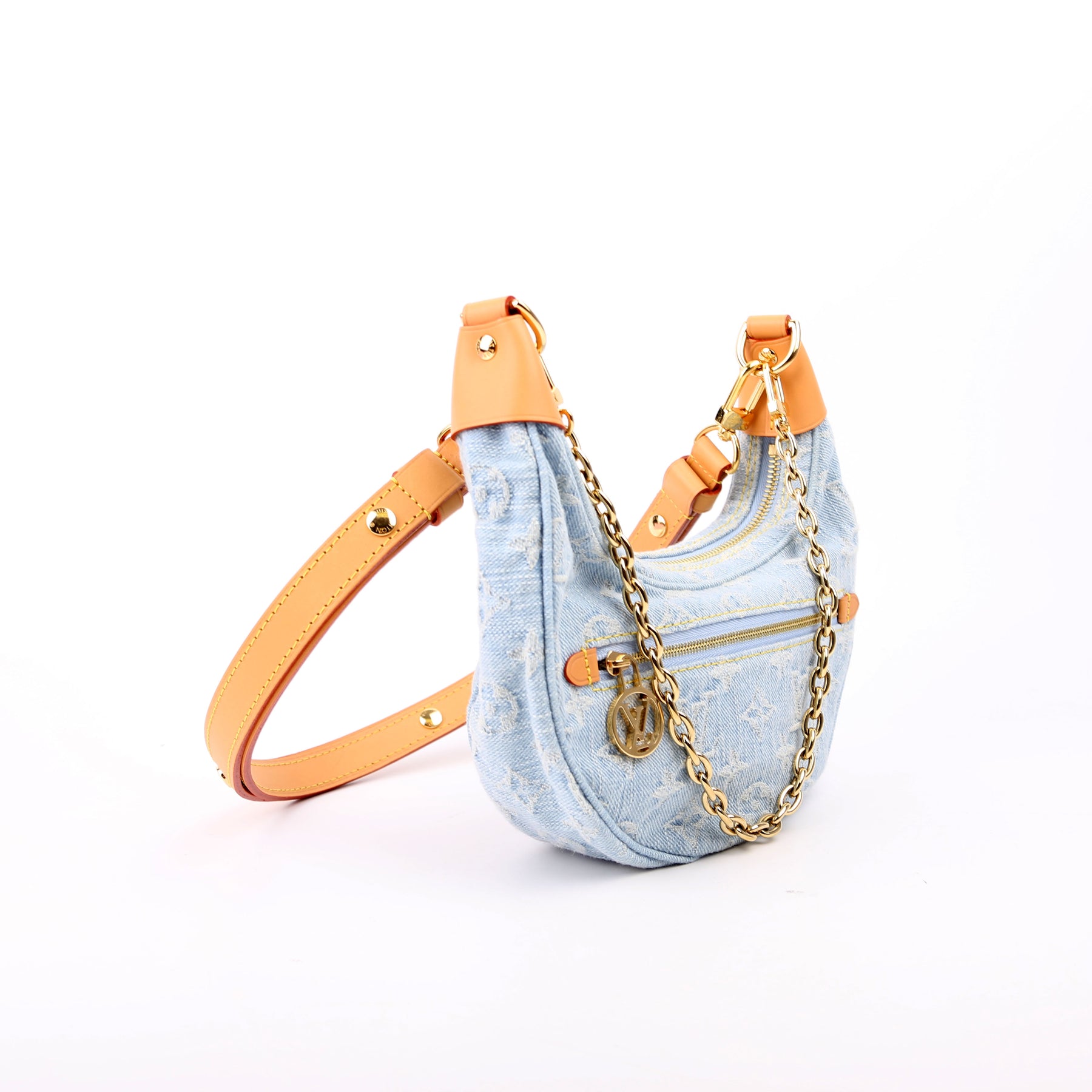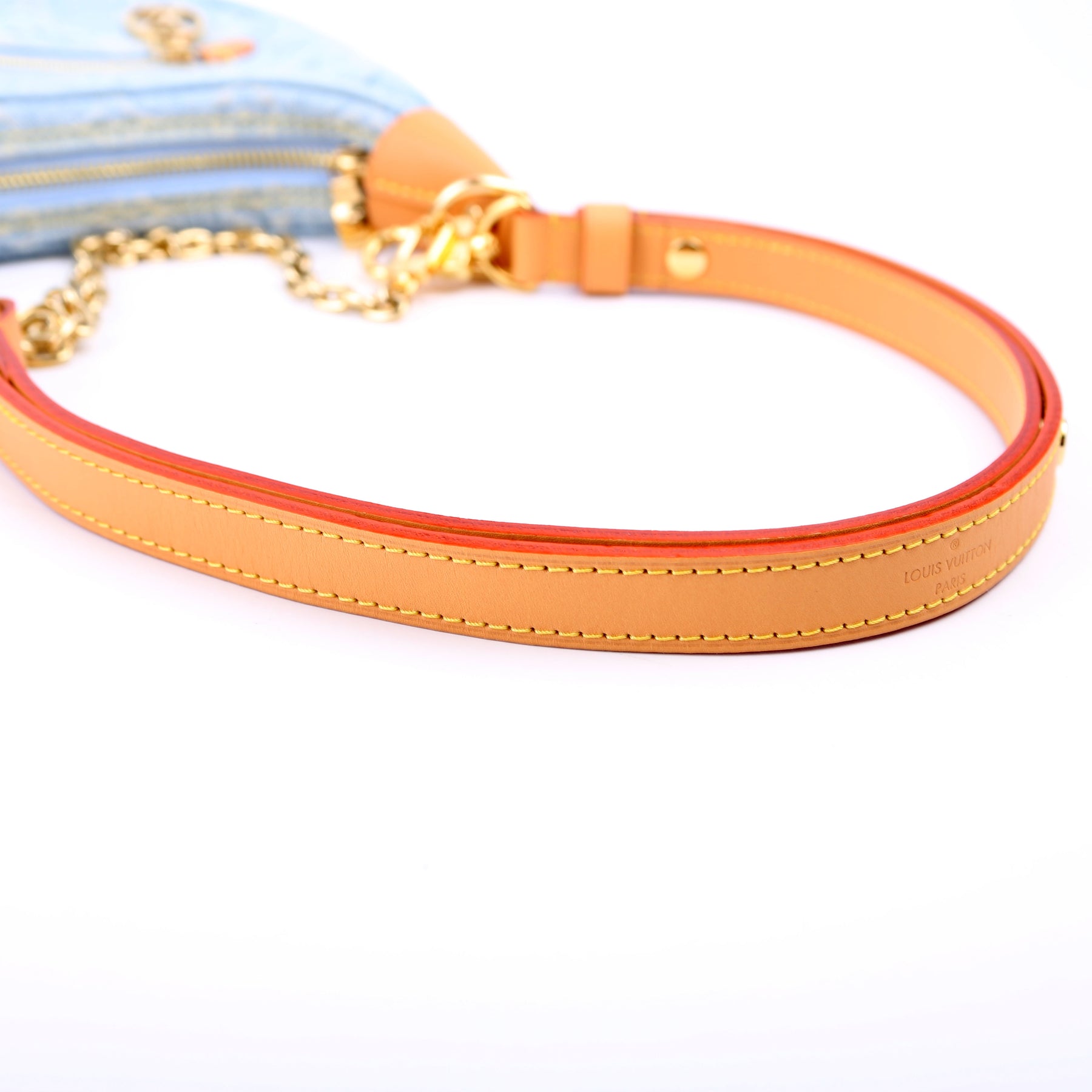 This pre-owned Louis Vuitton Loop is guaranteed 100% authentic. The exterior is in the classic Louis Vuitton Denim monogram canvas.