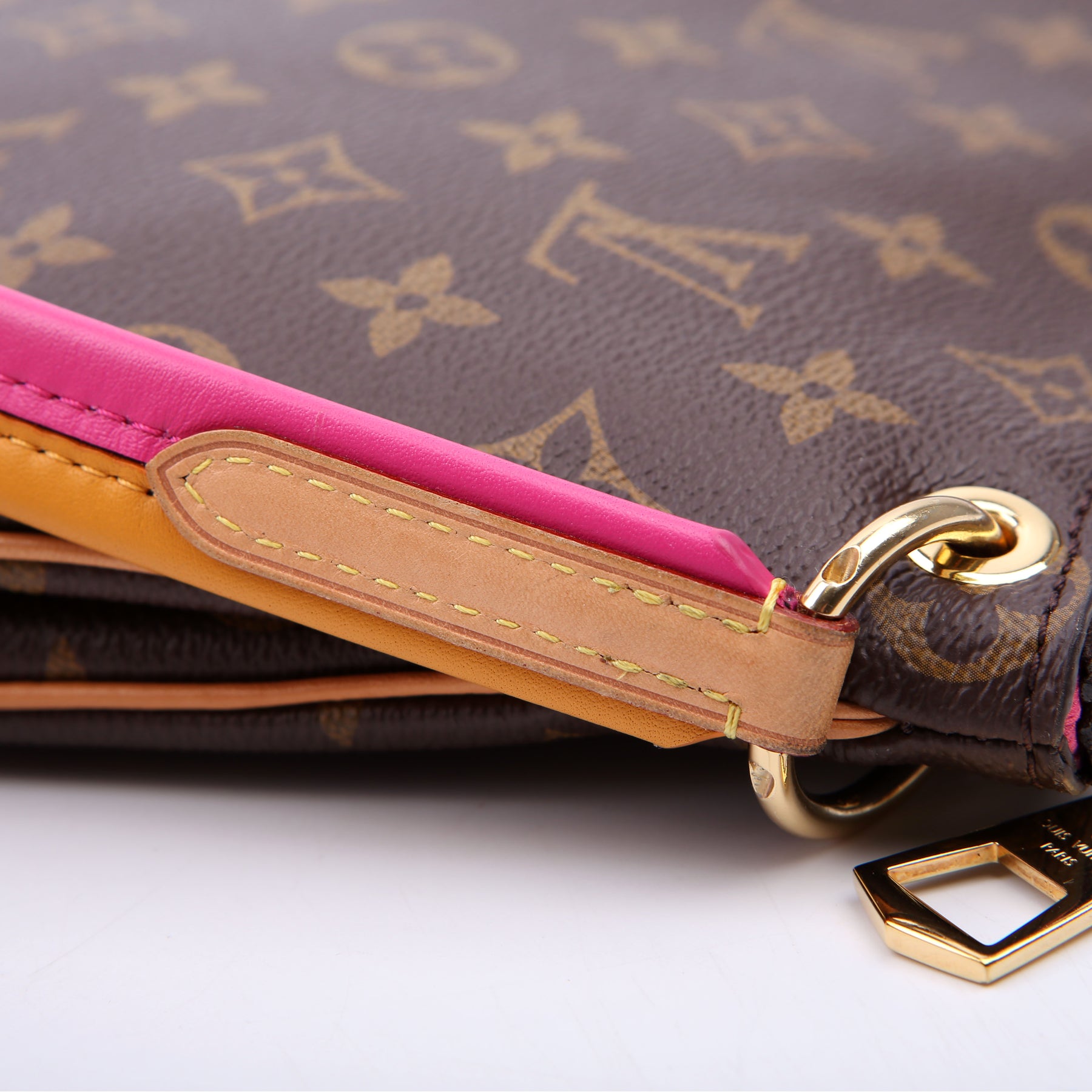 This pre-owned Louis Vuitton Lorette is guaranteed 100% authentic. The exterior is in the classic Louis Vuitton Monogram coated canvas.