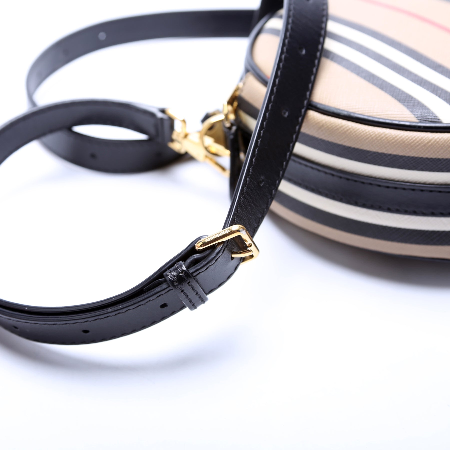 This pre-owned Burberry Louie Icon Stripe E-Canvas Crossbody is guaranteed 100% authentic.