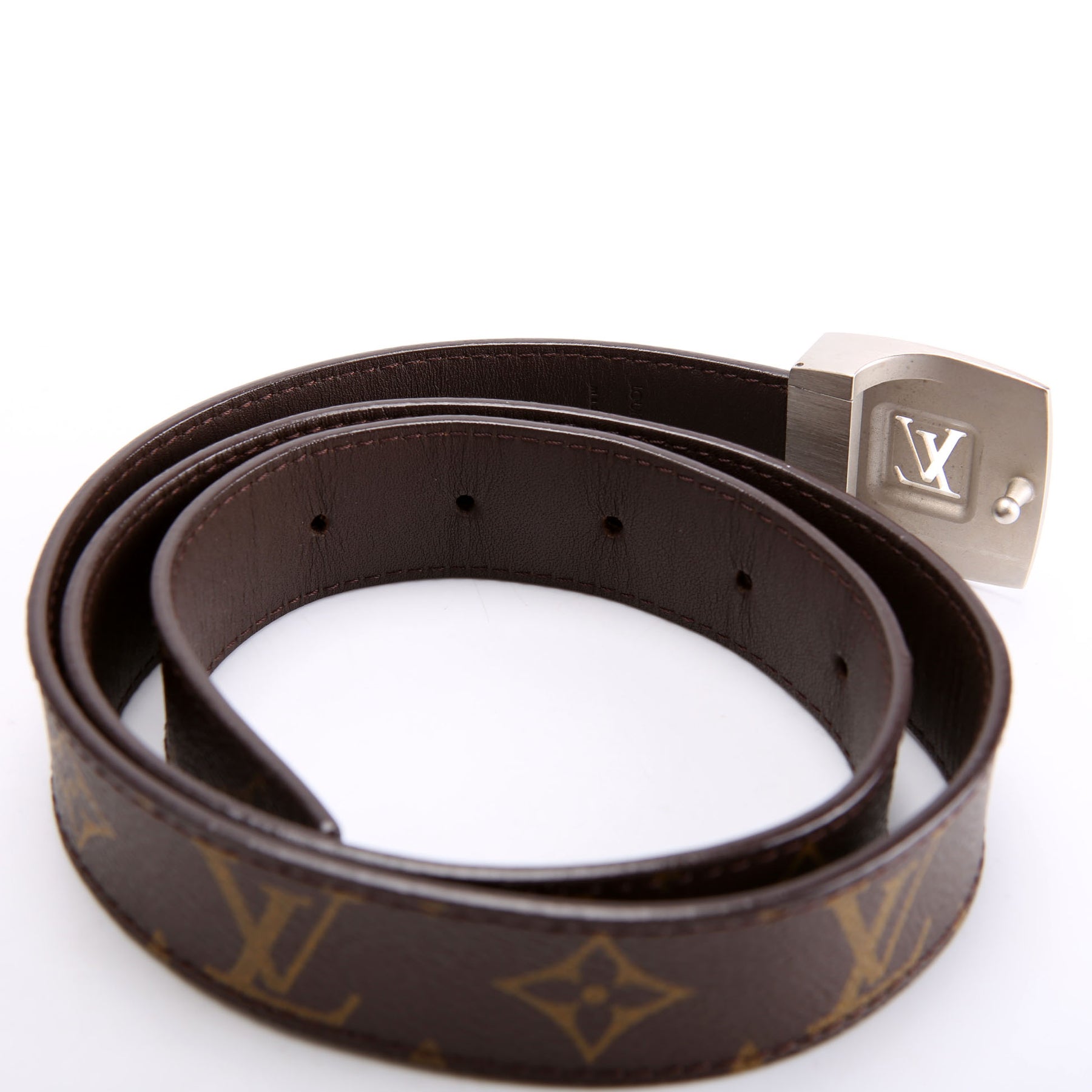 This pre-owned Louis Vuitton LV Cut Reversible Square Buckle Belt is guaranteed 100% authentic.