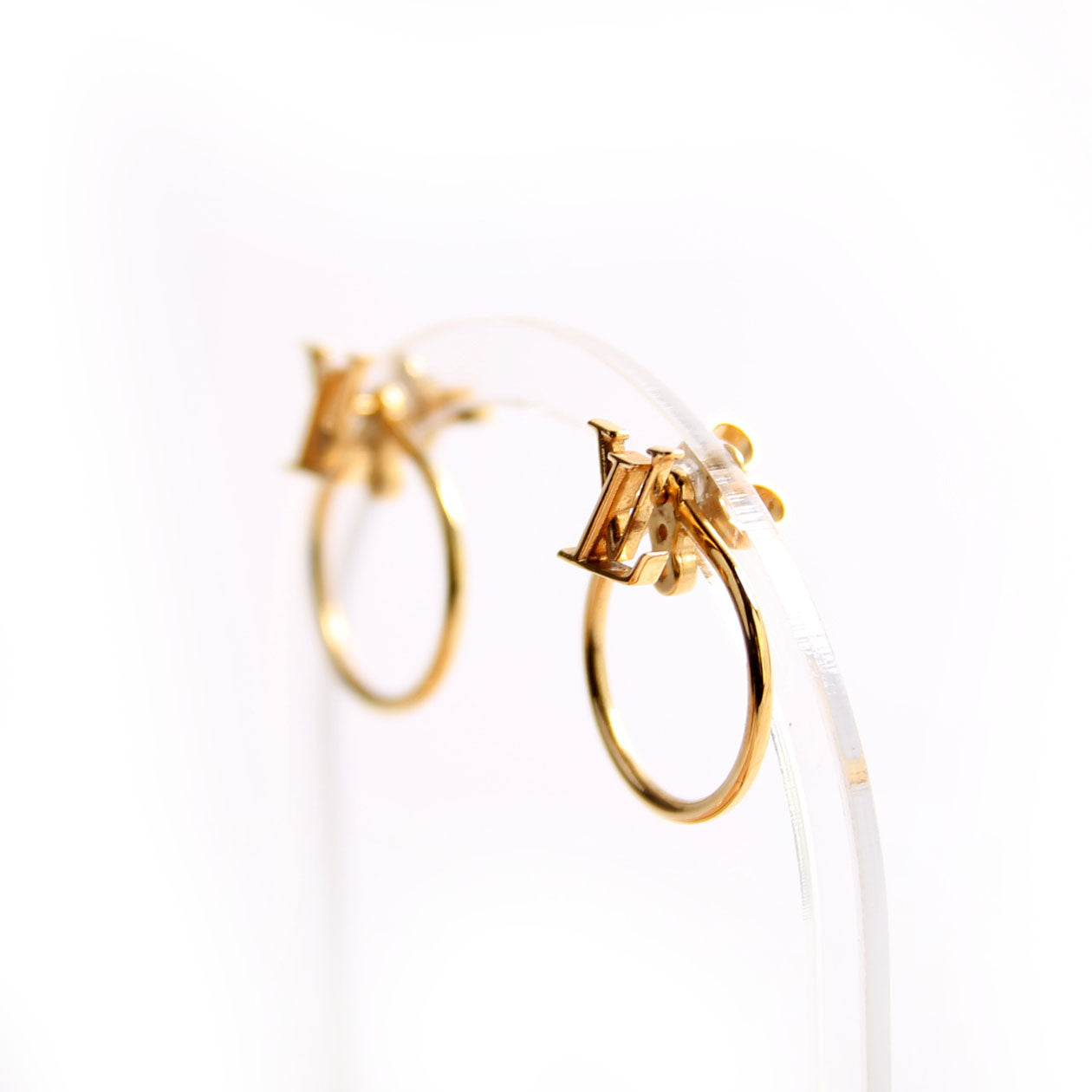 This pre-owned Louis Vuitton LV Stud Eclipse Hoop Earrings is guaranteed 100% authentic.