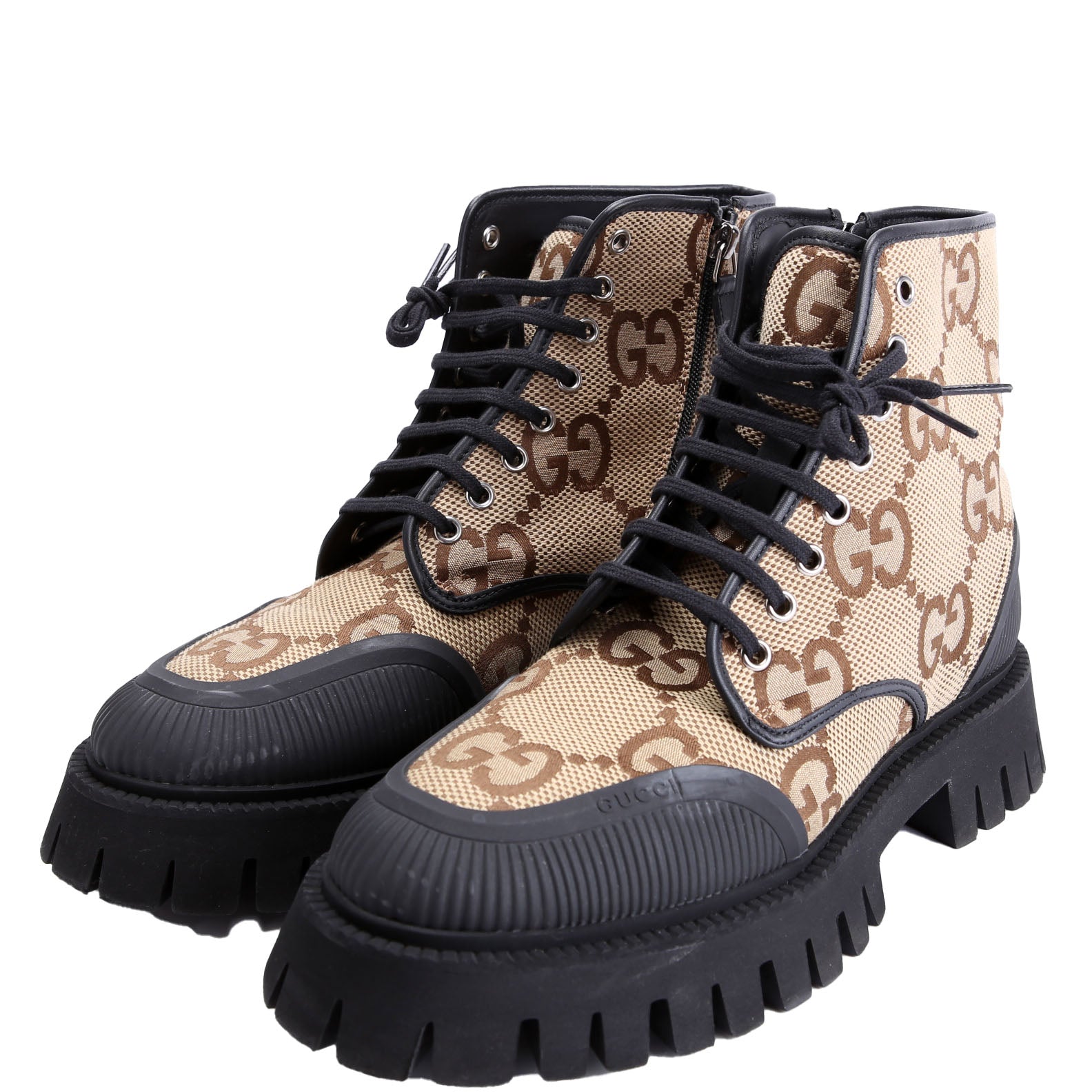 These pre-owned Gucci Maxi GG Canvas Lace Up Combat Boots Men's are guaranteed 100% authentic.
