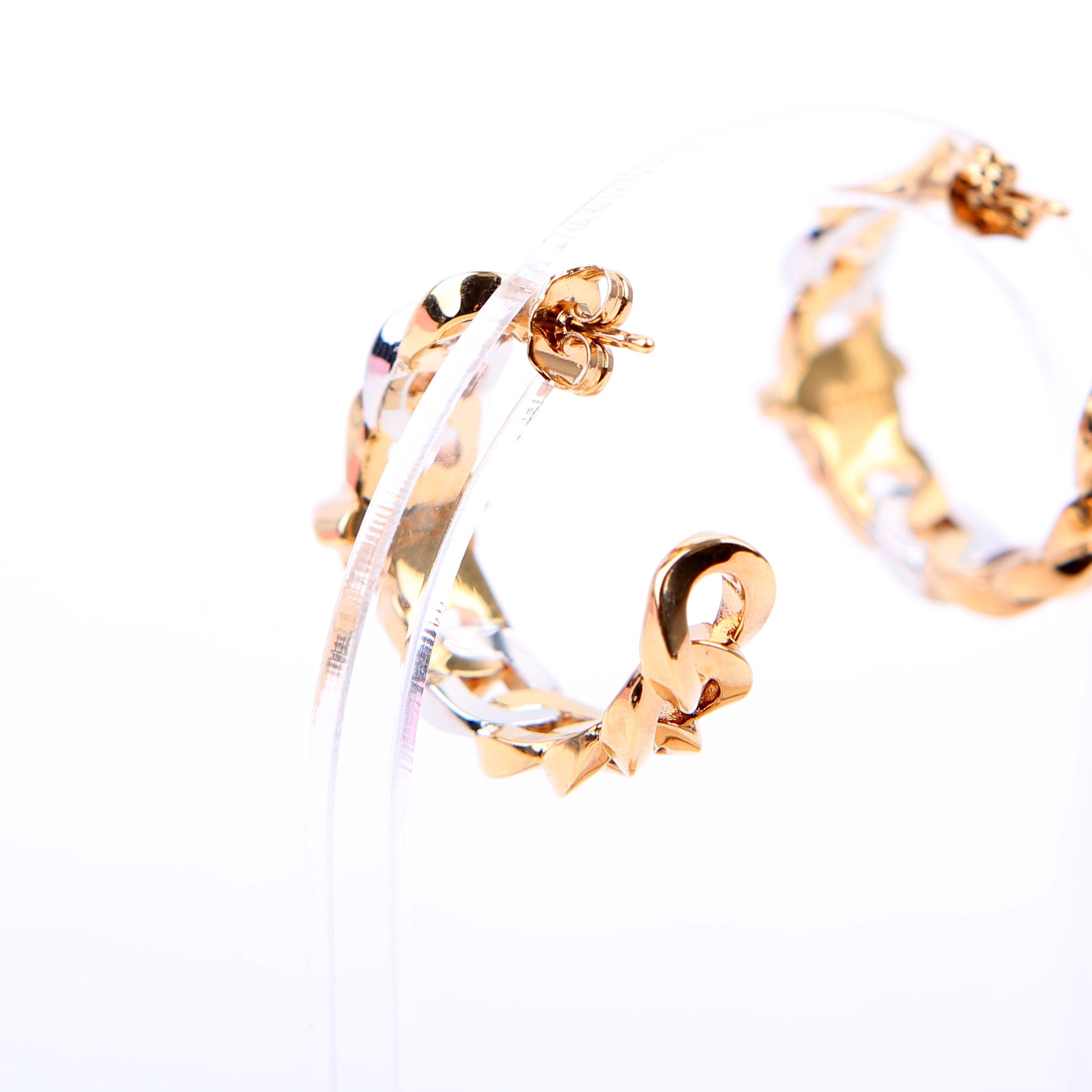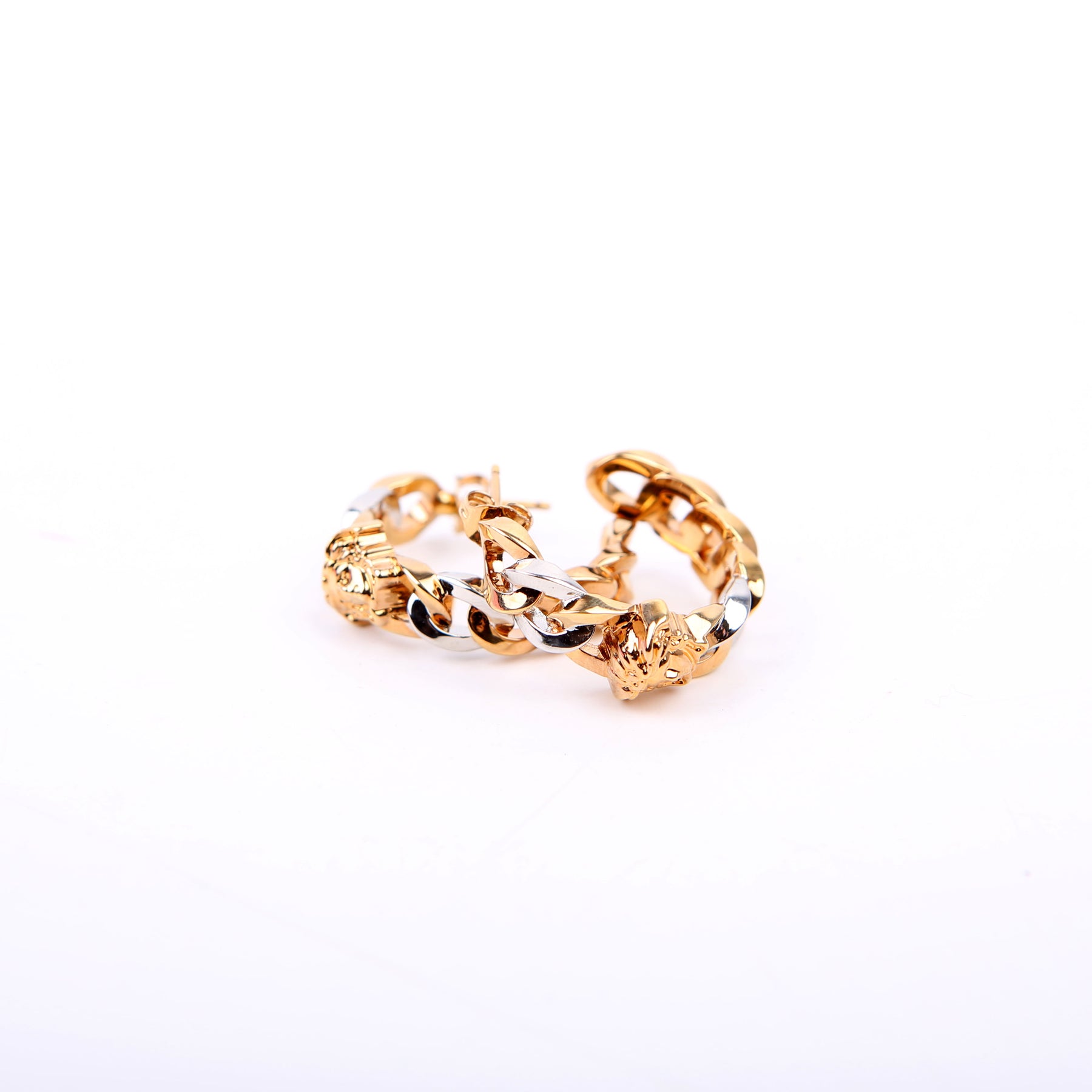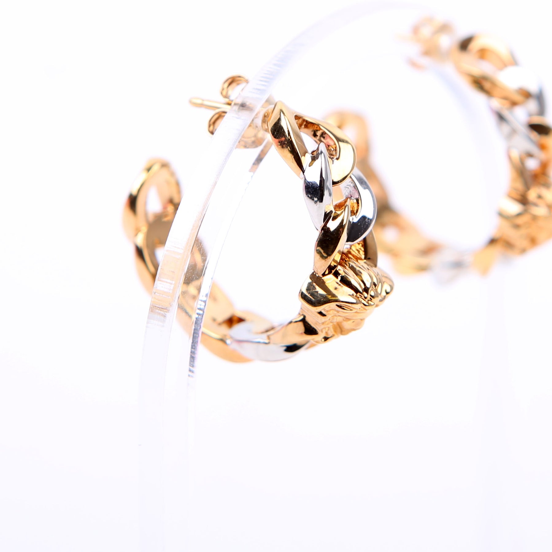 These pre-owned Versace Medusa Bicolor Chain Hoop Earrings are guaranteed 100% authentic.