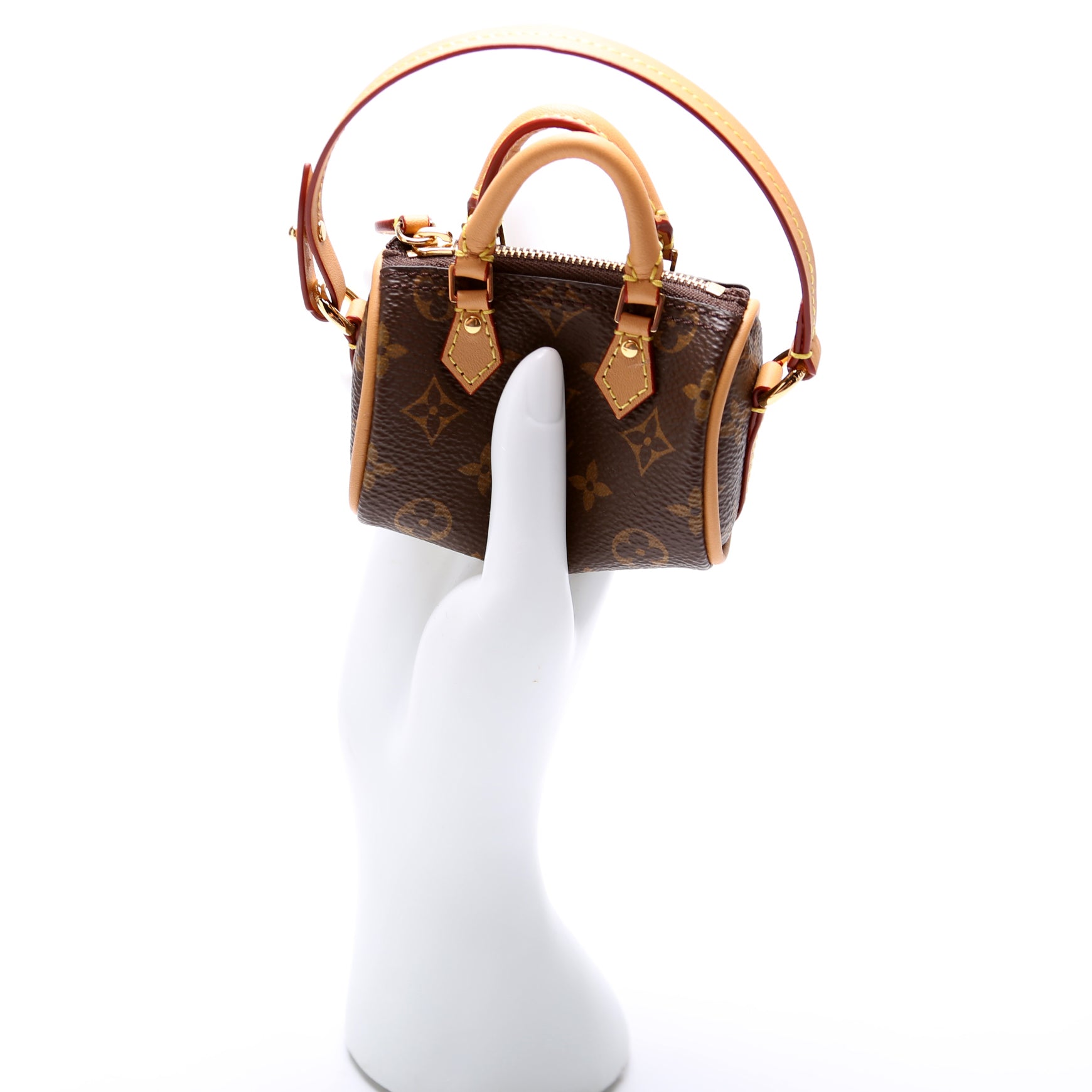 This pre-owned Louis Vuitton Micro Speedy Monogram Bag Charm is guaranteed 100% authentic. The exterior is in the classic Louis Vuitton Monogram coated canvas.