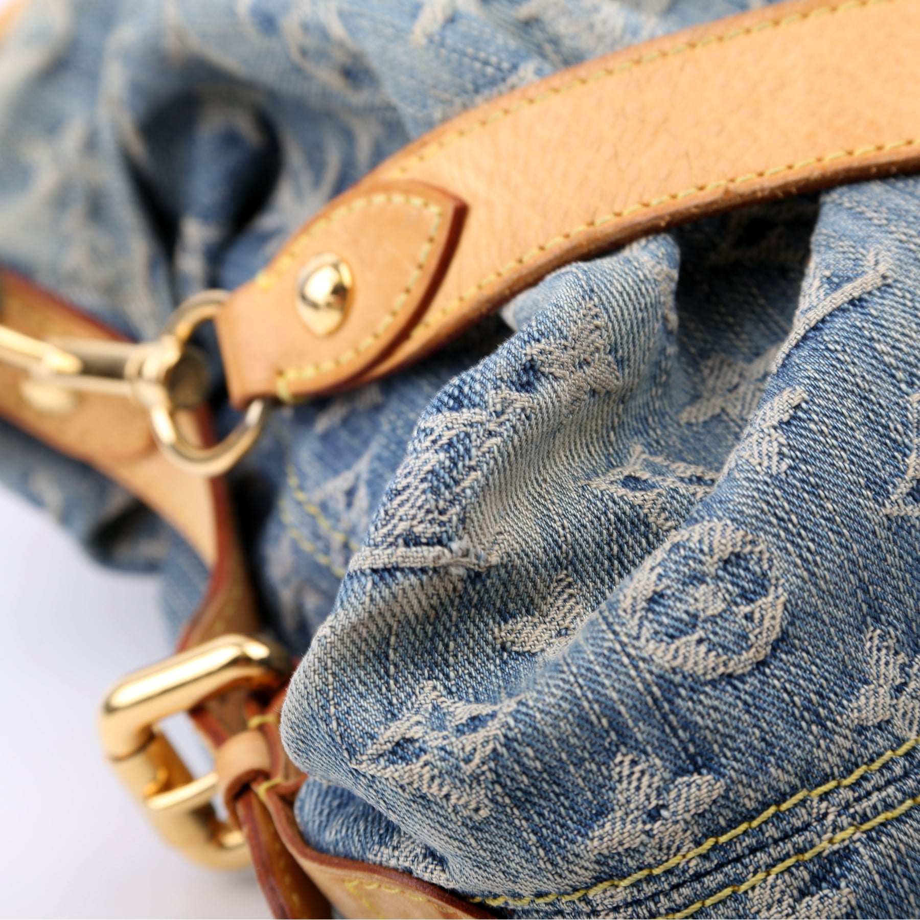 This pre-owned Louis Vuitton Neo Cabby MM Bag is guaranteed 100% authentic. The exterior is in the classic Denim Monogram.