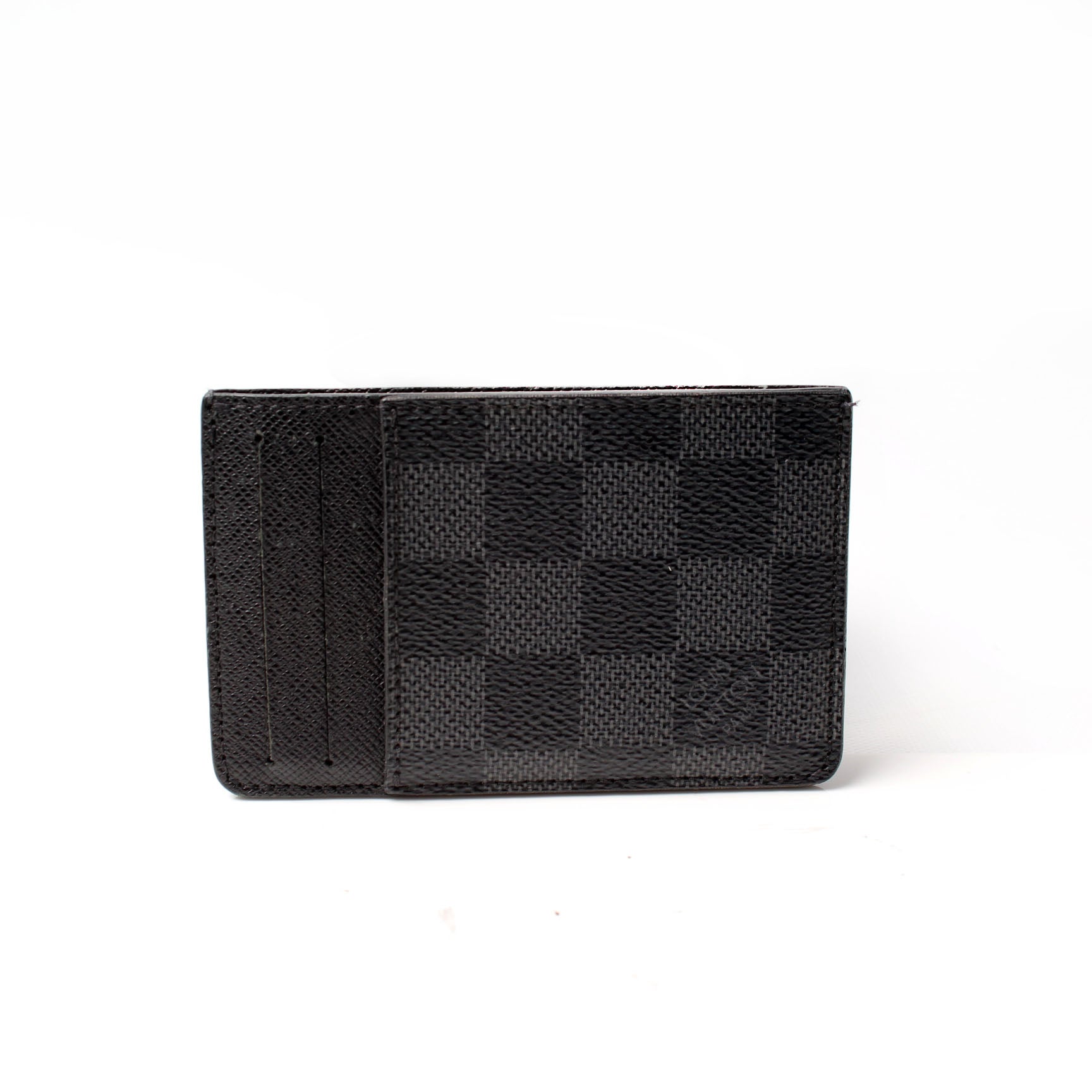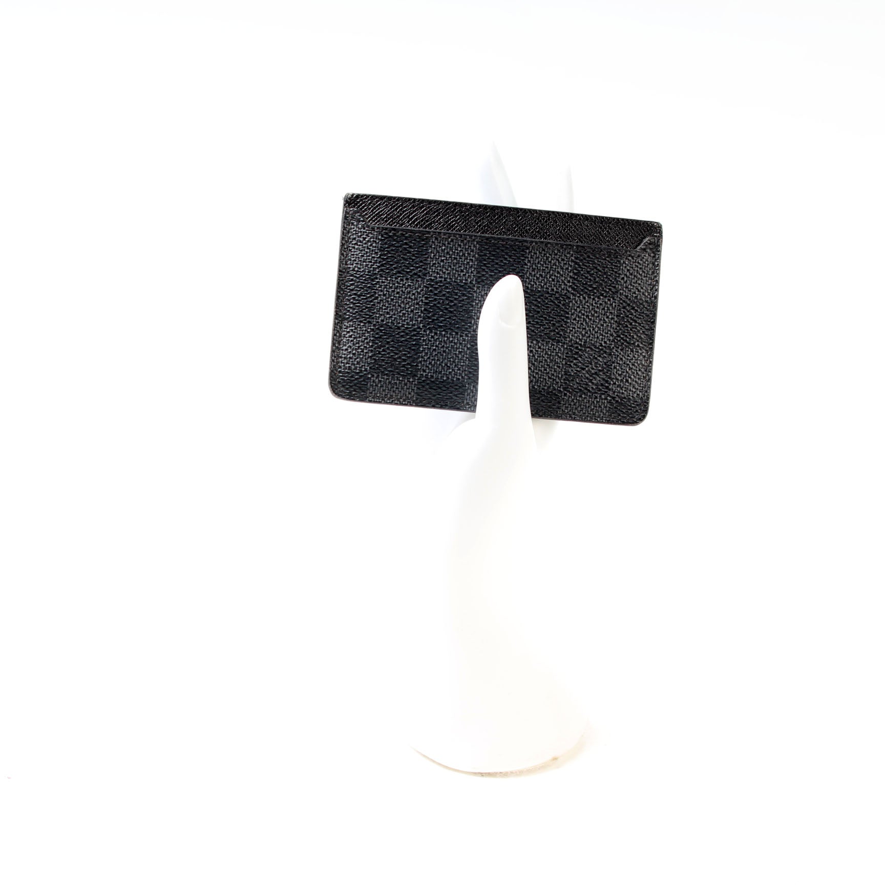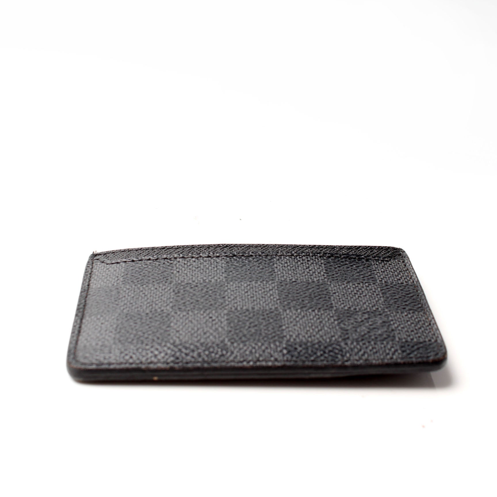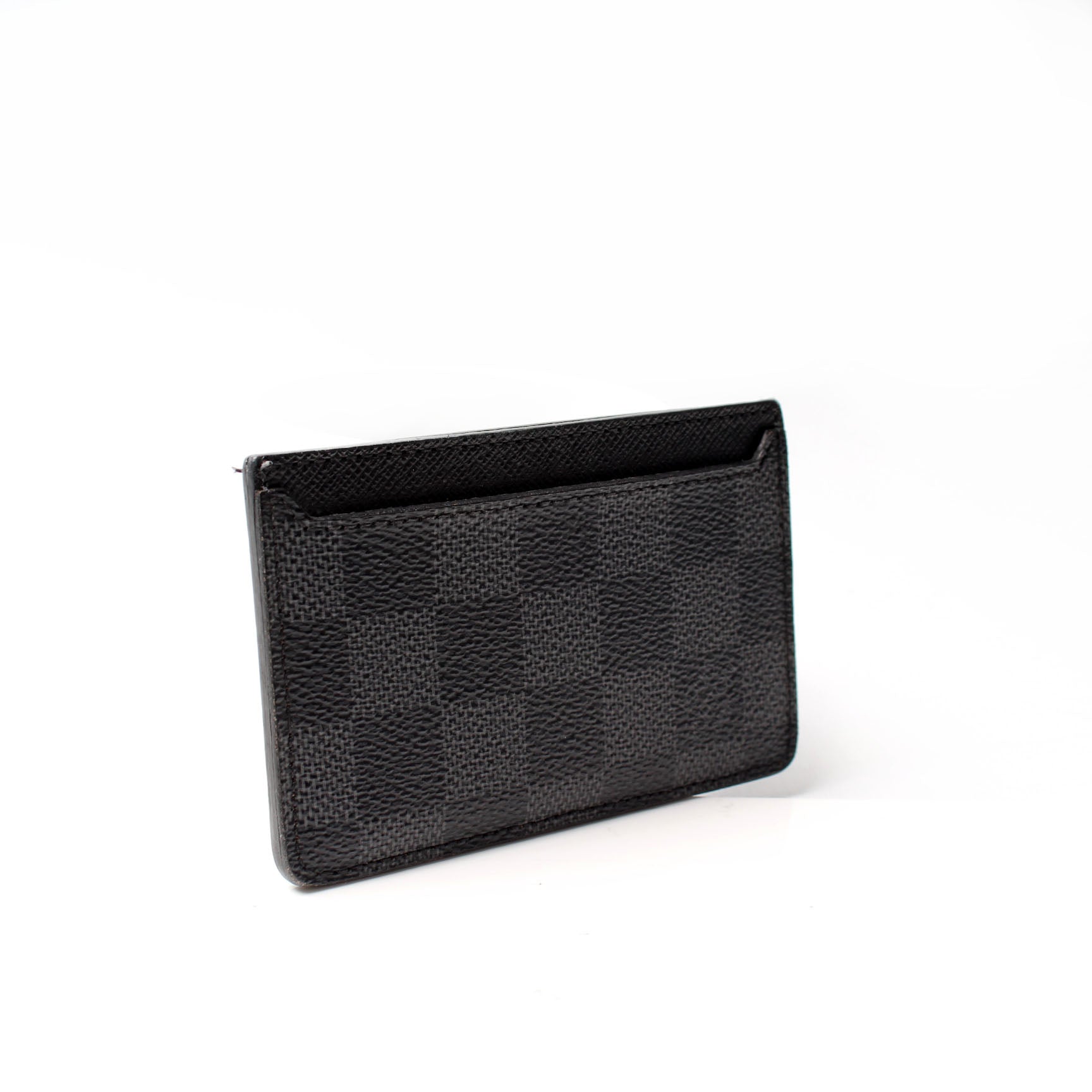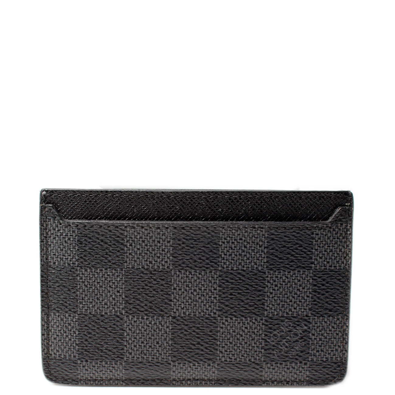 This pre-owned Louis Vuitton Neo Porte Cartes Card Holder is guaranteed 100% authentic. The exterior is in the classic Damier Graphite coated canvas.