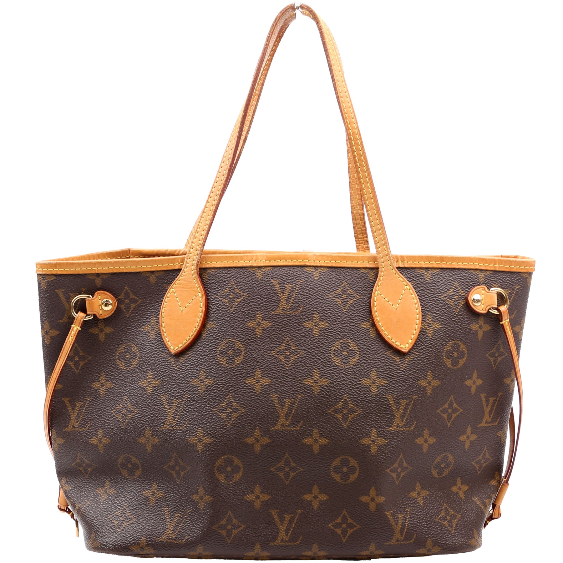 This pre-owned Louis Vuitton Neverfull PM is guaranteed 100% authentic. The exterior is in the classic Louis Vuitton Monogram coated canvas.