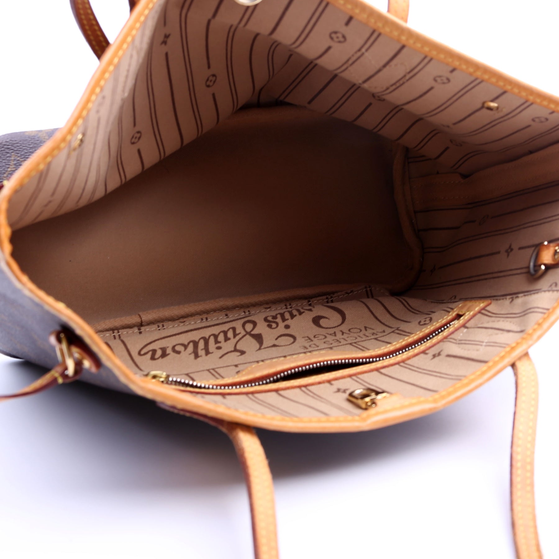 Interior: The interior is free from rips or tears. It features one zip closure pocket.