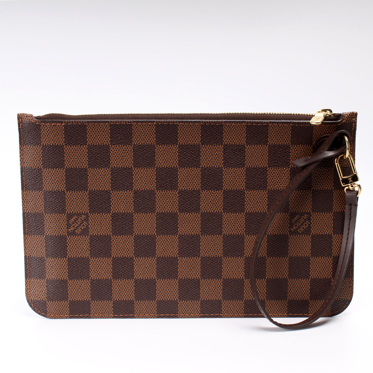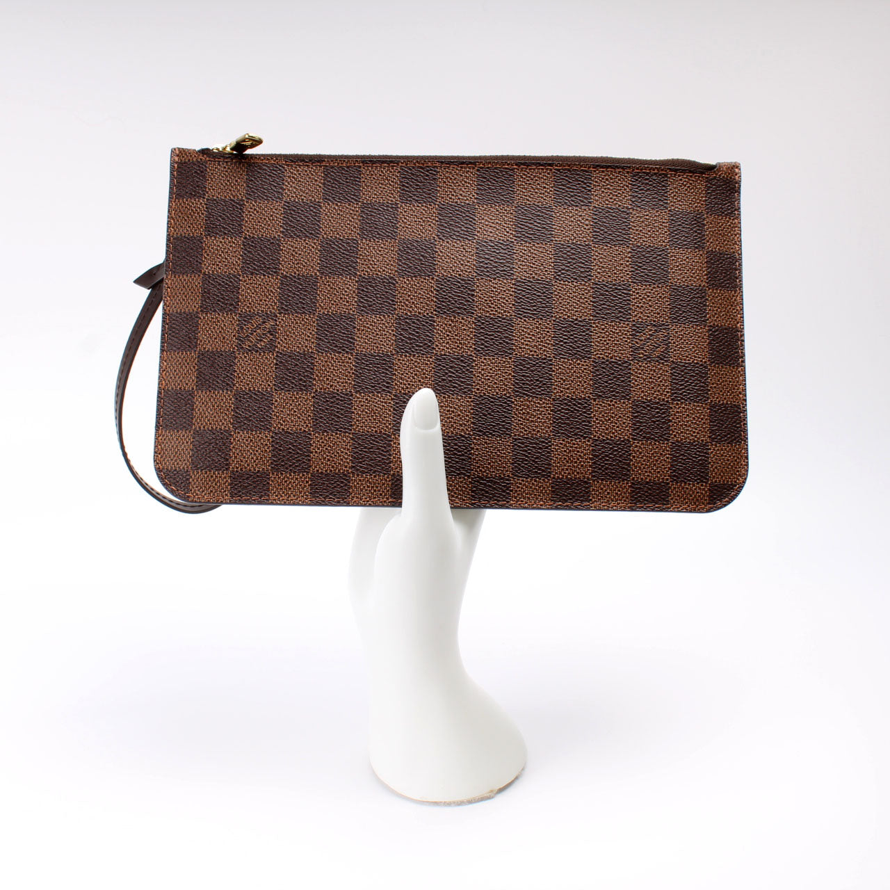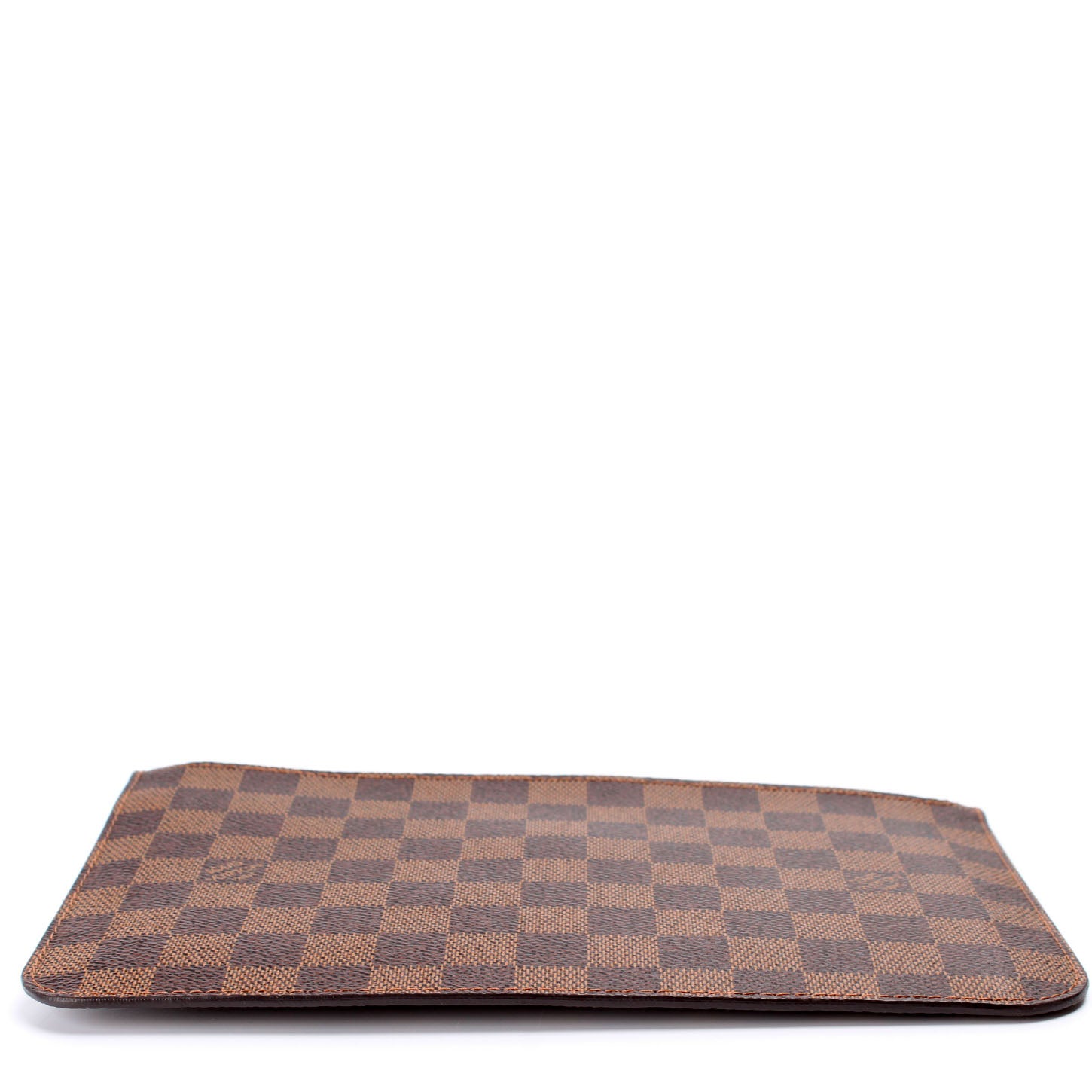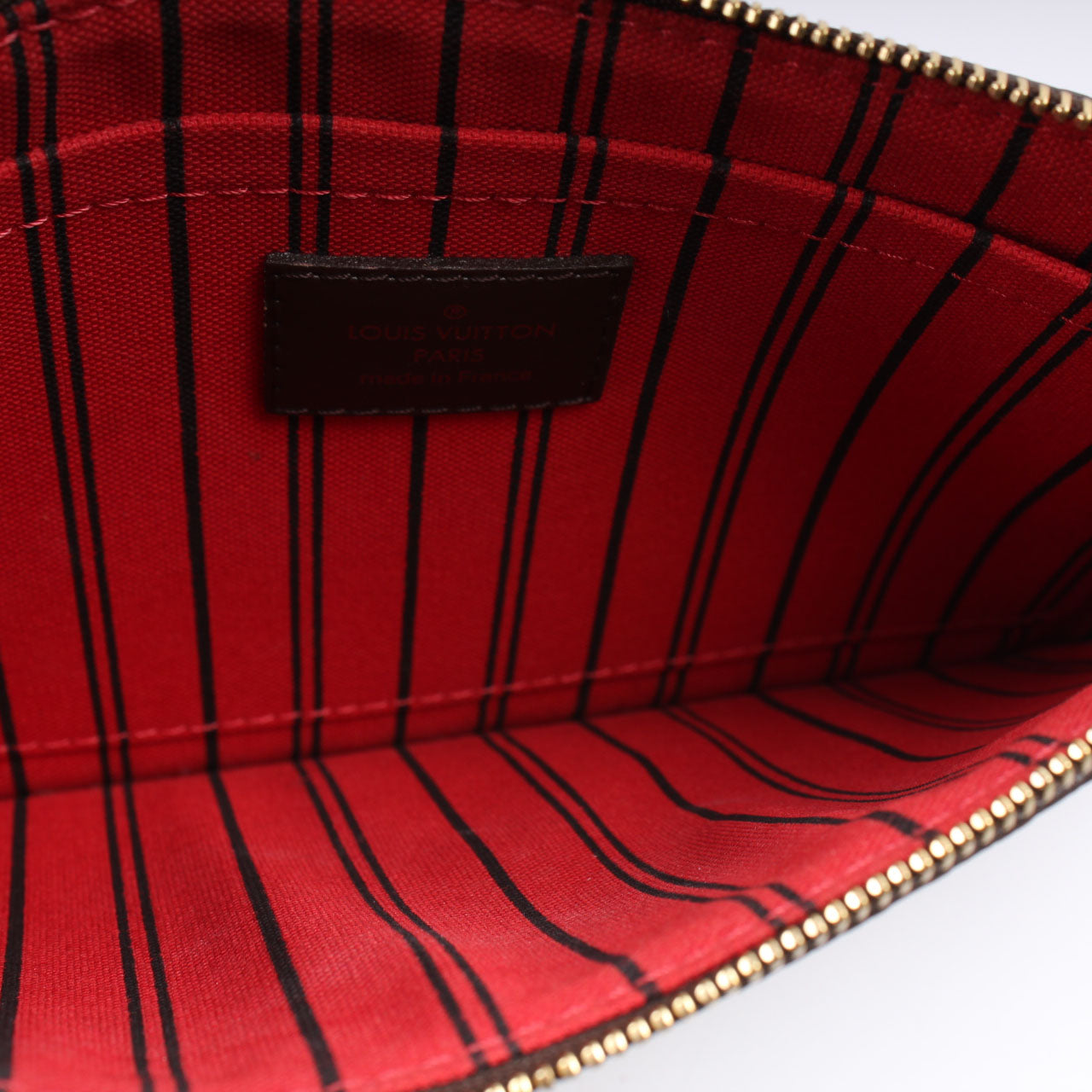 This pre-owned Louis Vuitton Pochette Only Neverfull is guaranteed 100% authentic. The exterior is in the classic Louis Vuitton Damier Ebene coated canvas.