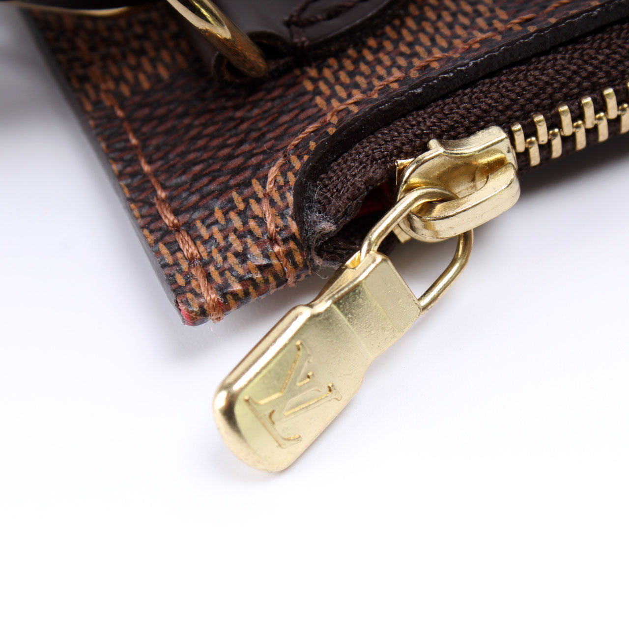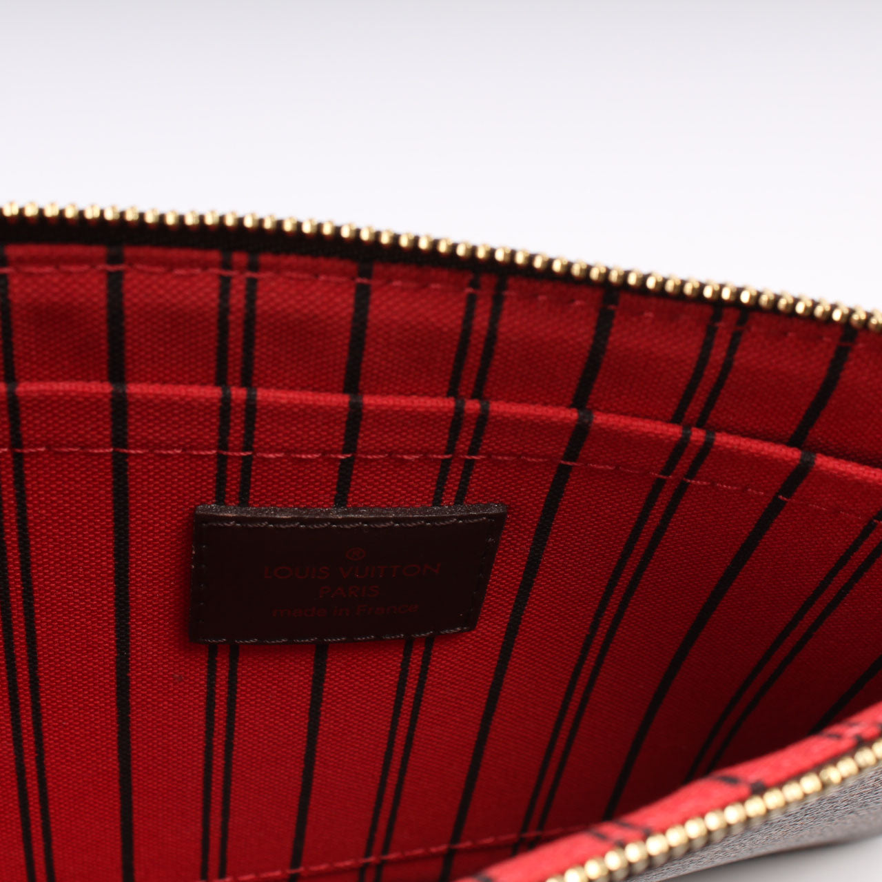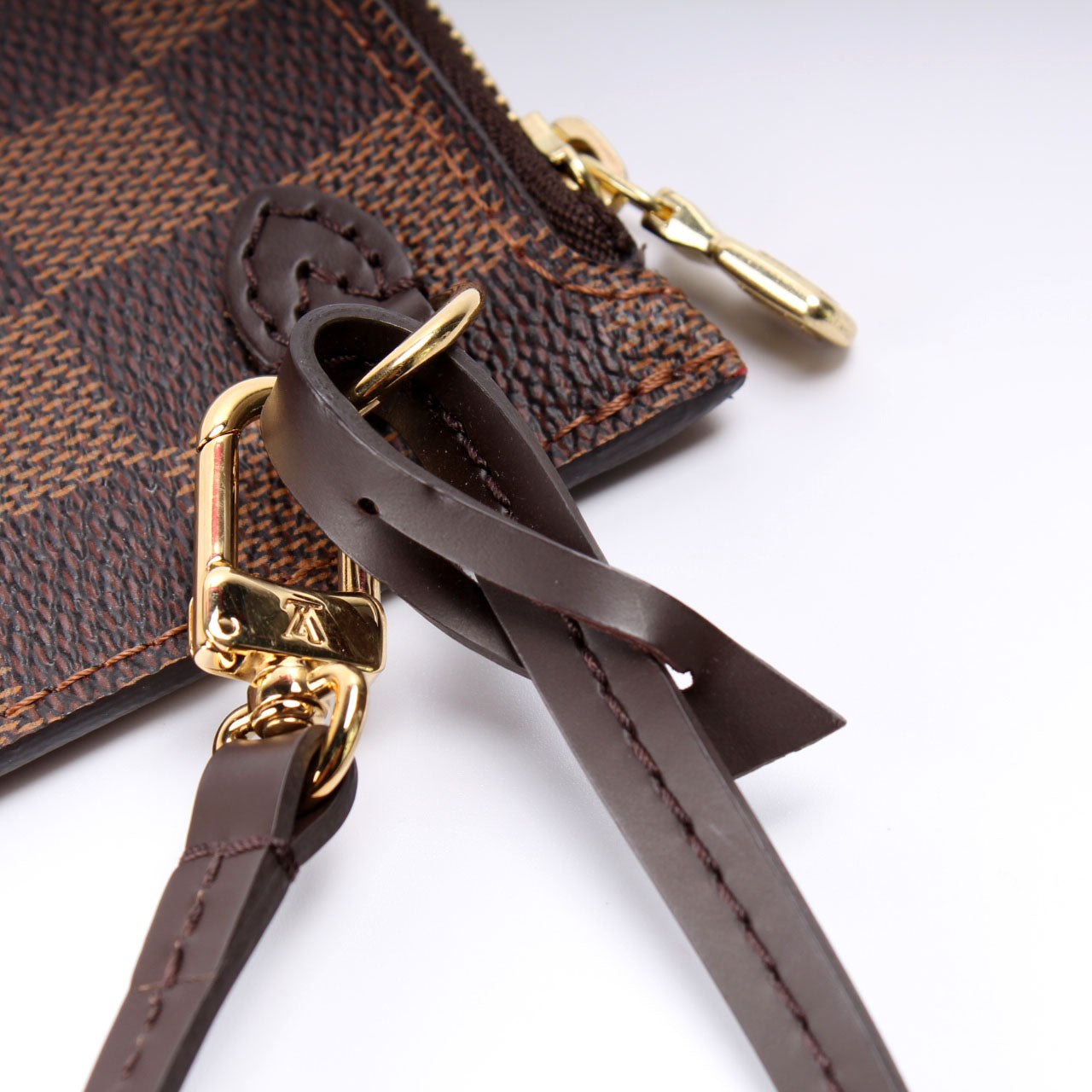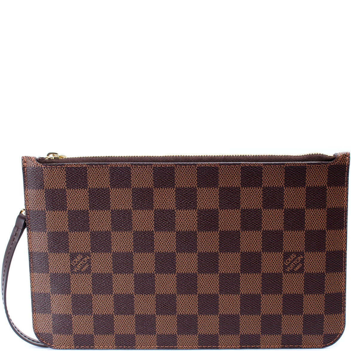This pre-owned Louis Vuitton Pochette Only Neverfull is guaranteed 100% authentic. The exterior is in the classic Louis Vuitton Damier Ebene coated canvas.