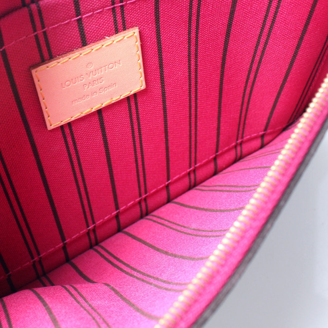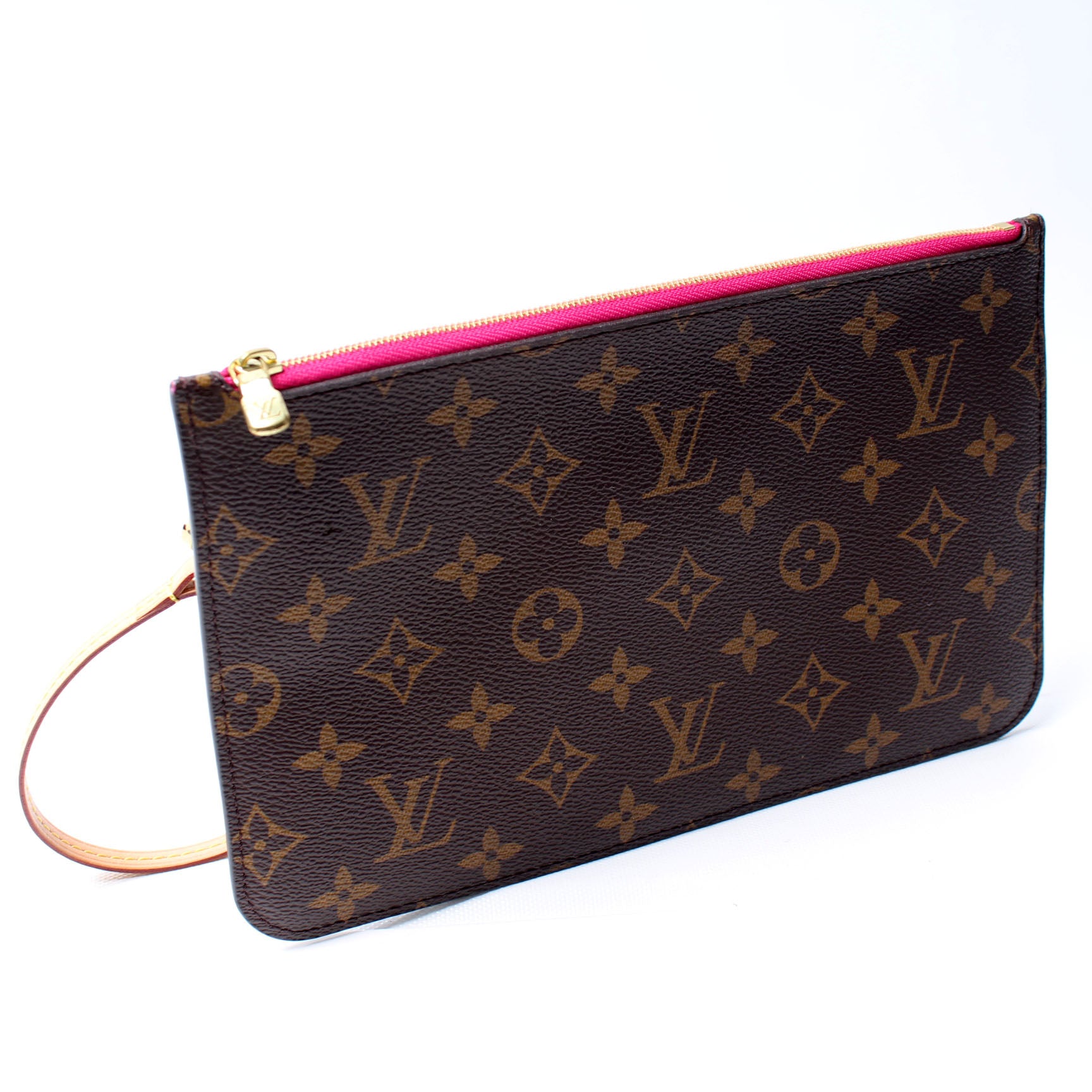 This pre-owned Louis Vuitton Pochette Only Neverfull is guaranteed 100% authentic. The exterior is in the classic Louis Vuitton Monogram coated canvas.