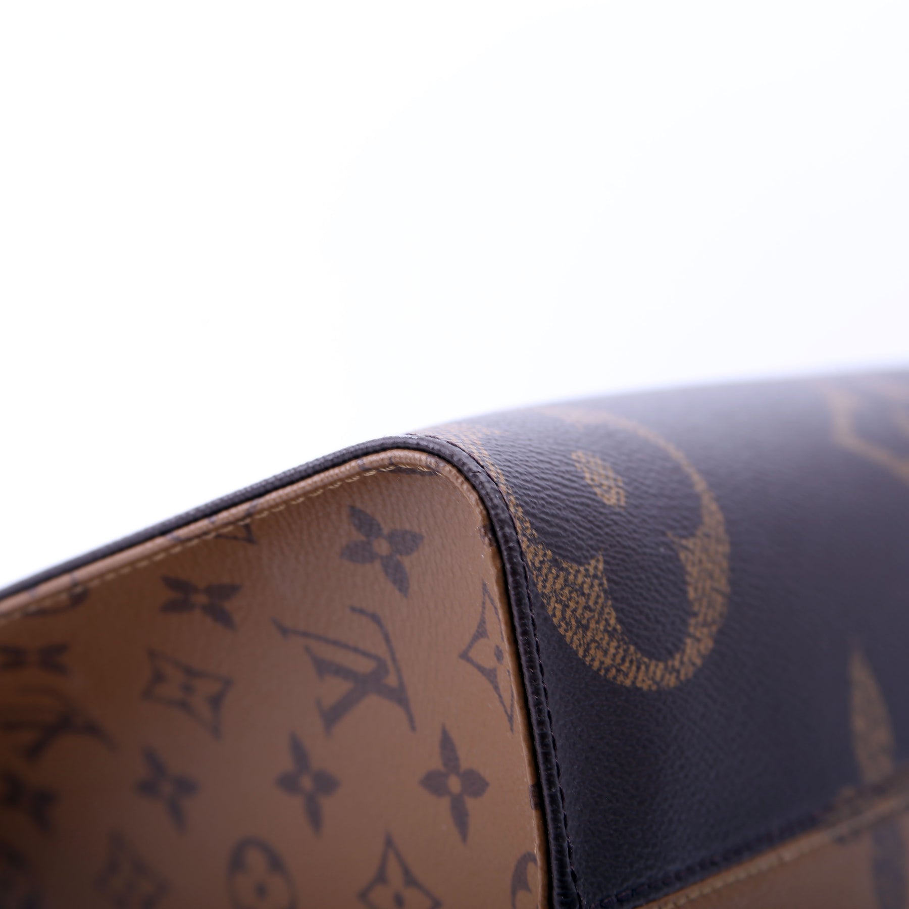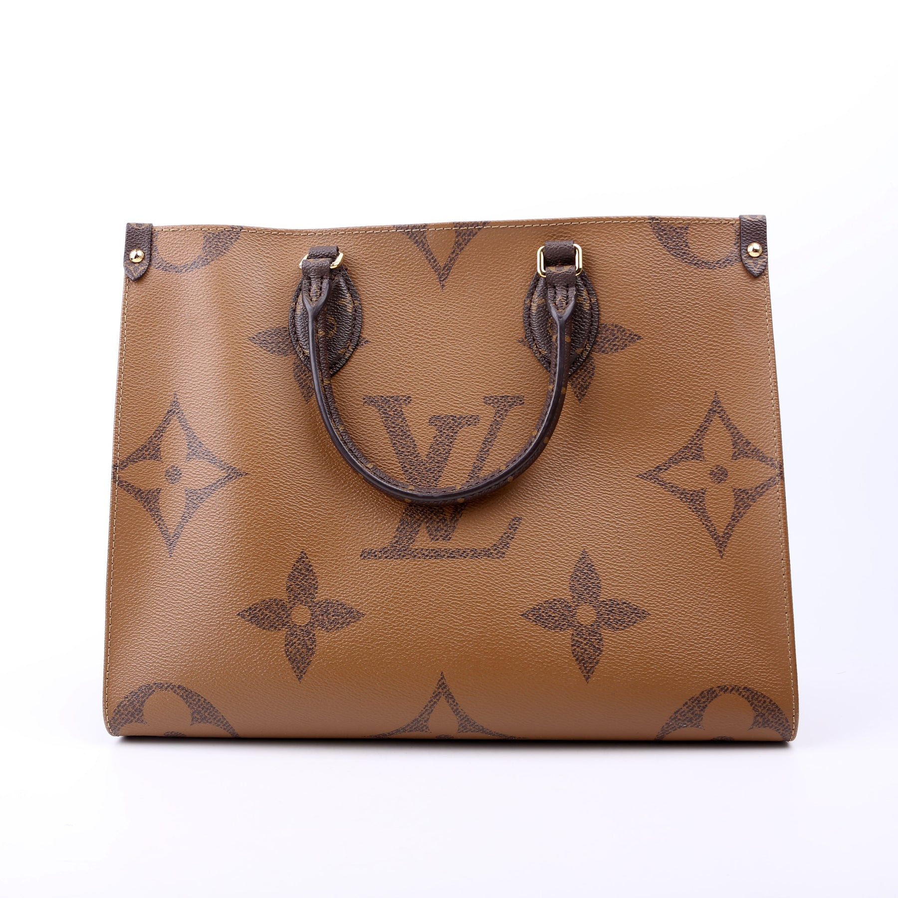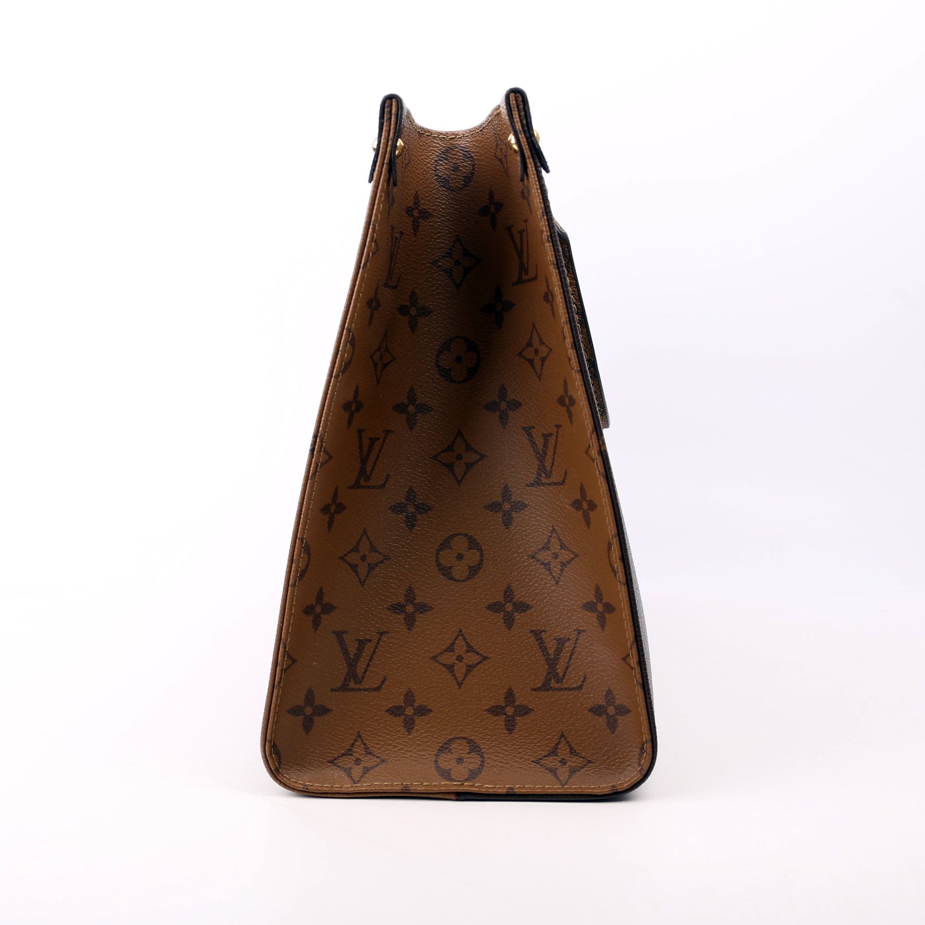 This pre-owned Louis Vuitton ONTHEGO MM is guaranteed 100% authentic. The exterior is in the classic Louis Vuitton Reverse Monogram coated canvas.