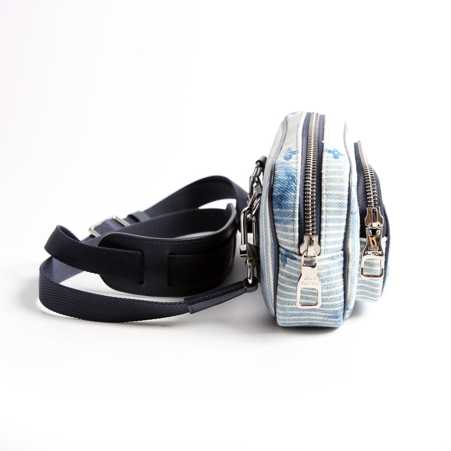This pre-owned Louis Vuitton Outdoor Pouch Monogram Watercolor Hickory Denim is guaranteed 100% authentic.