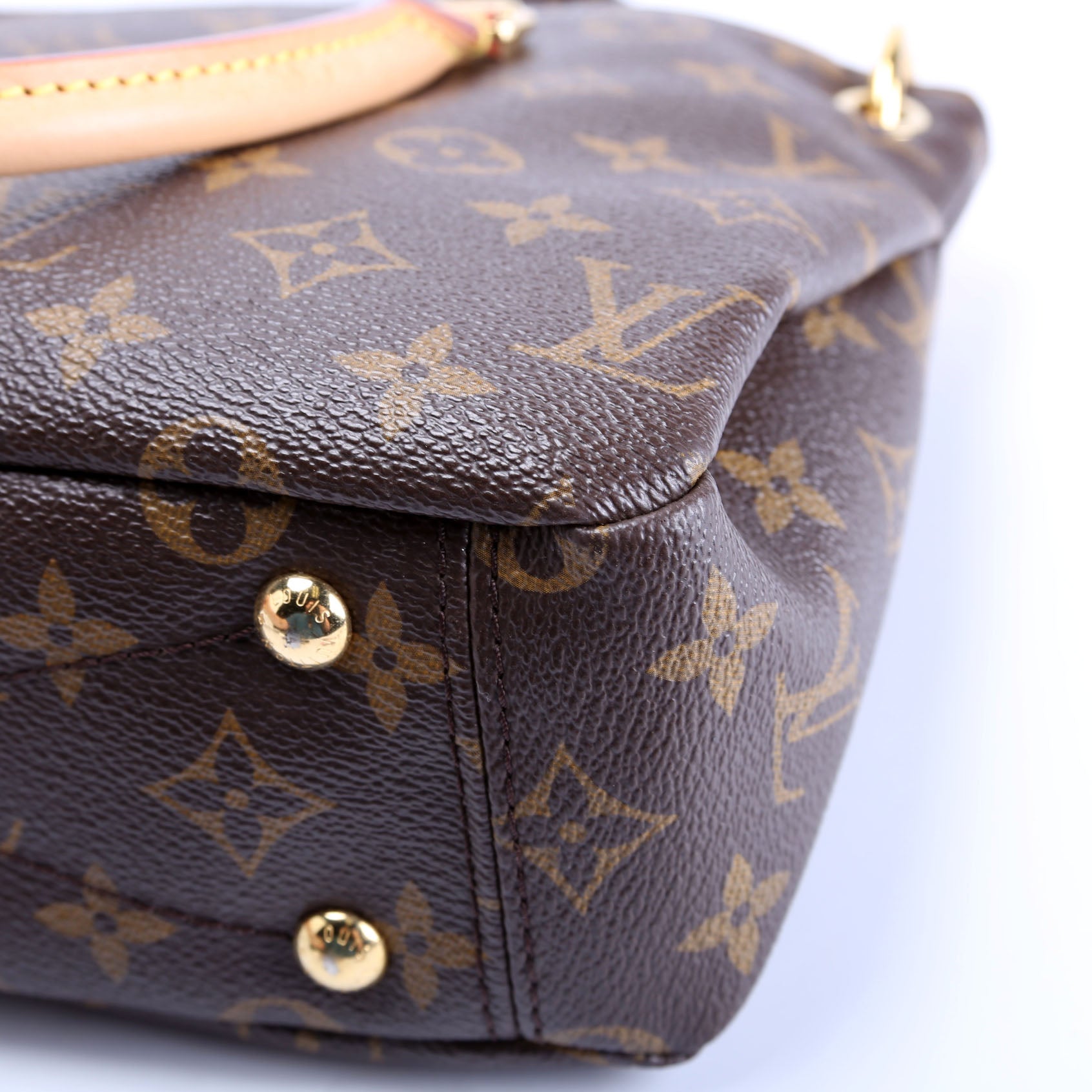 This pre-owned Louis Vuitton Pallas BB Monogram is guaranteed 100% authentic. The exterior is in the classic Louis Vuitton Monogram coated canvas.