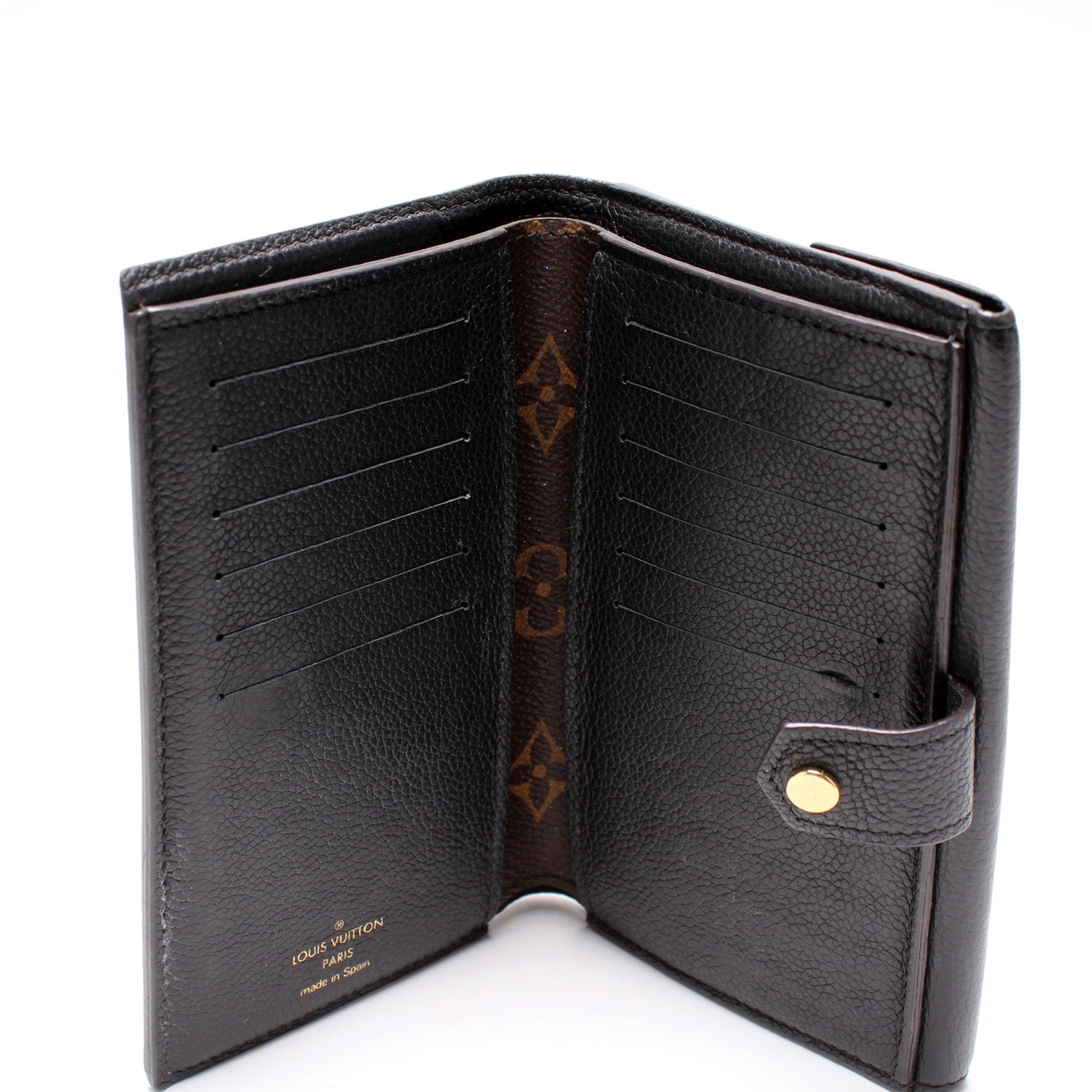This pre-owned Louis Vuitton Pallas Wallet Compact is guaranteed 100% authentic. The exterior is in the classic Louis Vuitton Monogram coated canvas.