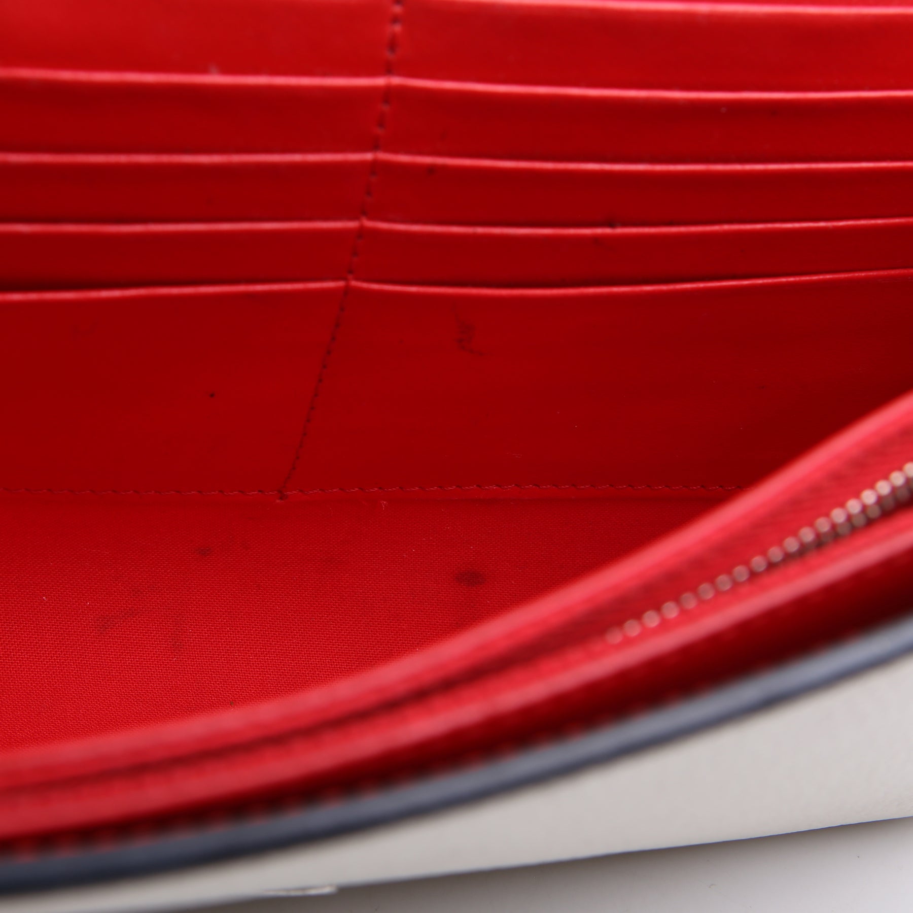Interior: The interior shows minor wear throughout and features ten card slots, two open pockets, and one zipper pocket.