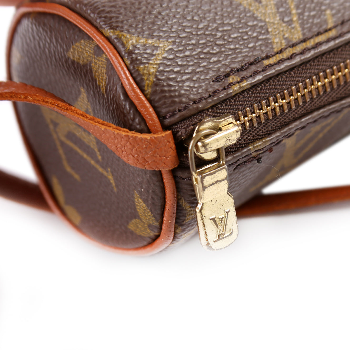 This pre-owned Louis Vuitton Papillon Mini Barrel Vintage is guaranteed 100% authentic. The exterior is in the classic Louis Vuitton Monogram coated canvas.