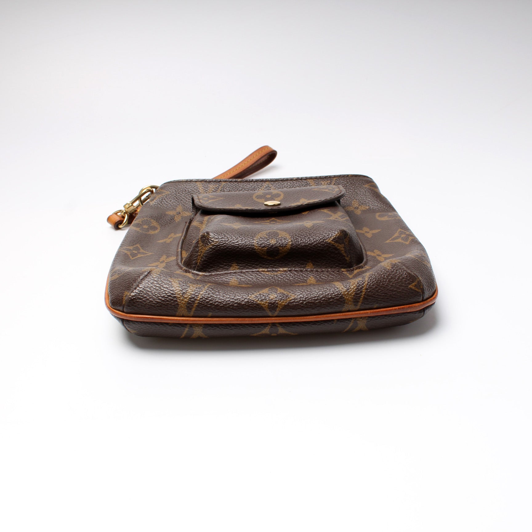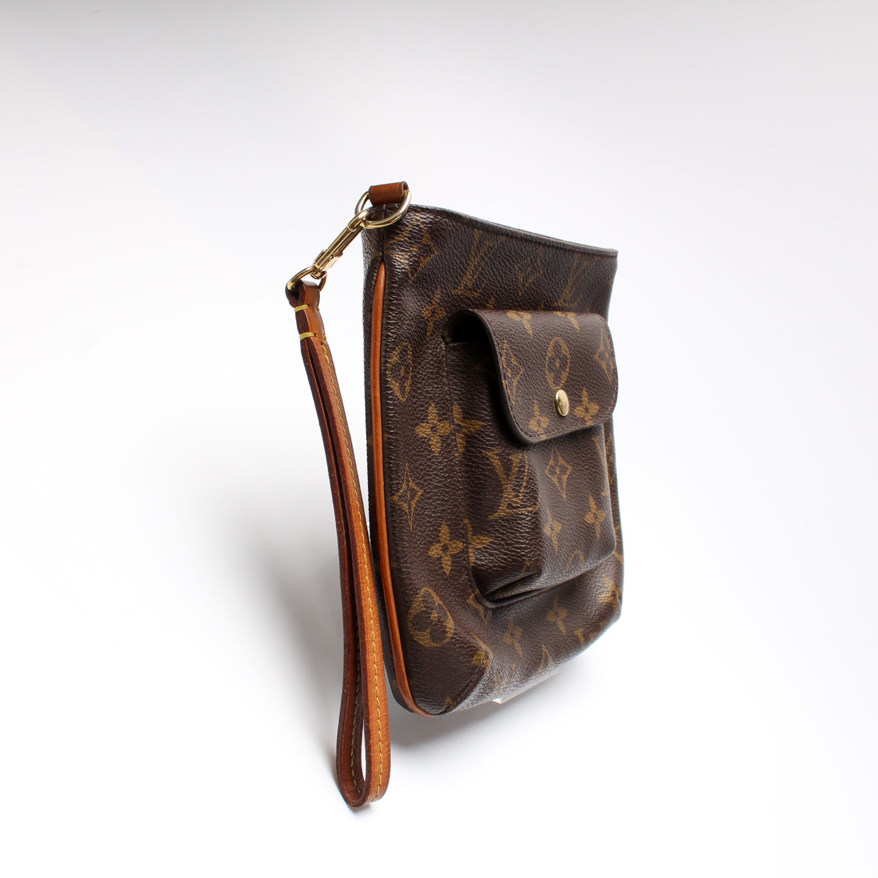 This pre-owned Louis Vuitton Partition Wristlet Clutch is guaranteed 100% authentic. The exterior is in the classic Louis Vuitton Monogram coated canvas.