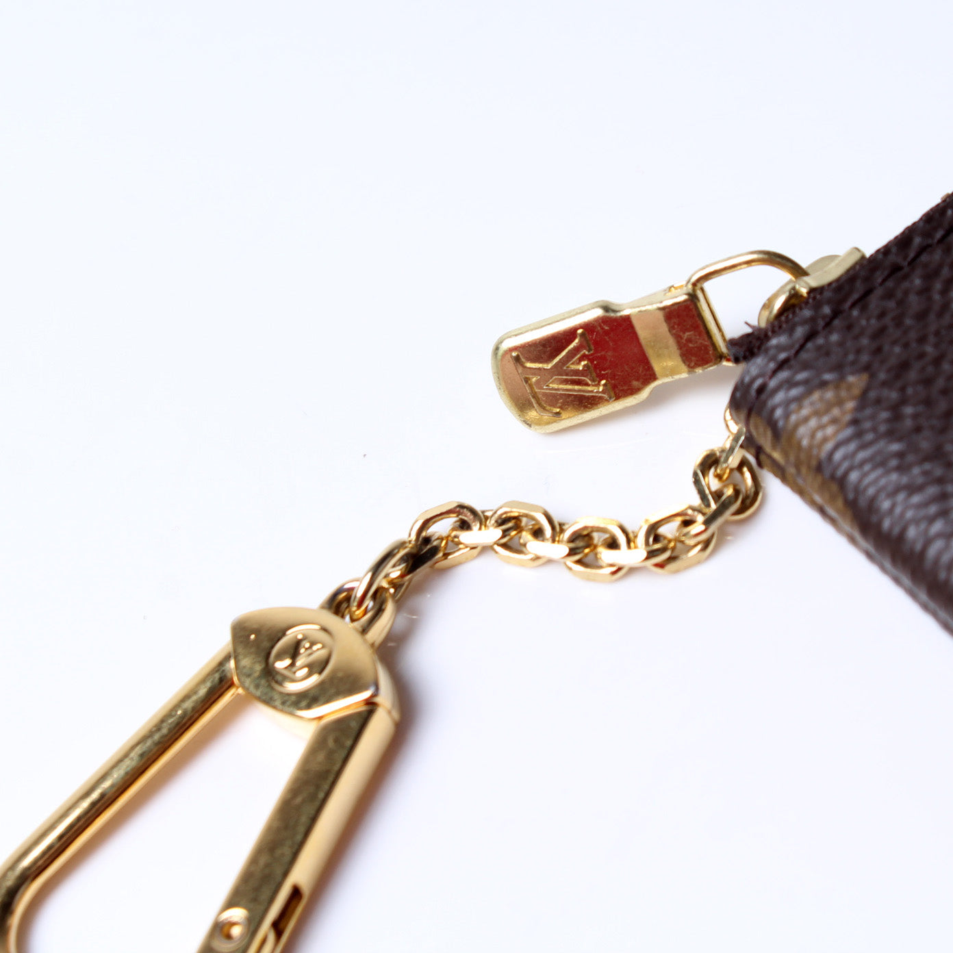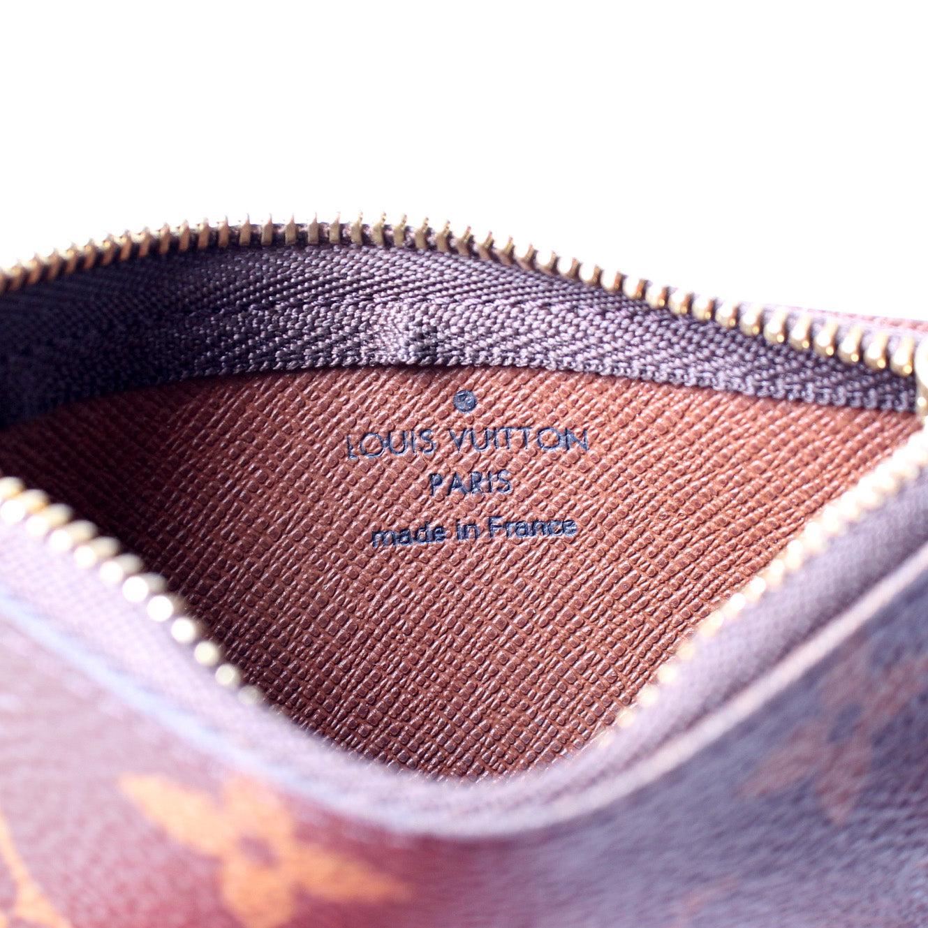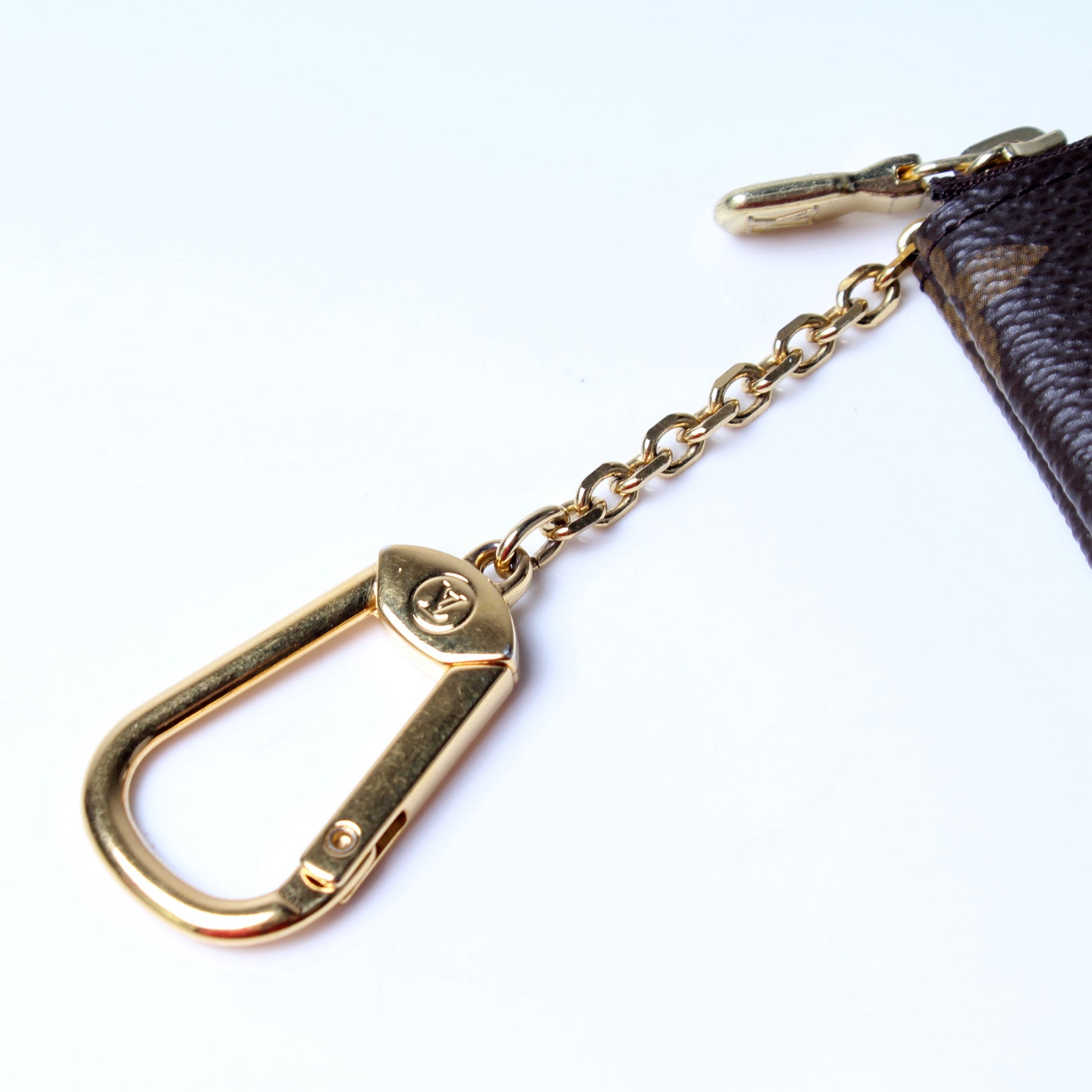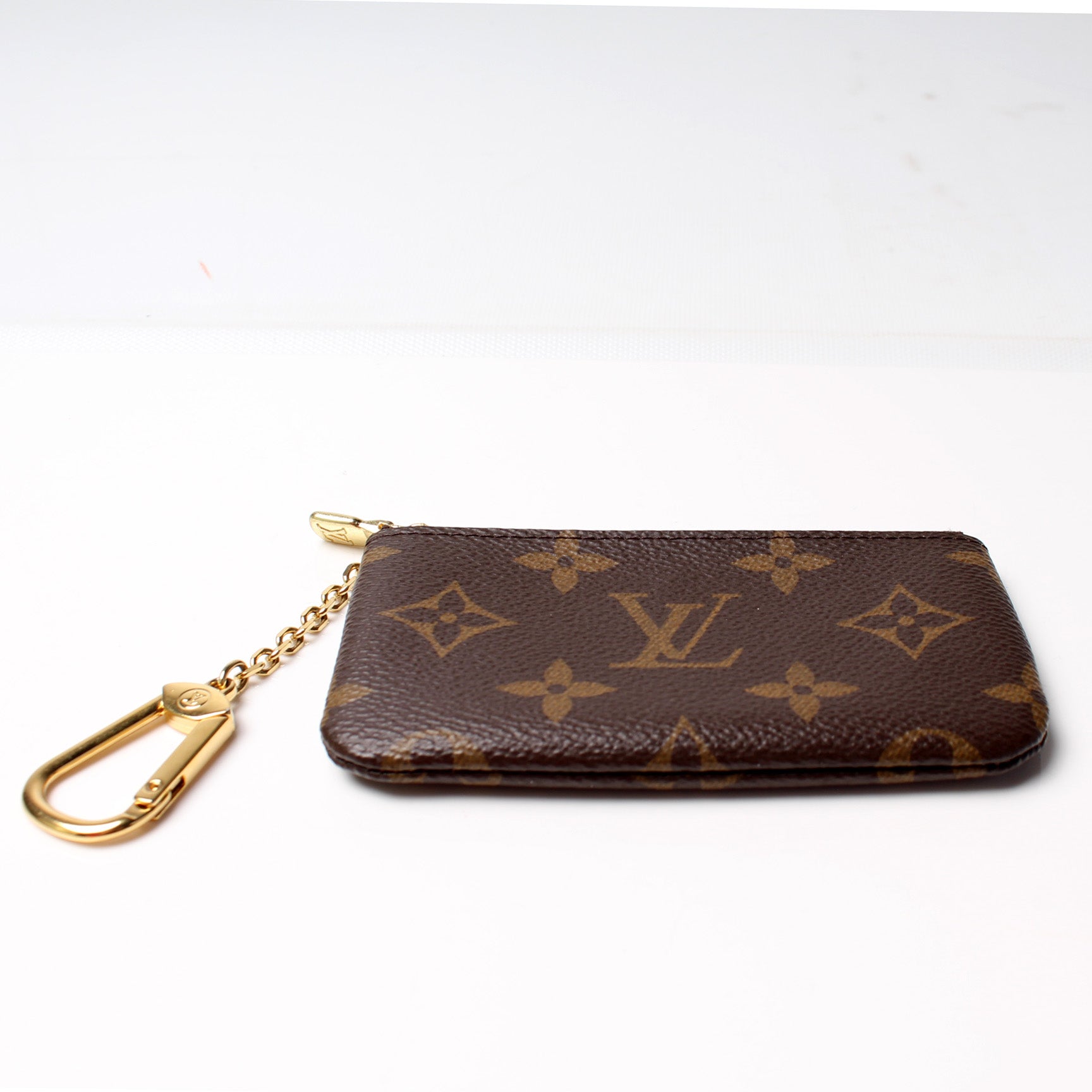 This pre-owned Louis Vuitton Pochette Cles is guaranteed 100% authentic. The exterior is in the classic Louis Vuitton Monogram coated canvas.