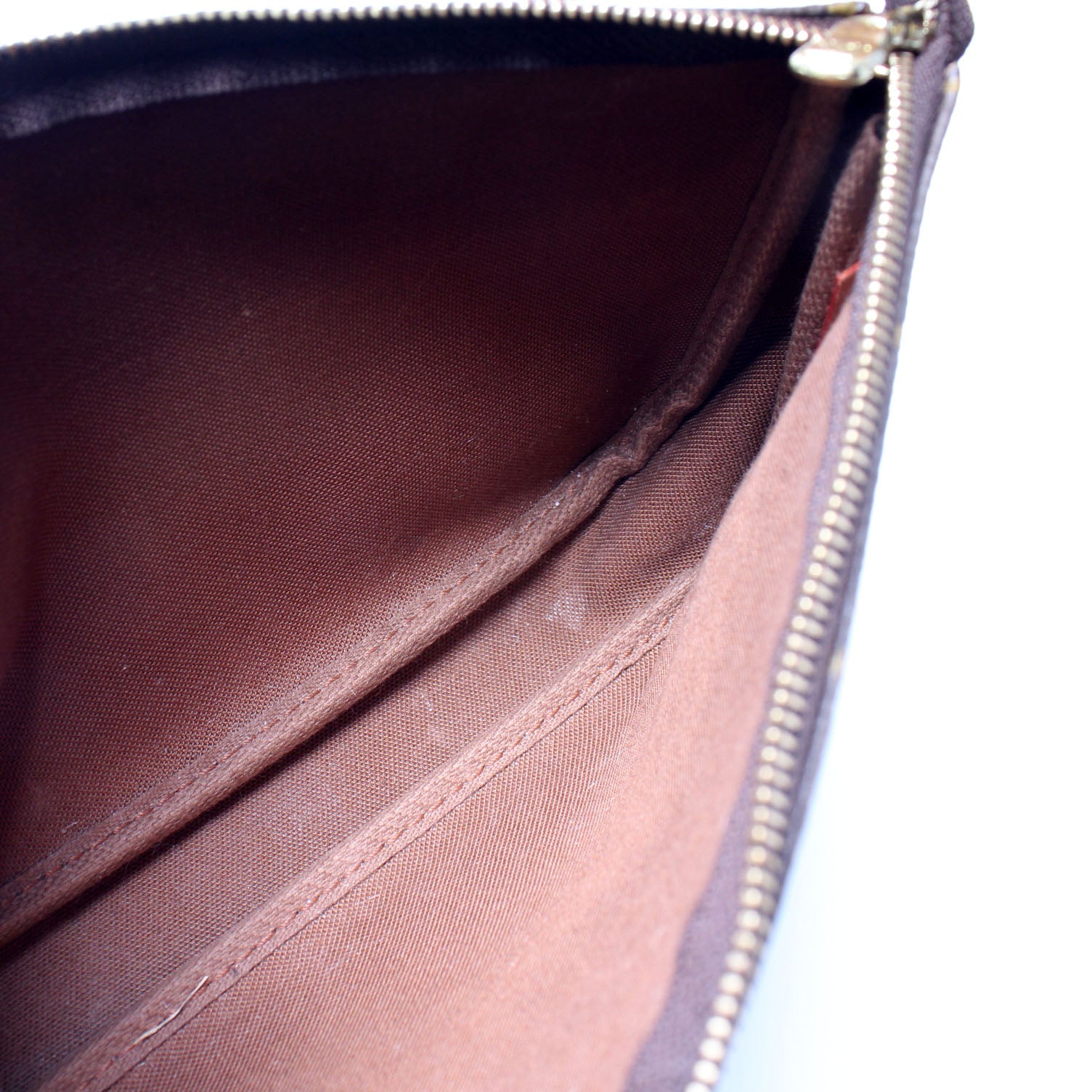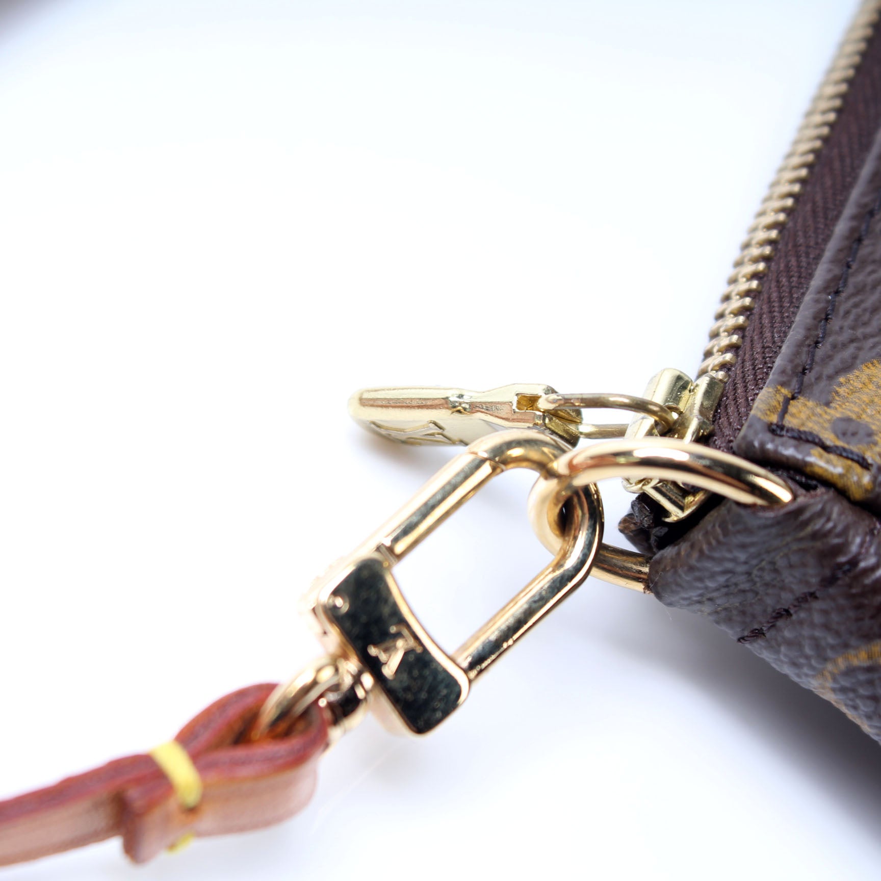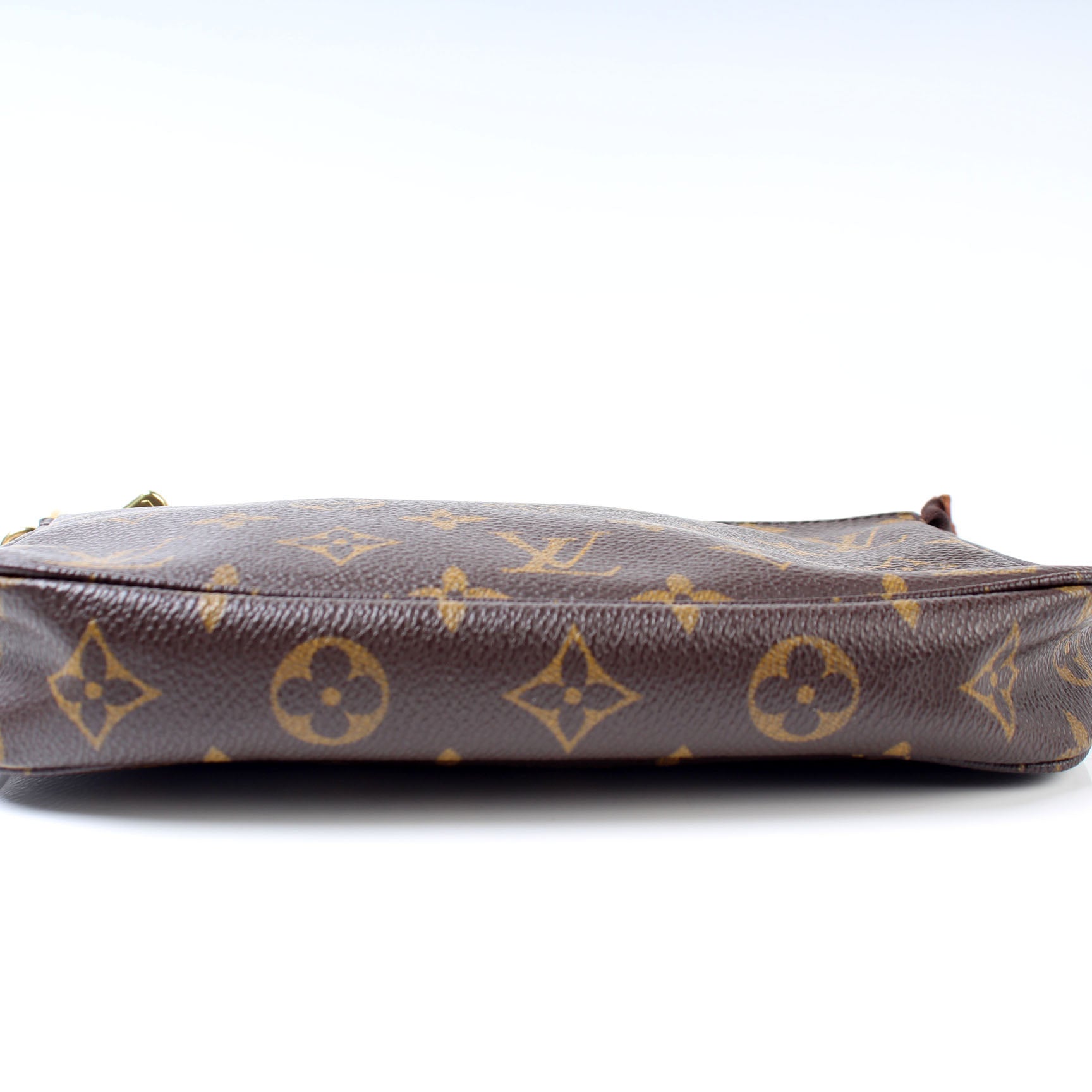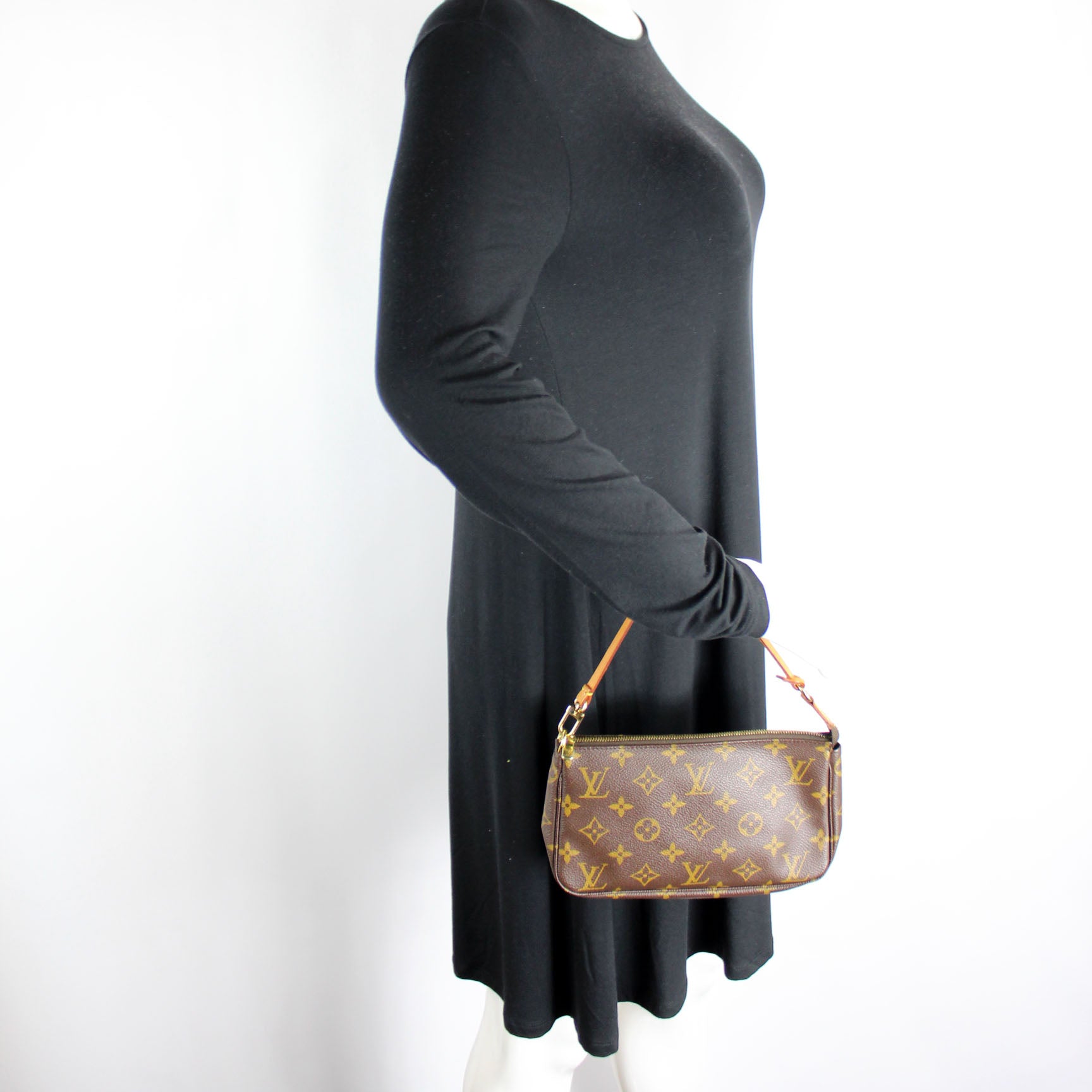 This pre-owned Louis Vuitton Pochette Accessories is guaranteed 100% authentic. The exterior is in the classic Louis Vuitton Monogram coated canvas.