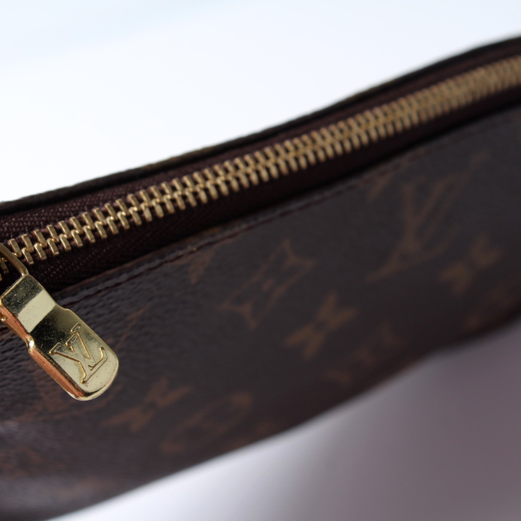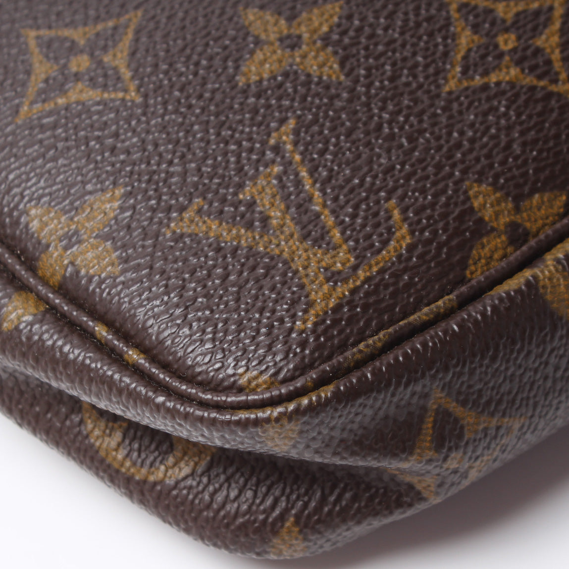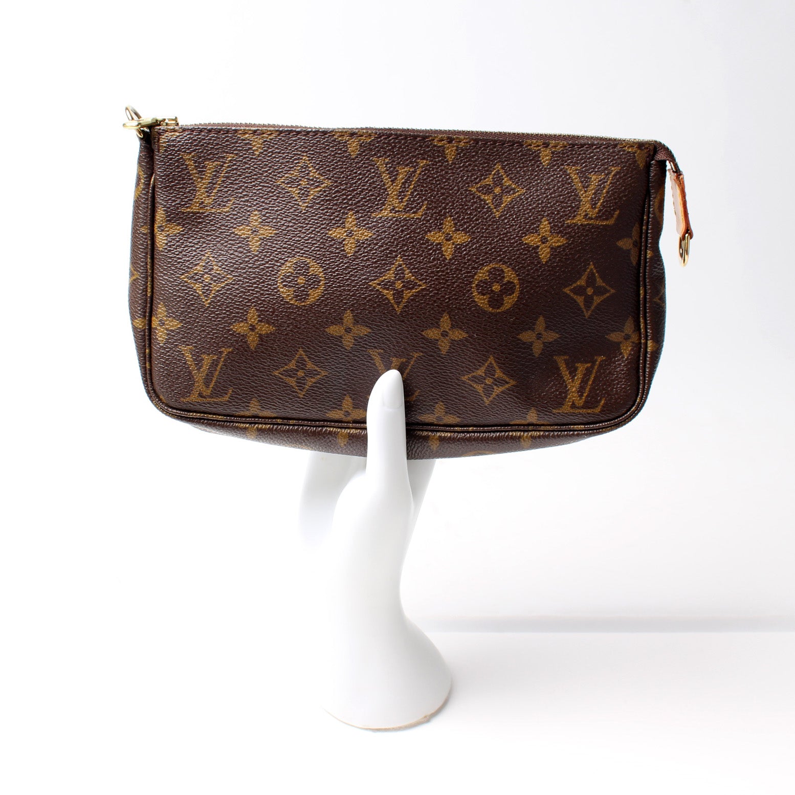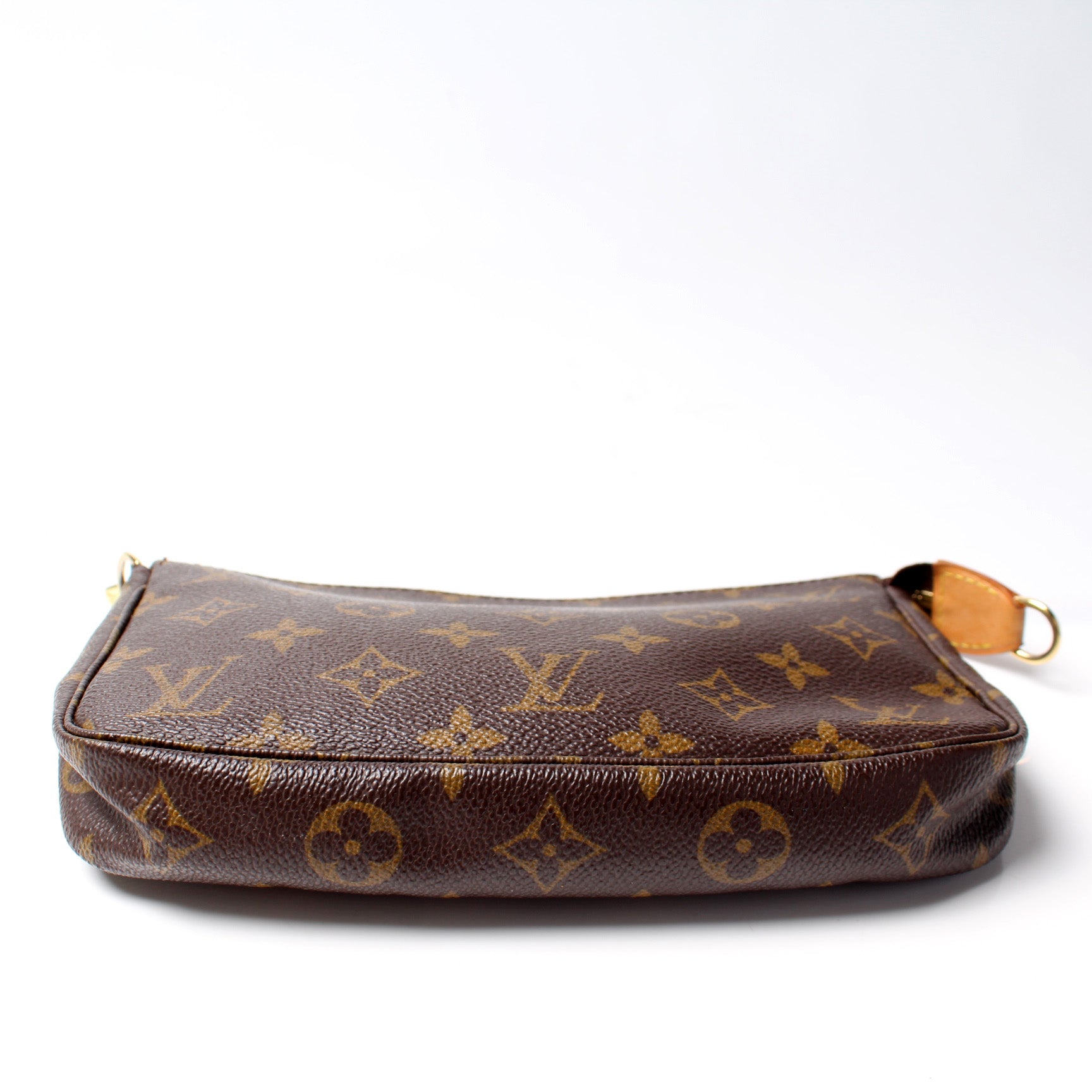This pre-owned Louis Vuitton Pochette Accessories is guaranteed 100% authentic. The exterior is in the classic Louis Vuitton Monogram coated canvas.