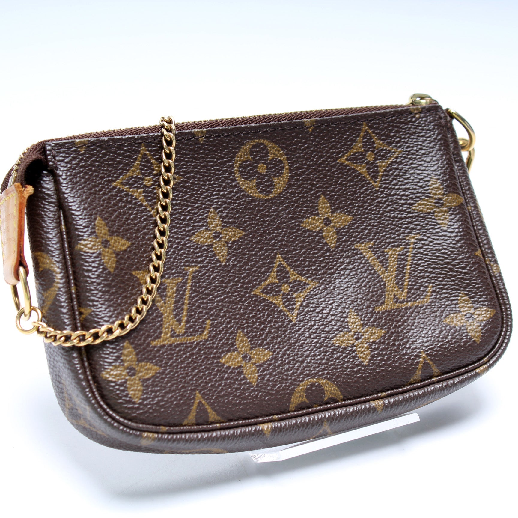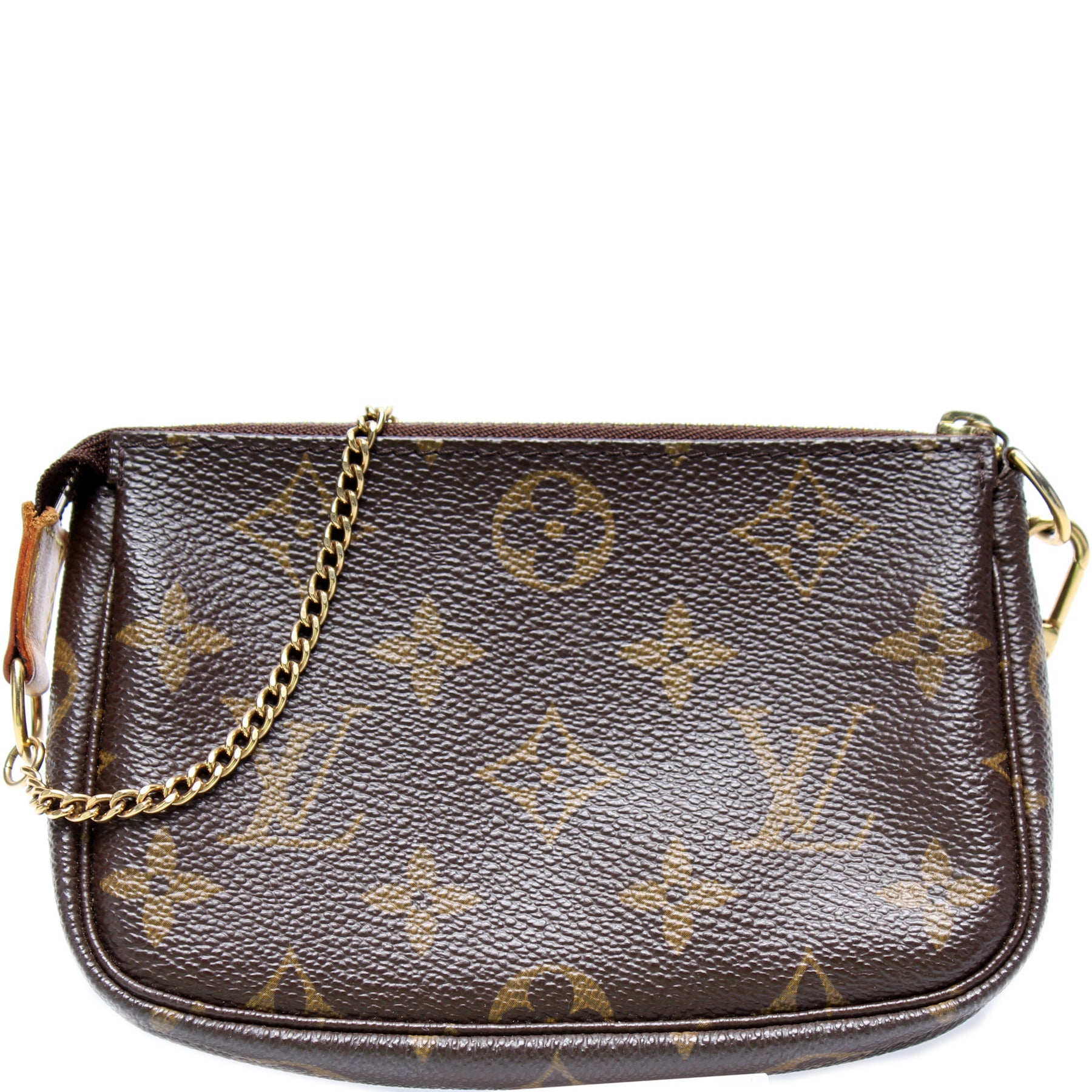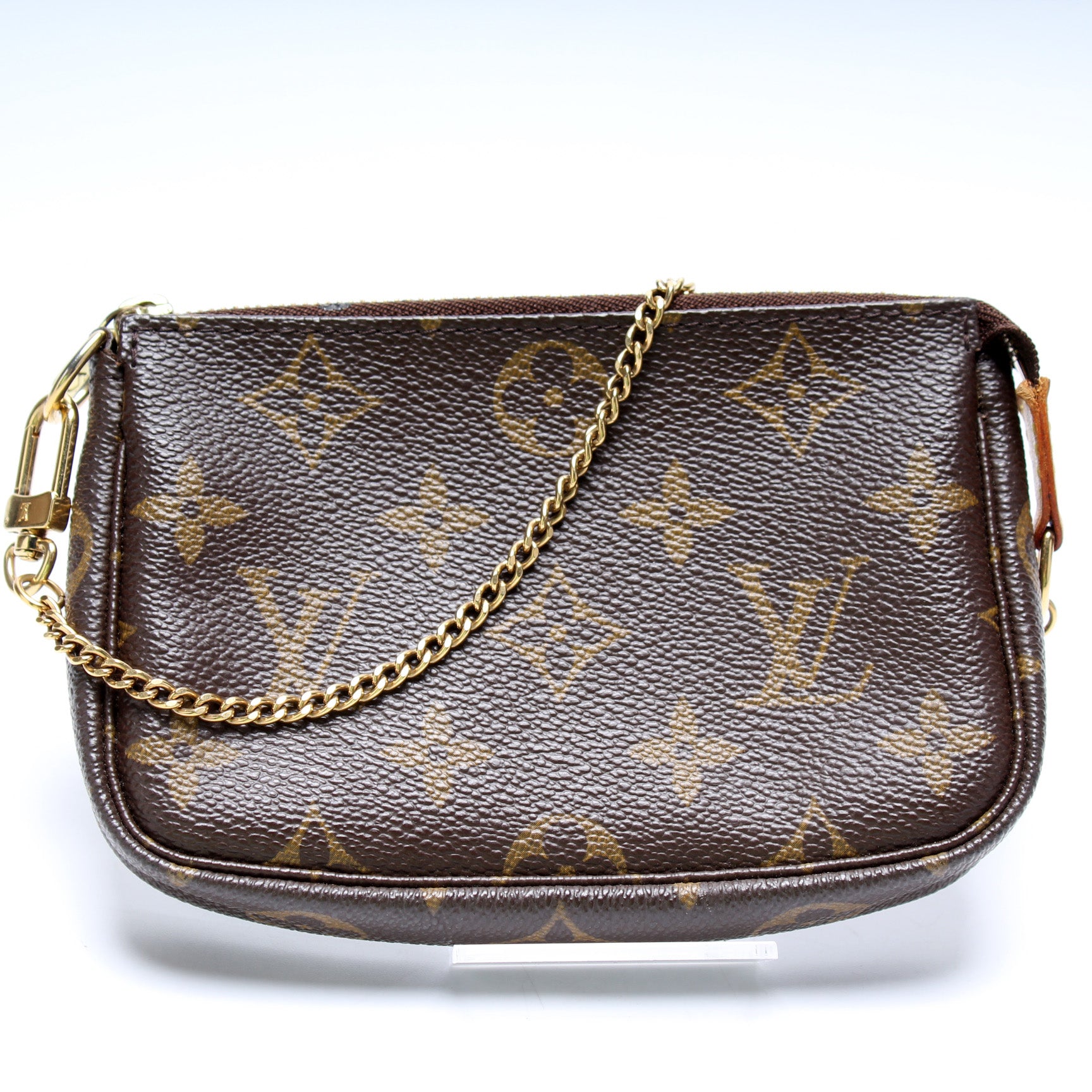 This pre-owned Louis Vuitton Pochette Accessories is guaranteed 100% authentic. The exterior is in the classic Louis Vuitton Monogram coated canvas.